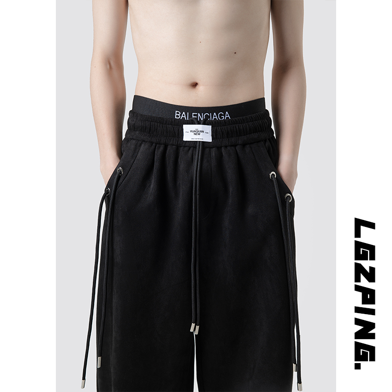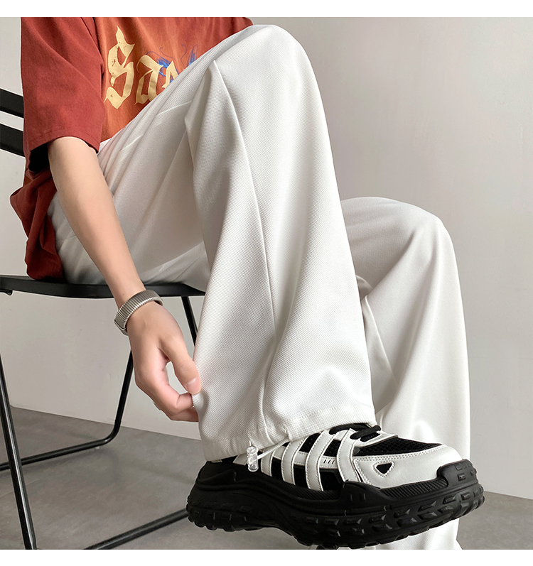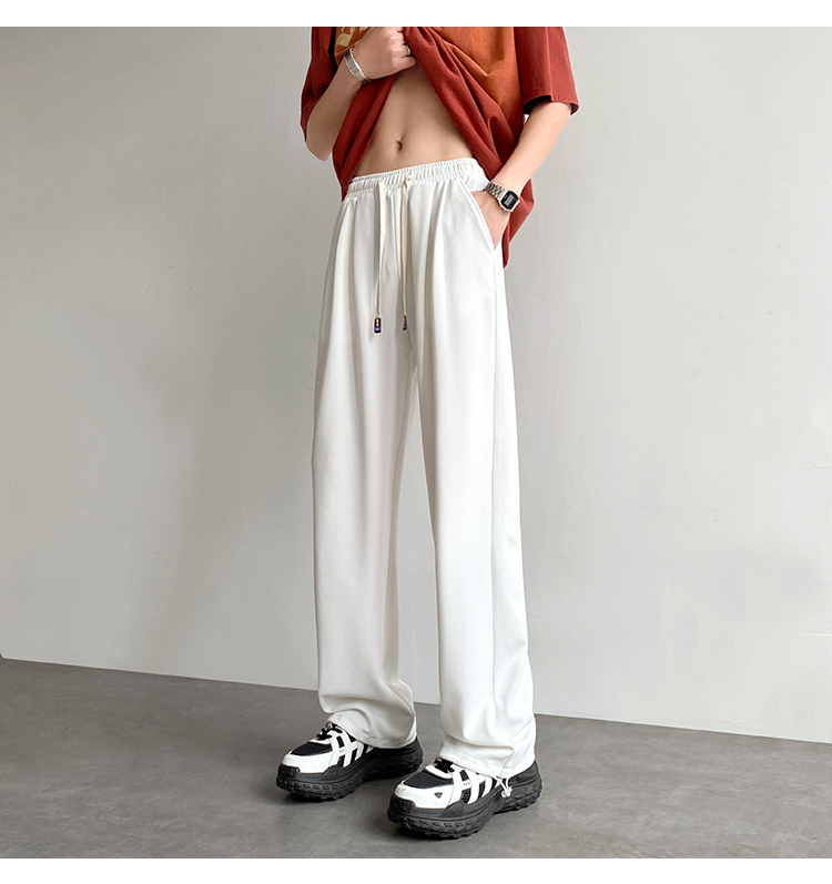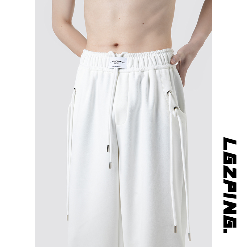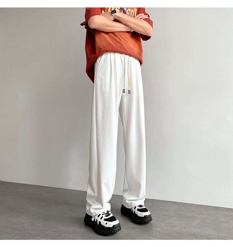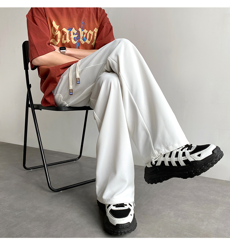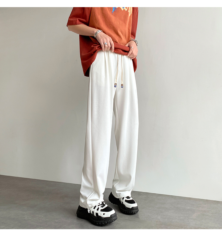 純白色褲子設計感小眾高級抽繩衛褲美式直筒高個子垂感休閒運動褲