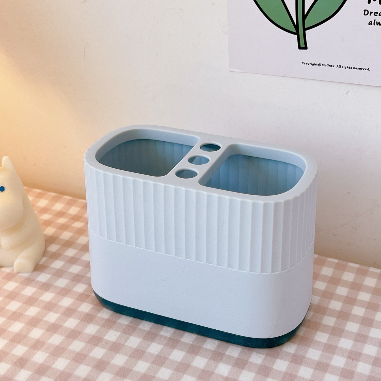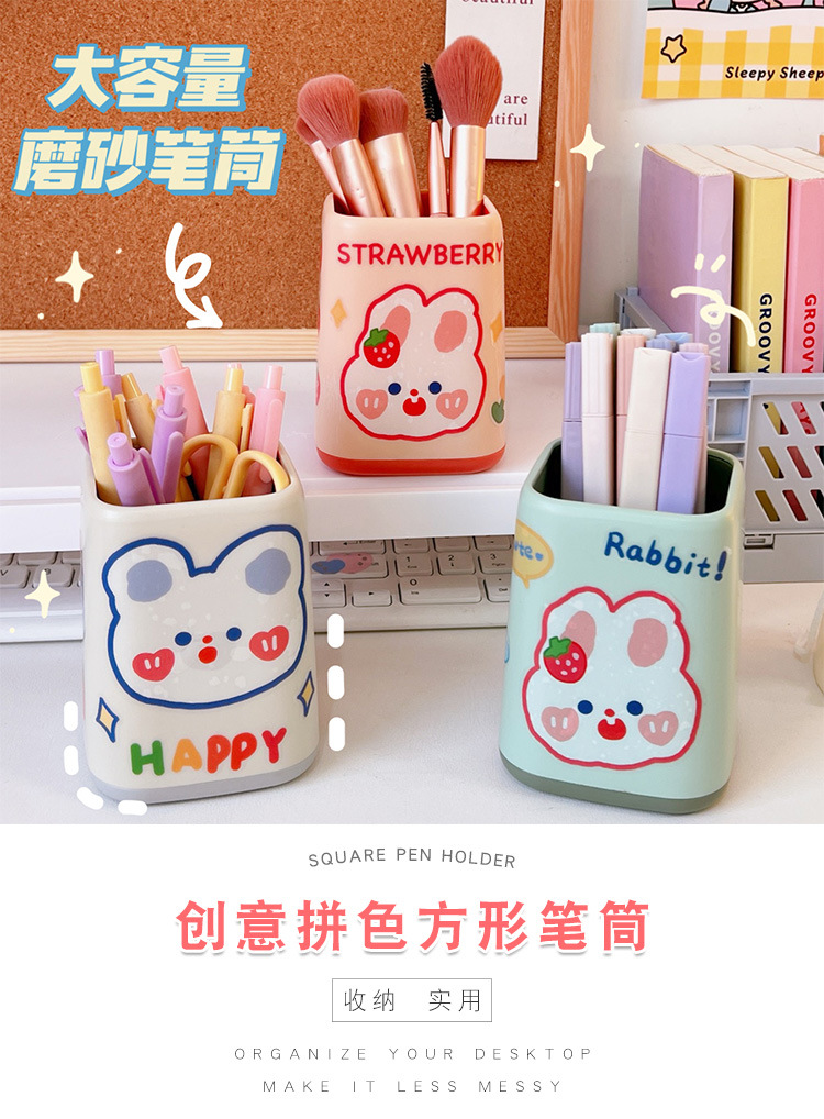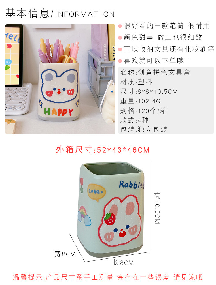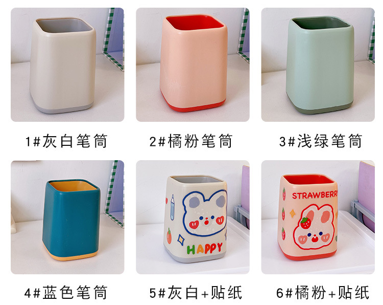 日系创意双色拼色方形笔筒塑料简约大容量办公桌面收纳学生文具盒