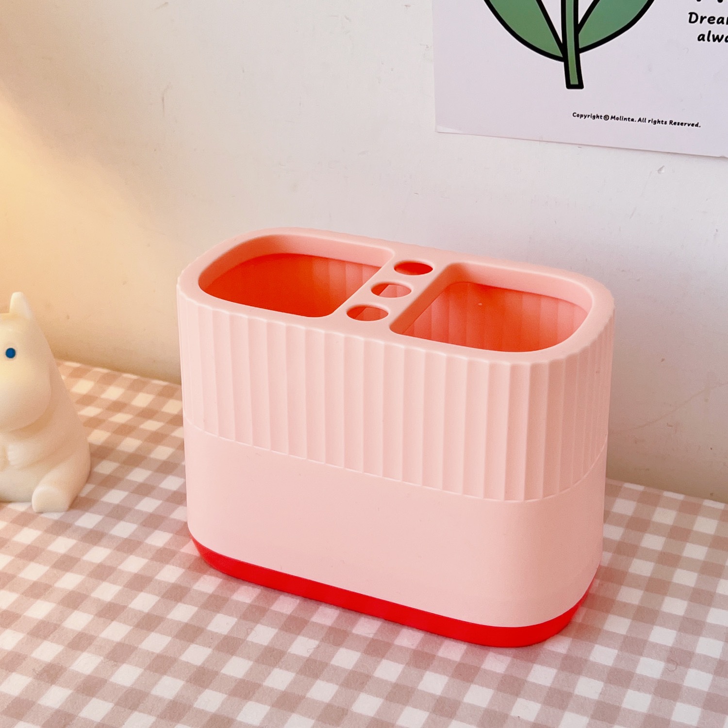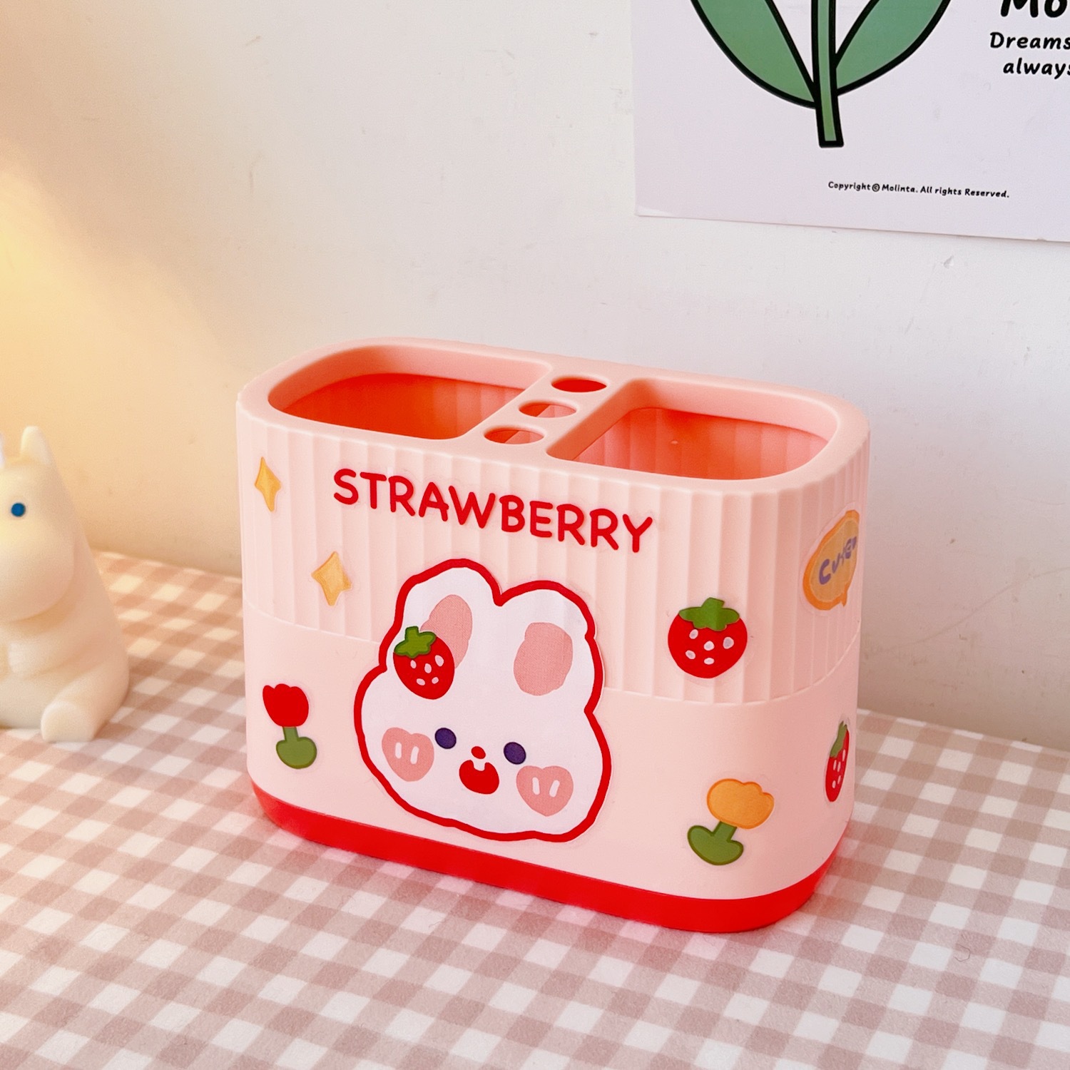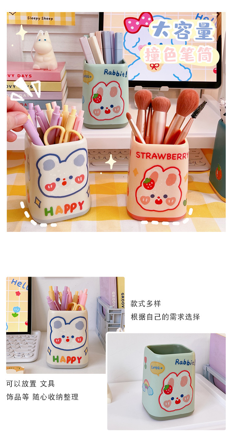 日系创意双色拼色方形笔筒塑料简约大容量办公桌面收纳学生文具盒