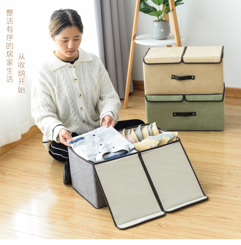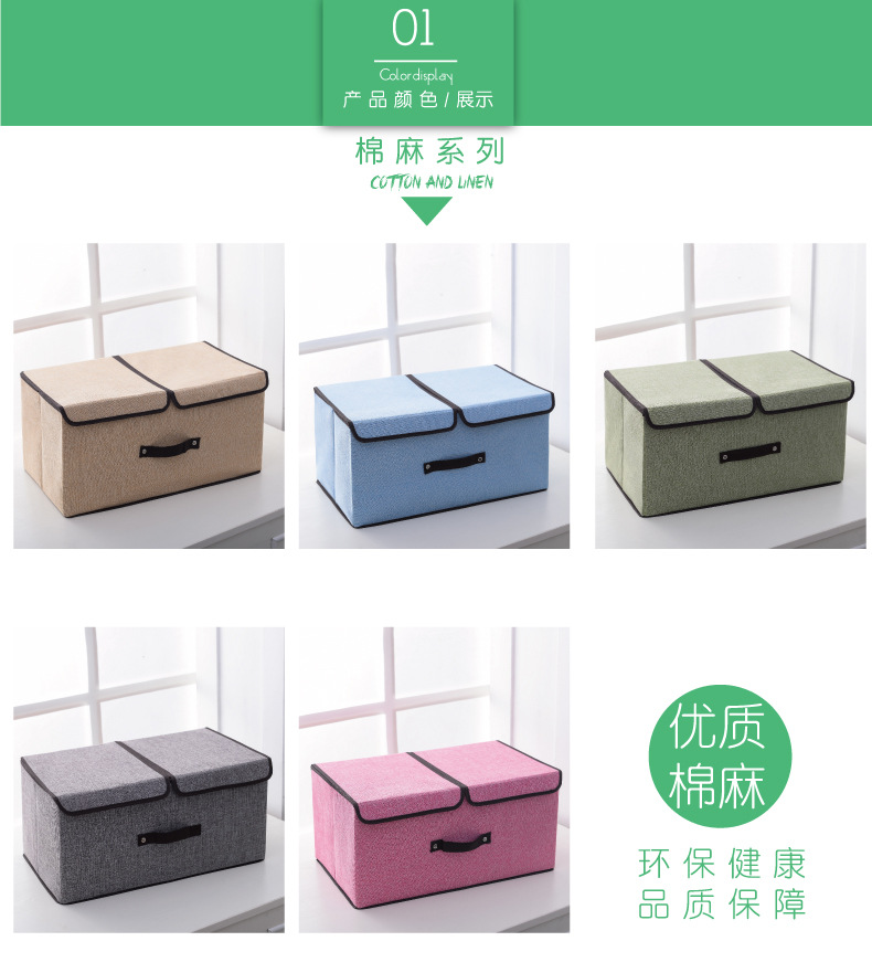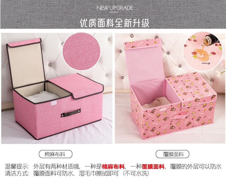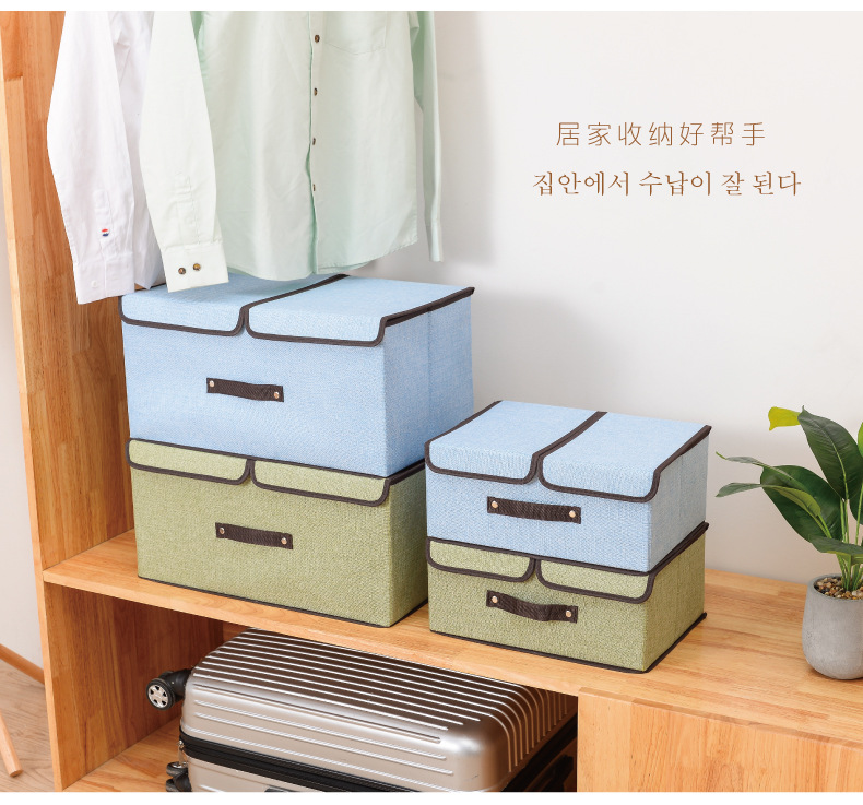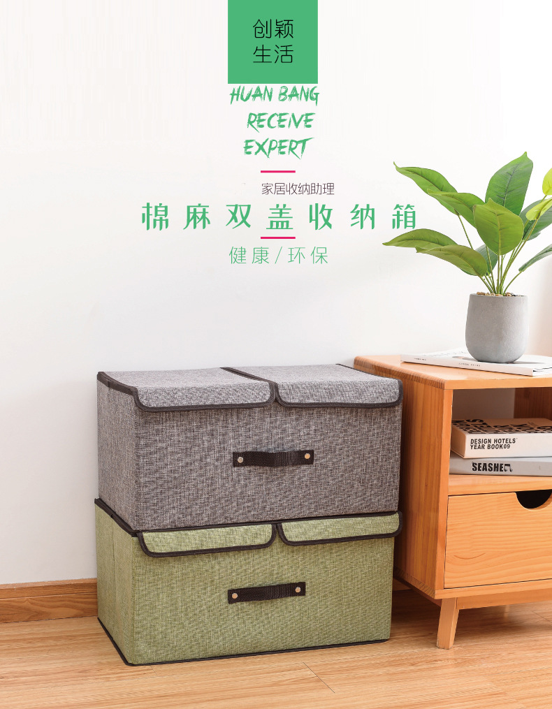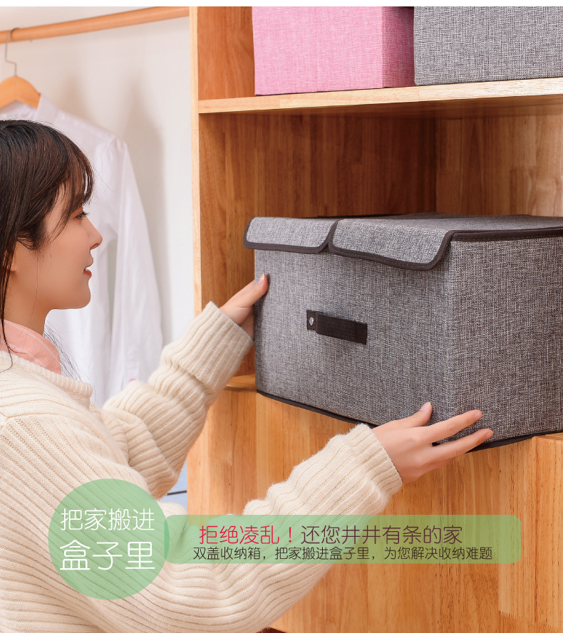 收纳箱整理箱布艺可折叠双盖大号收纳盒内衣盒衣服整理收纳储物盒