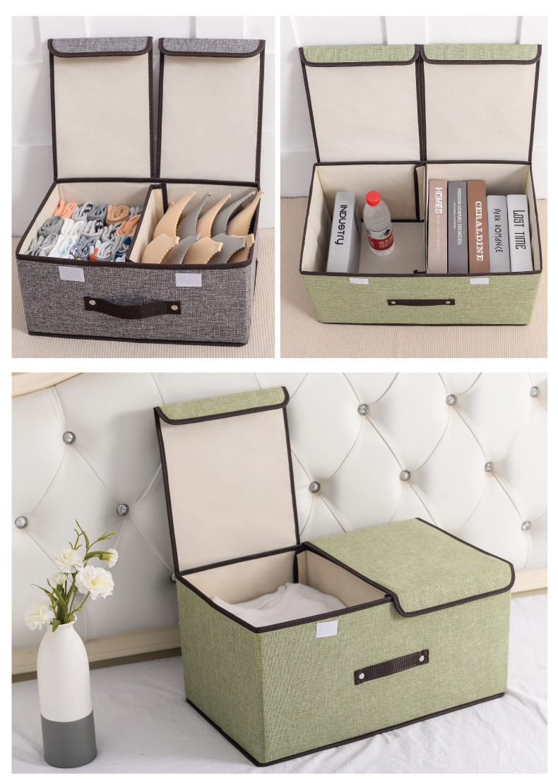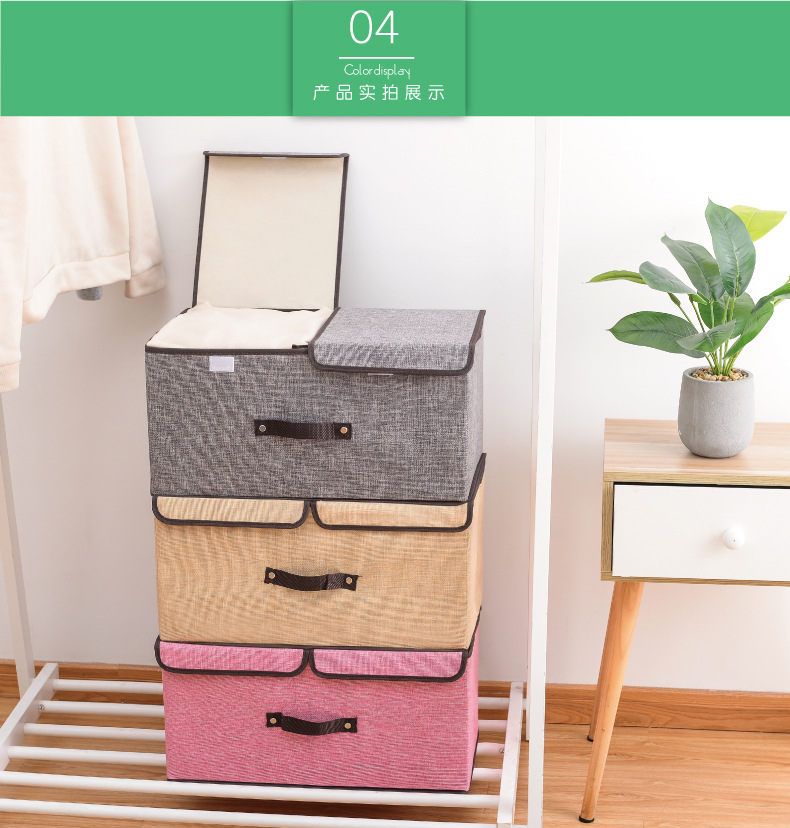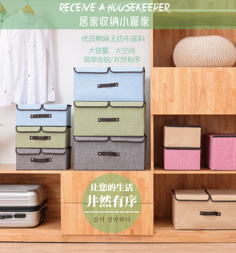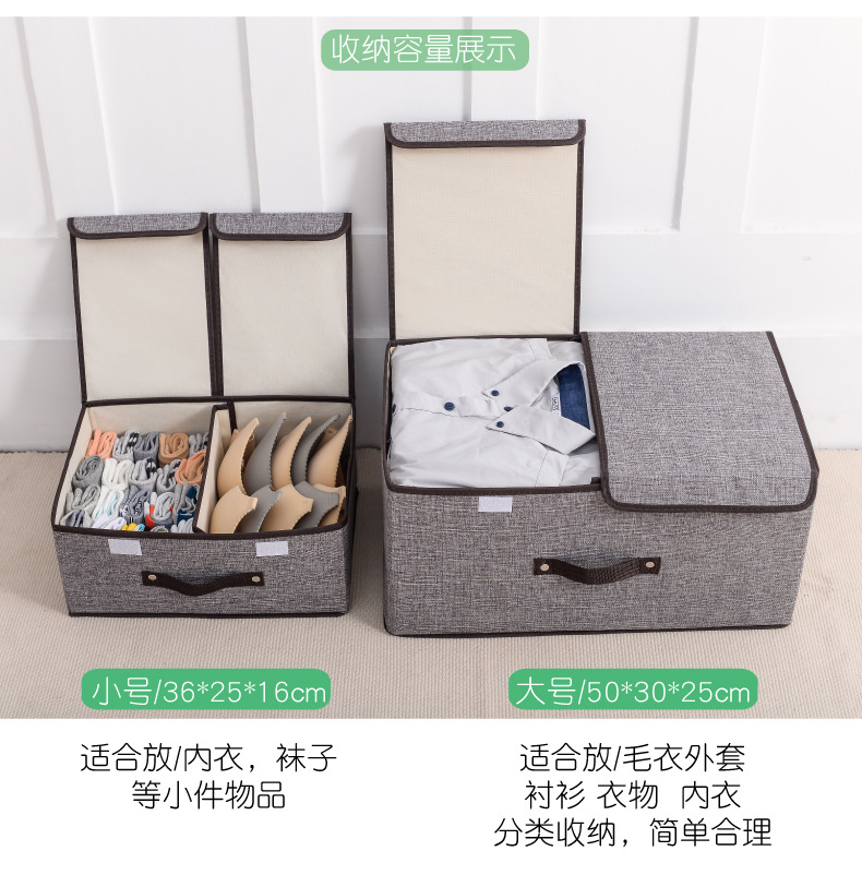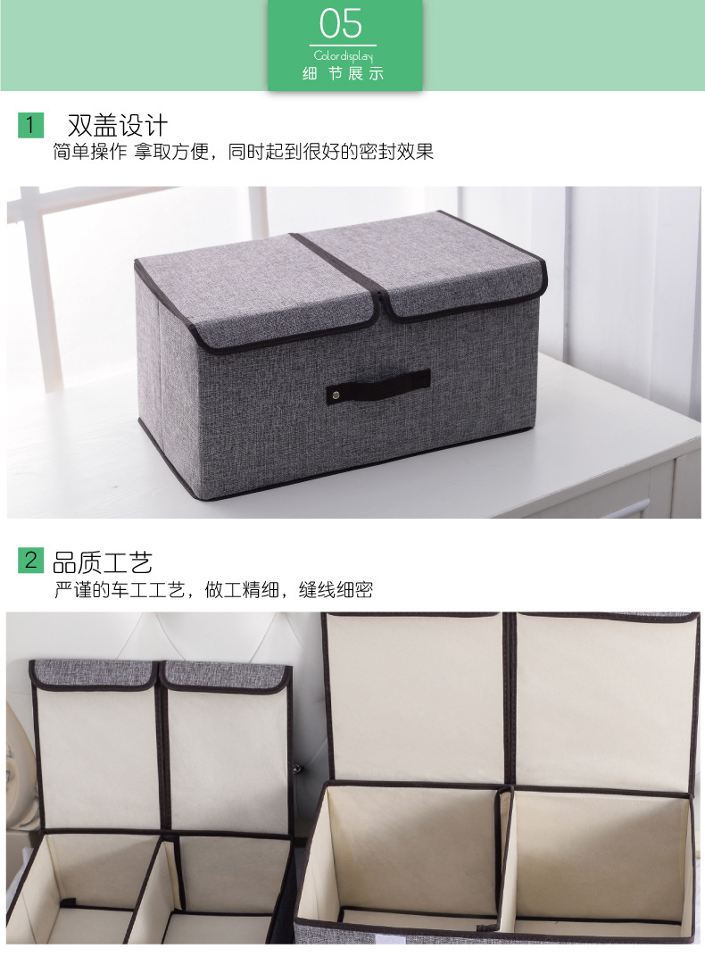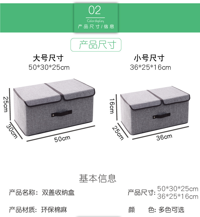收纳箱整理箱布艺可折叠双盖大号收纳盒内衣盒衣服整理收纳储物盒