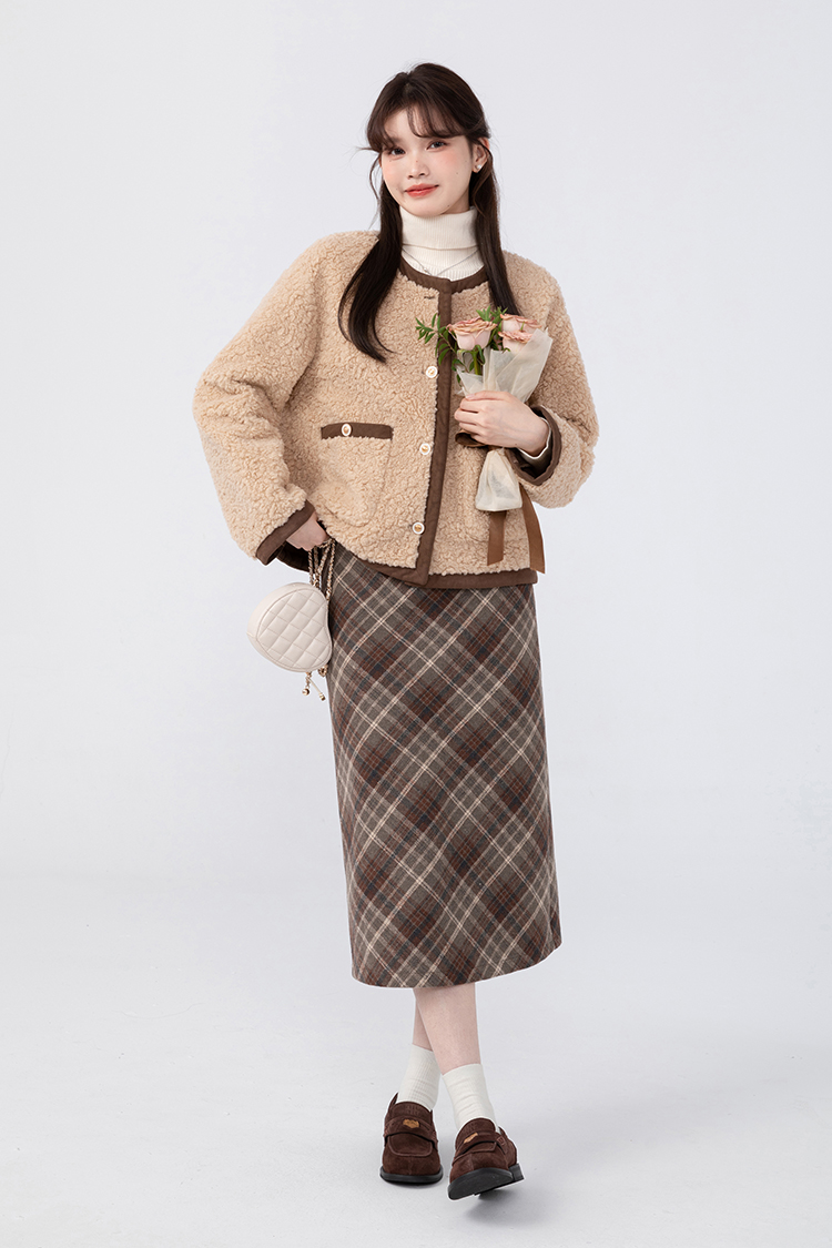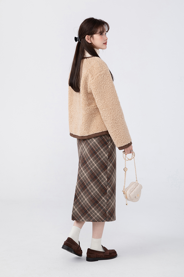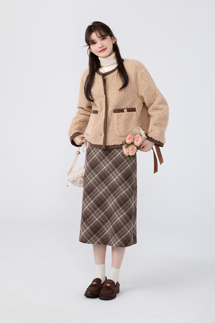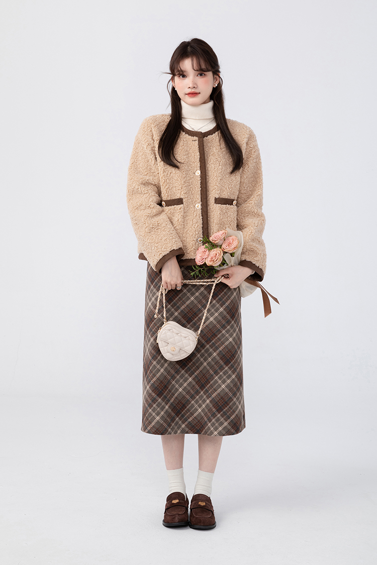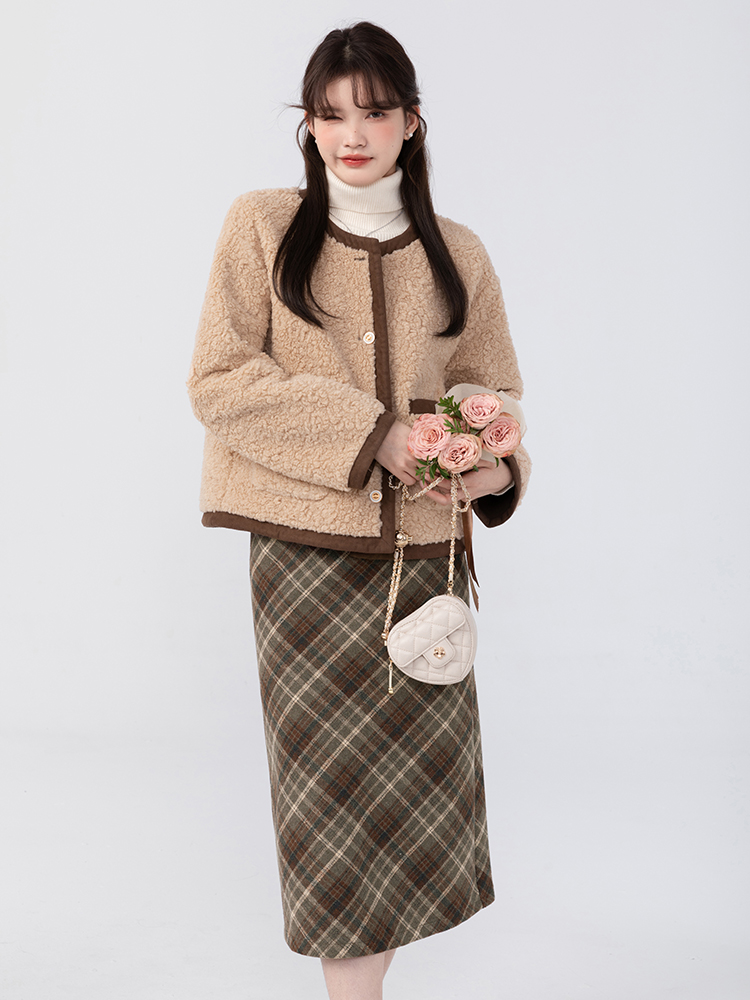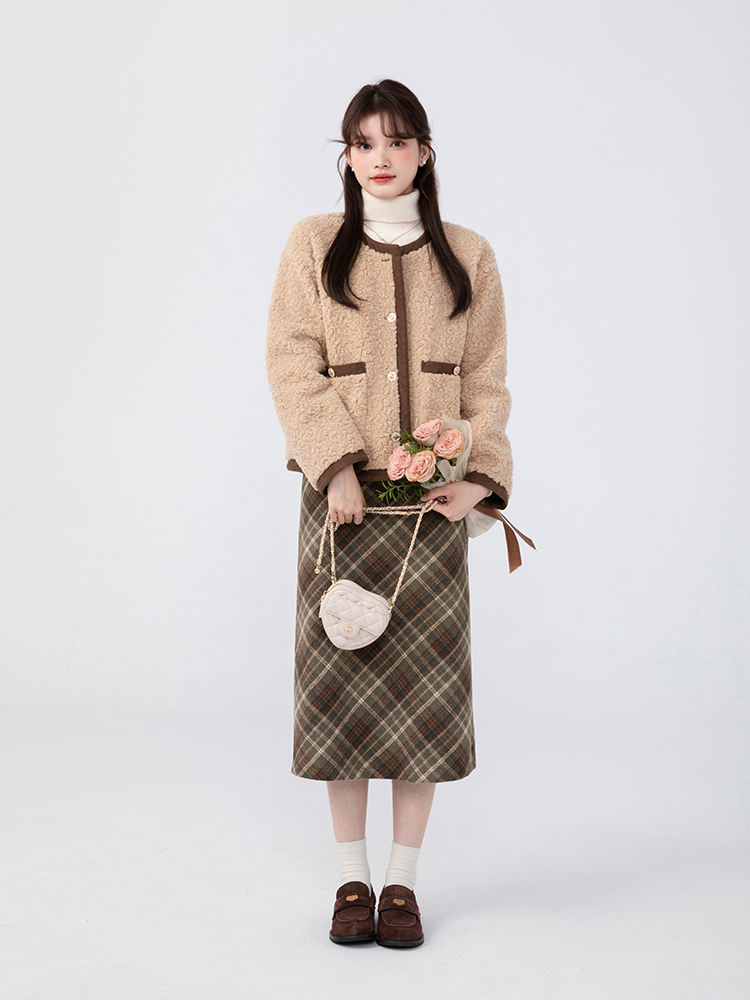 羊城故事法式復古配皮帶格紋半身裙女2023秋冬學院休閒高腰a字裙