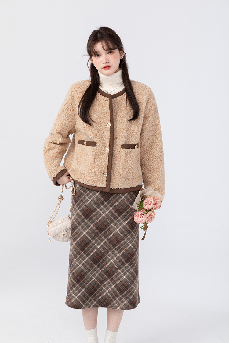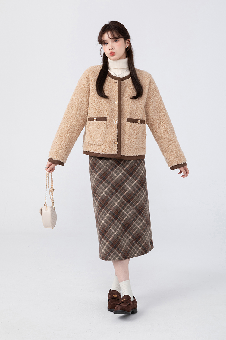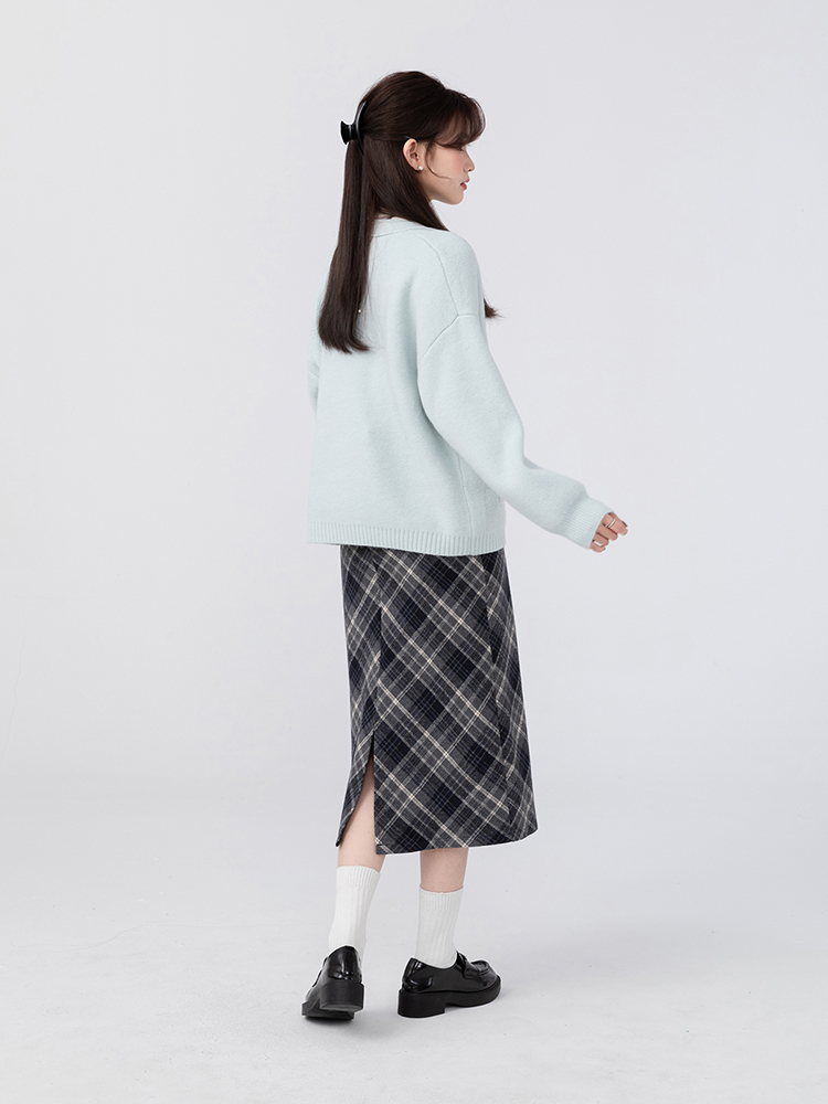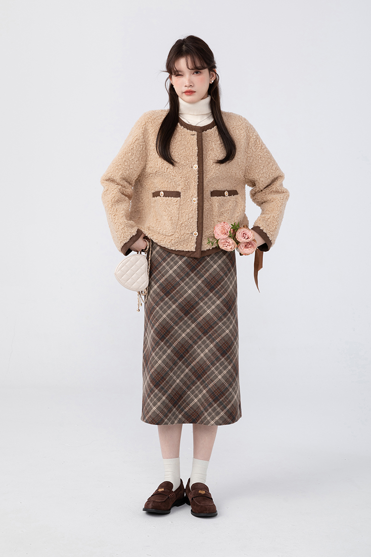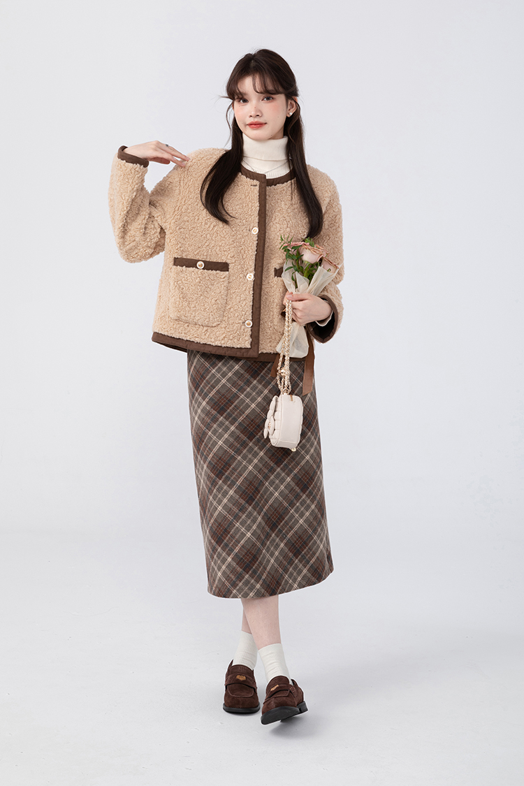 羊城故事法式復古配皮帶格紋半身裙女2023秋冬學院休閒高腰a字裙