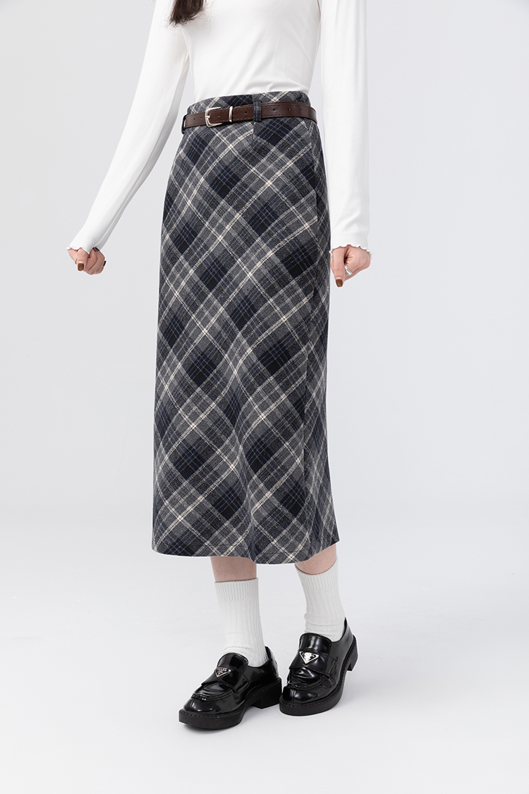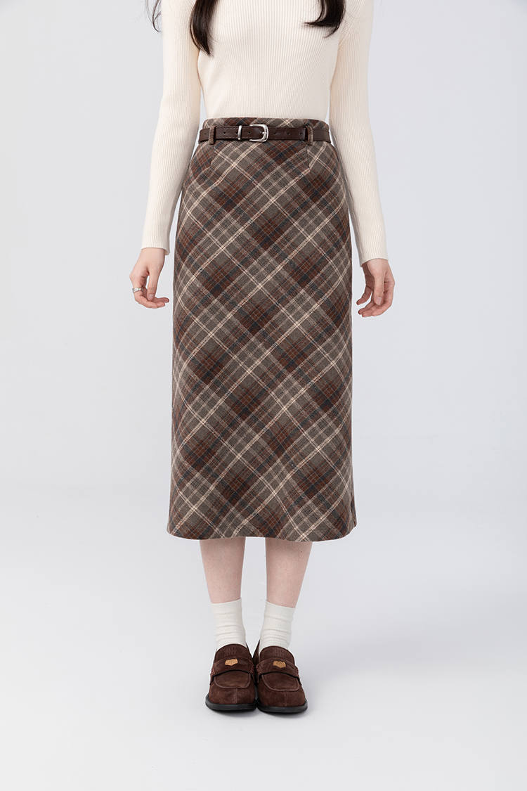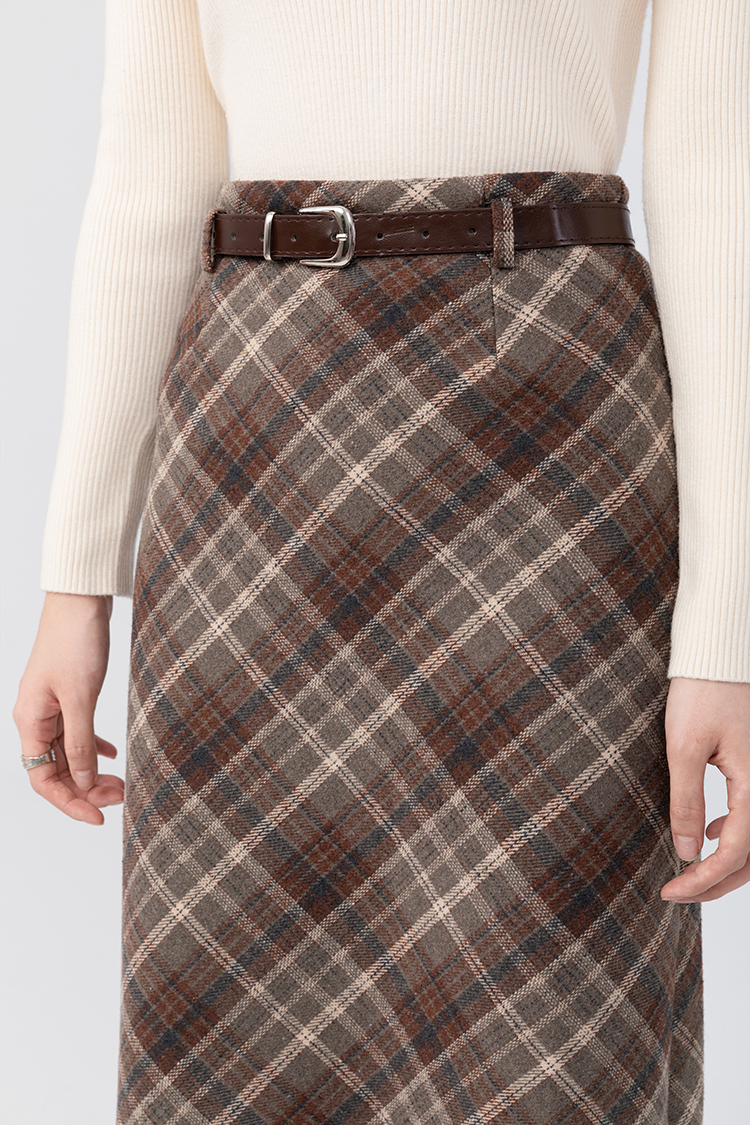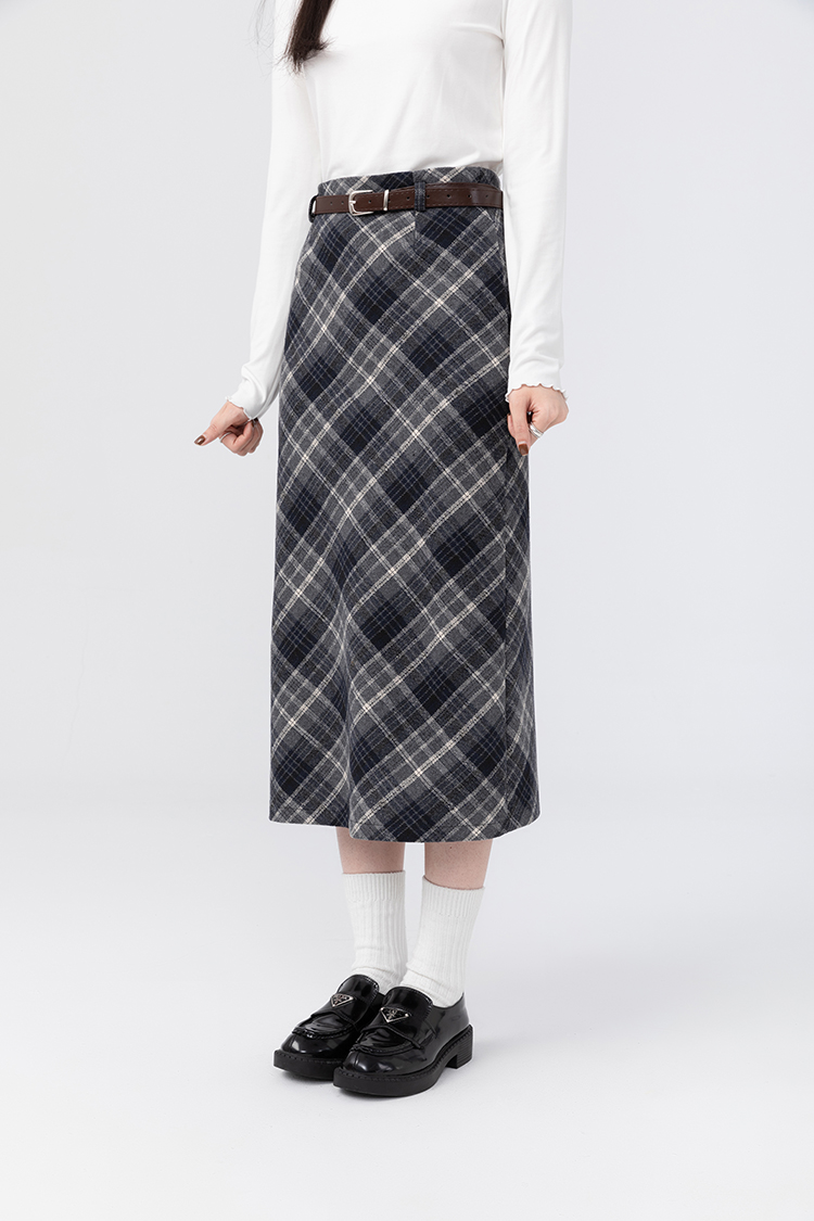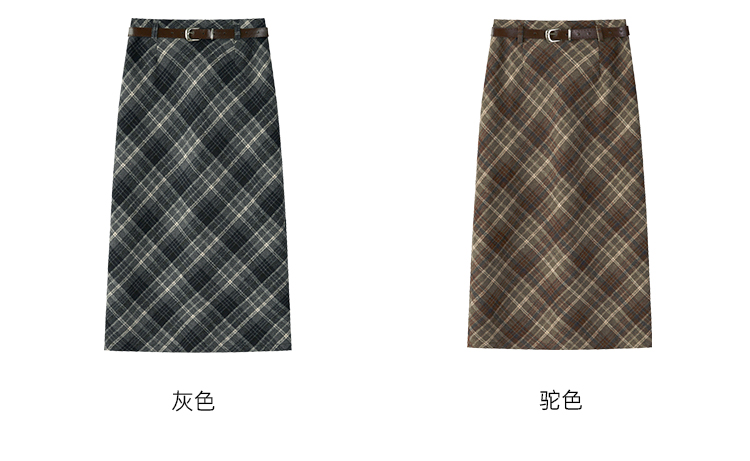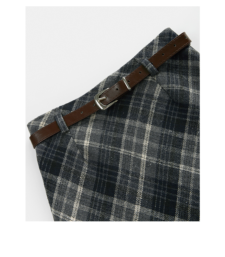 貨號 Y23Y10x配皮帶格紋半身裙x9053