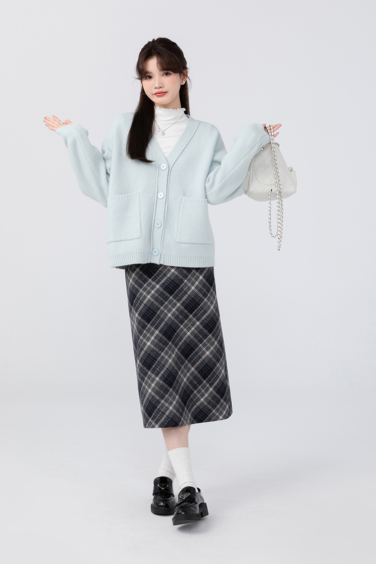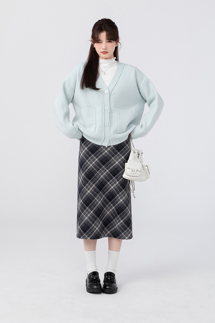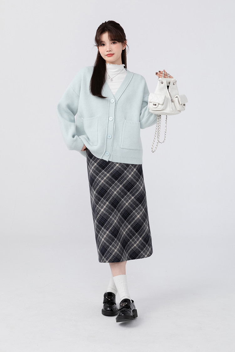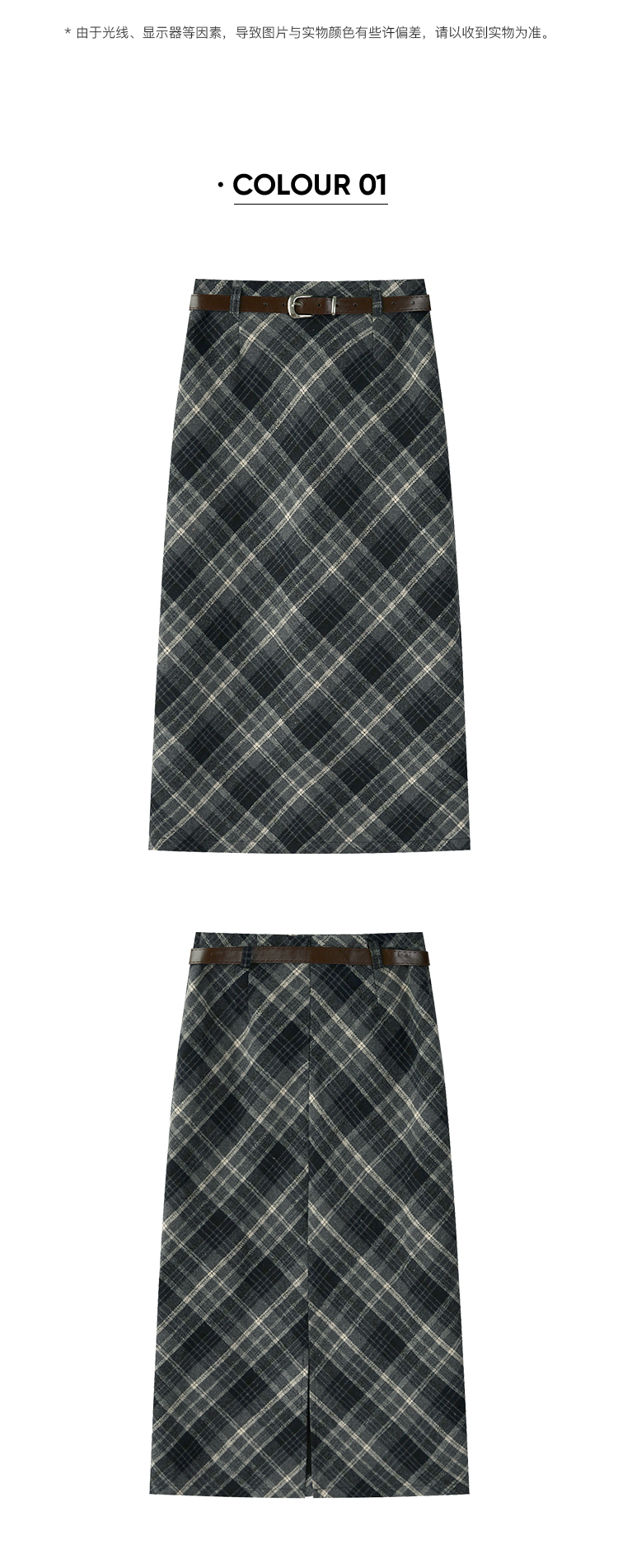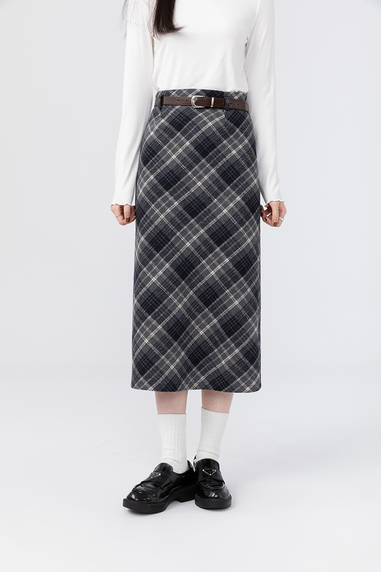 貨號 Y23Y10x配皮帶格紋半身裙x9053
