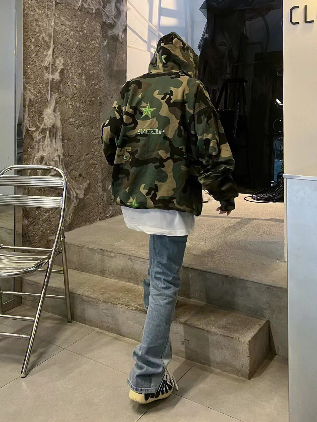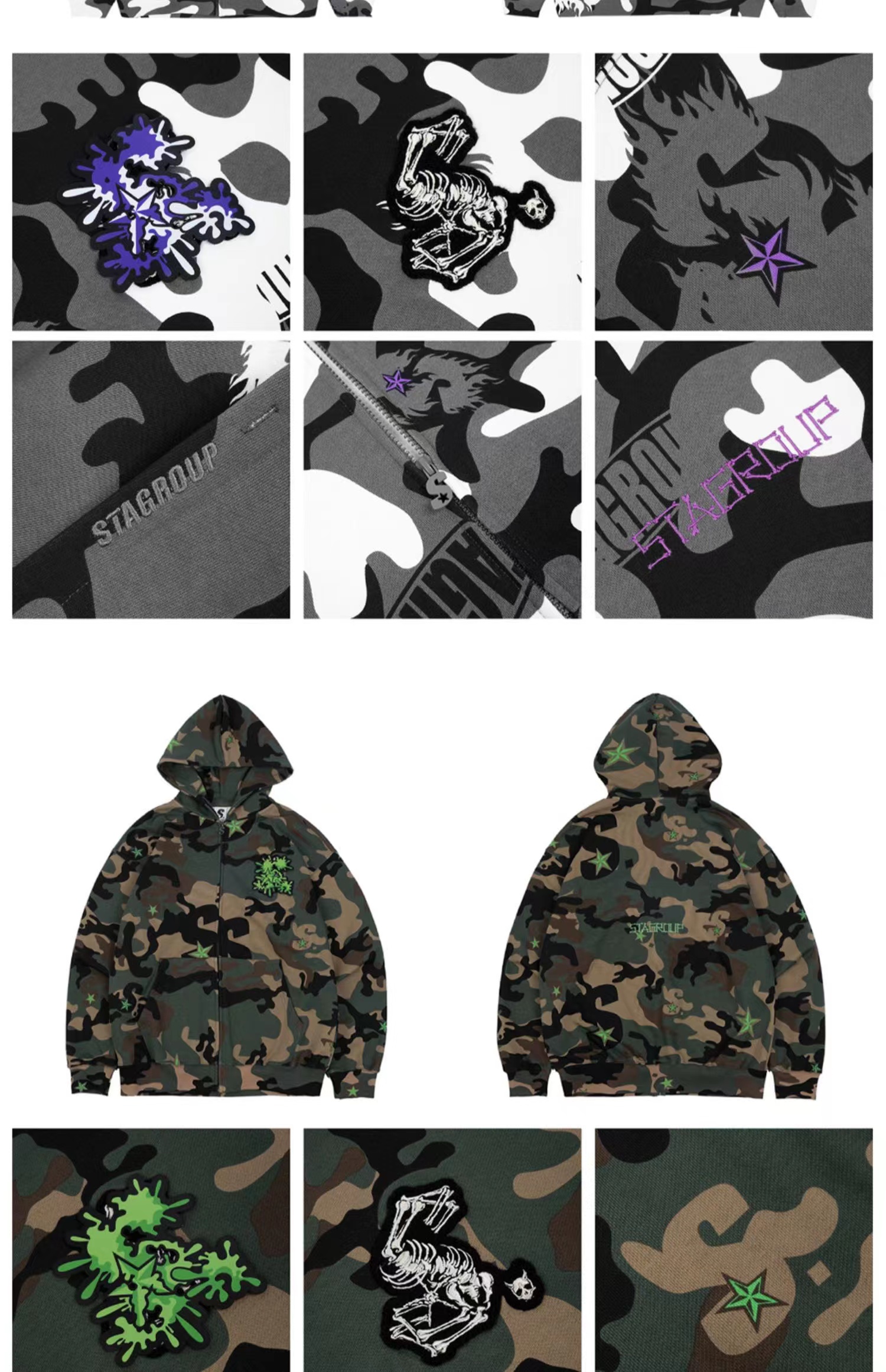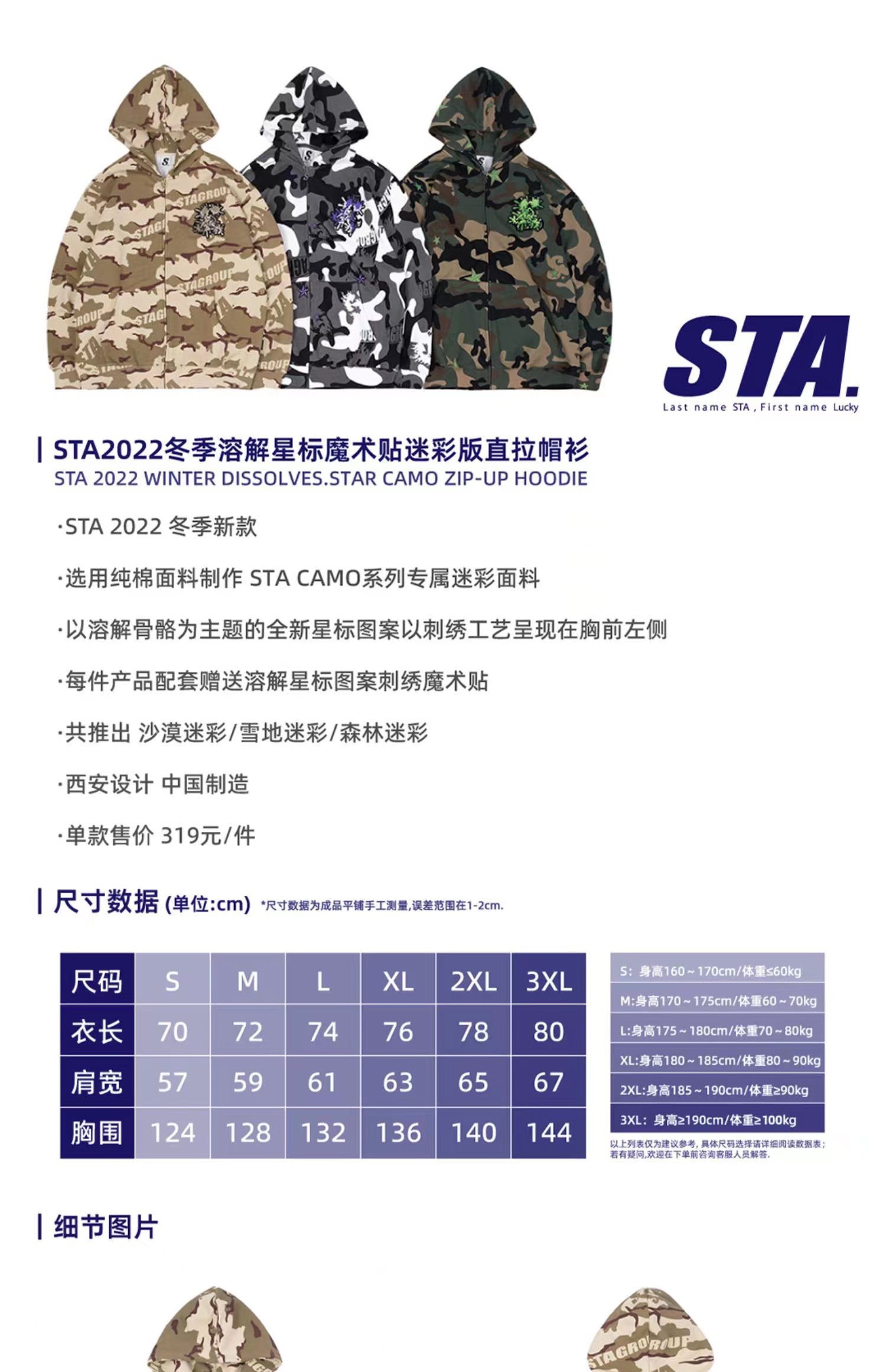 STA線上商店HOVA冬季溶解星標魔術貼迷彩連帽衫大尺碼衛衣直拉外套