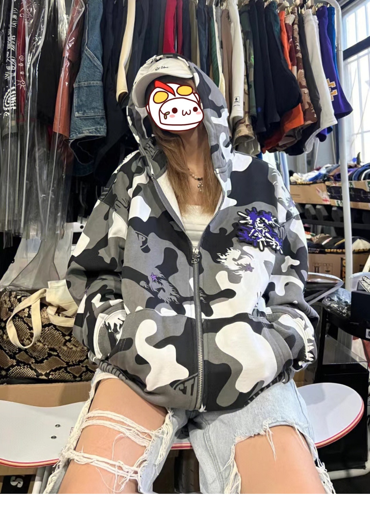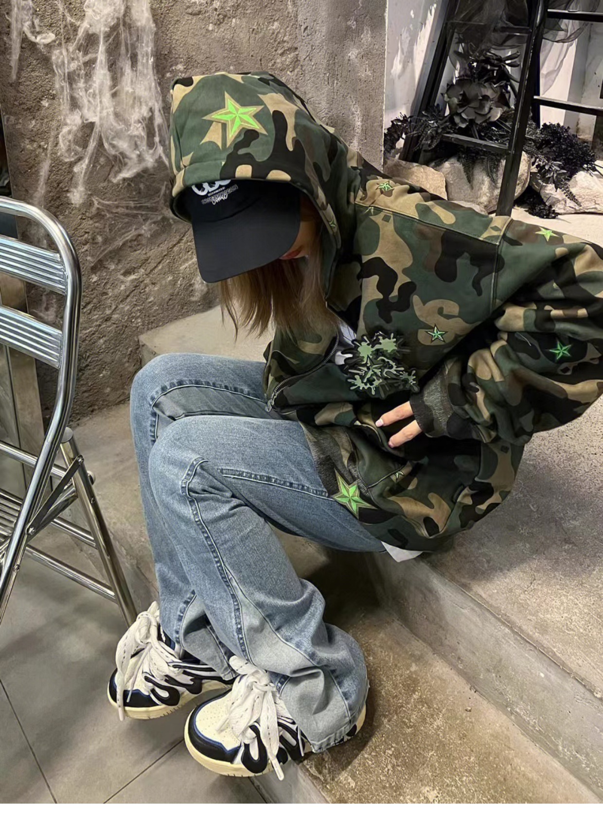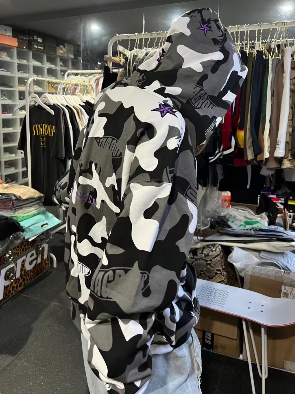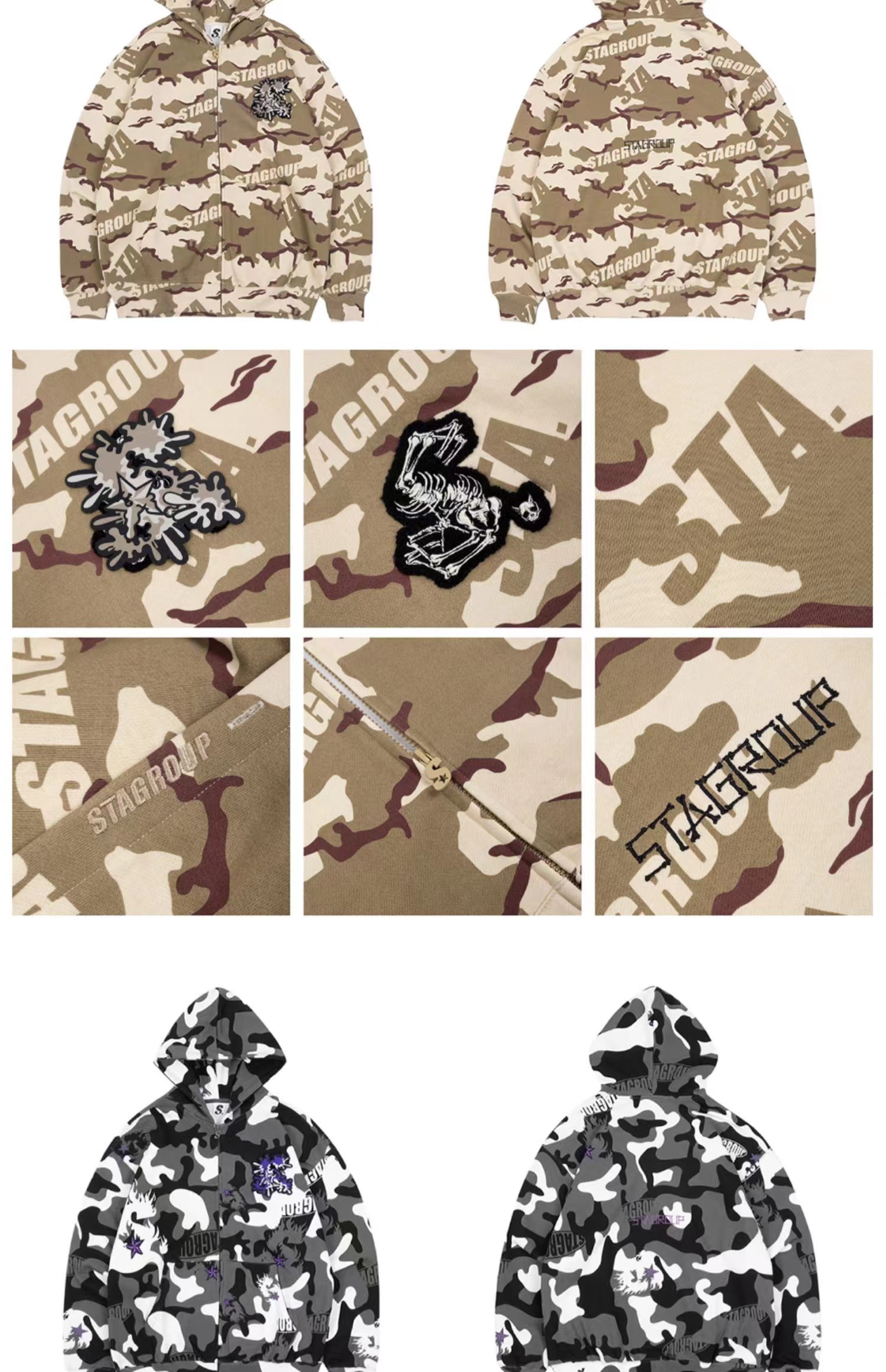 STA線上商店HOVA冬季溶解星標魔術貼迷彩連帽衫大尺碼衛衣直拉外套