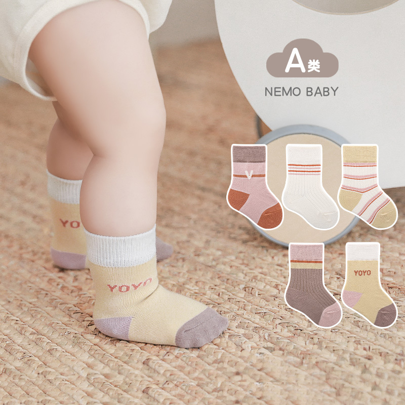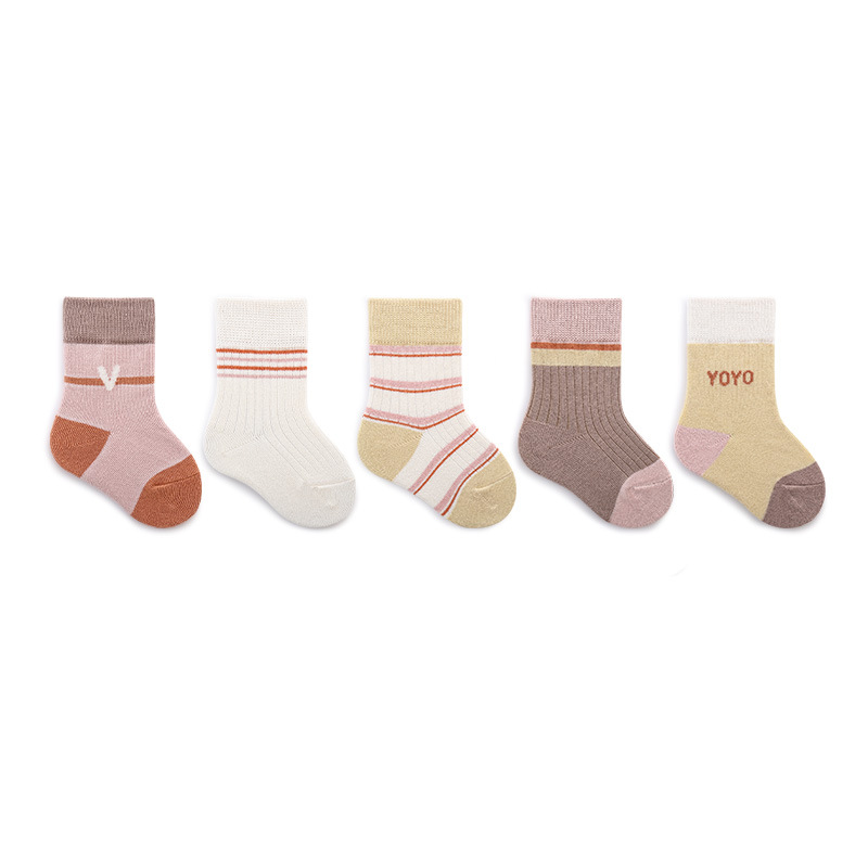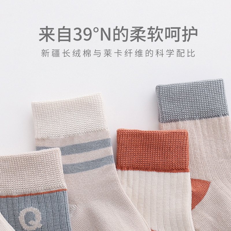 儿童袜子春秋松口精梳棉宝宝袜子条纹字母学生学院风男女童中筒袜