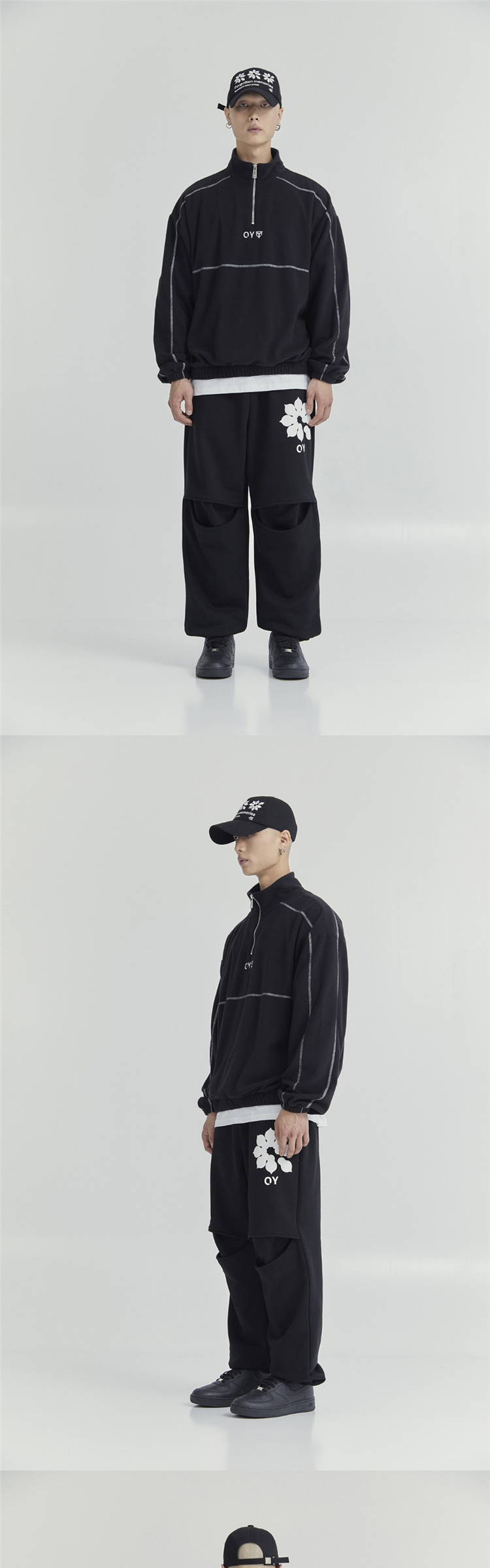 seventeen全圓佑同款~韓國代購直郵OY男女寬鬆縫線半拉鍊套頭休閒上衣