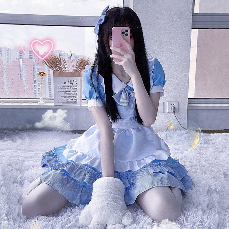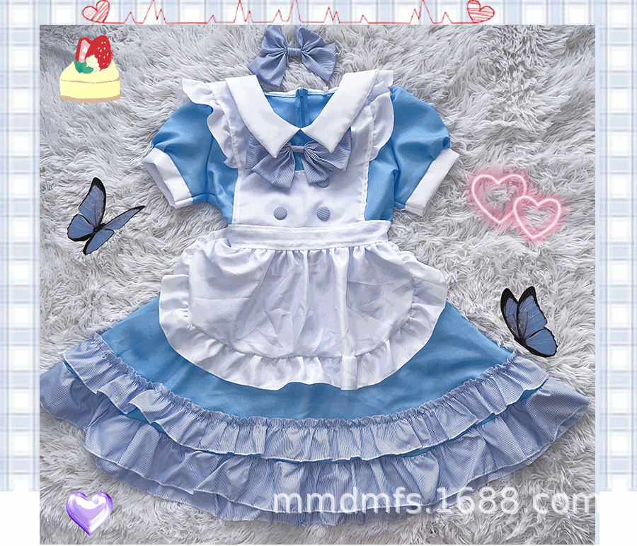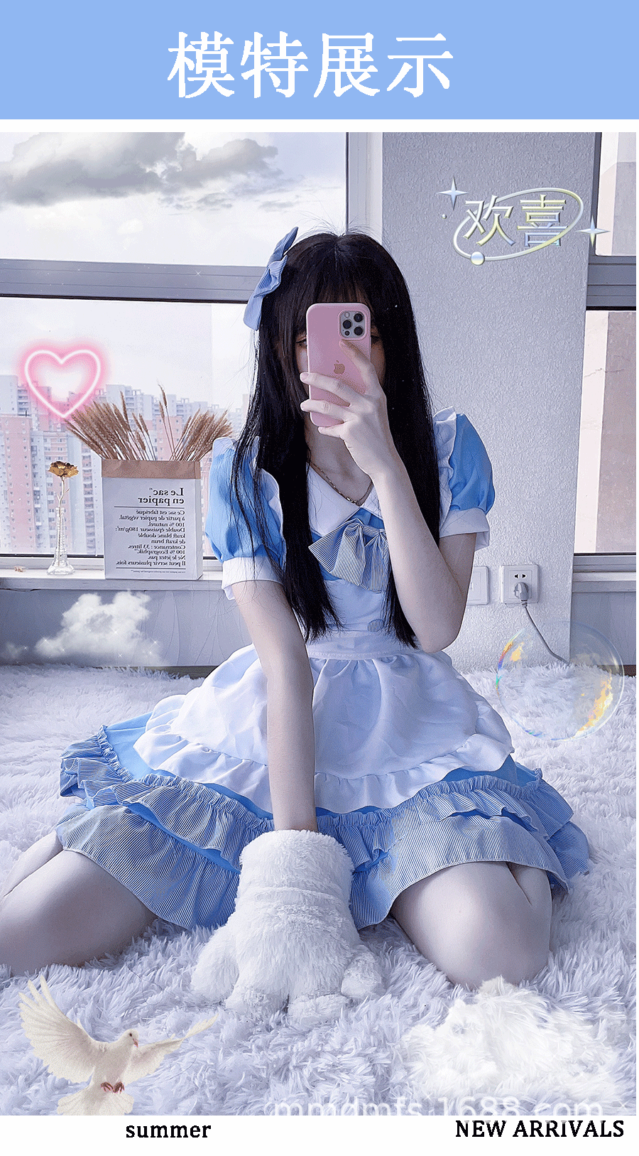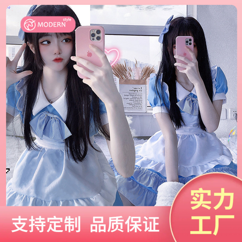 蓝白女仆装cosplay动漫服装洛丽塔软妹日系可爱 Lolita连衣裙