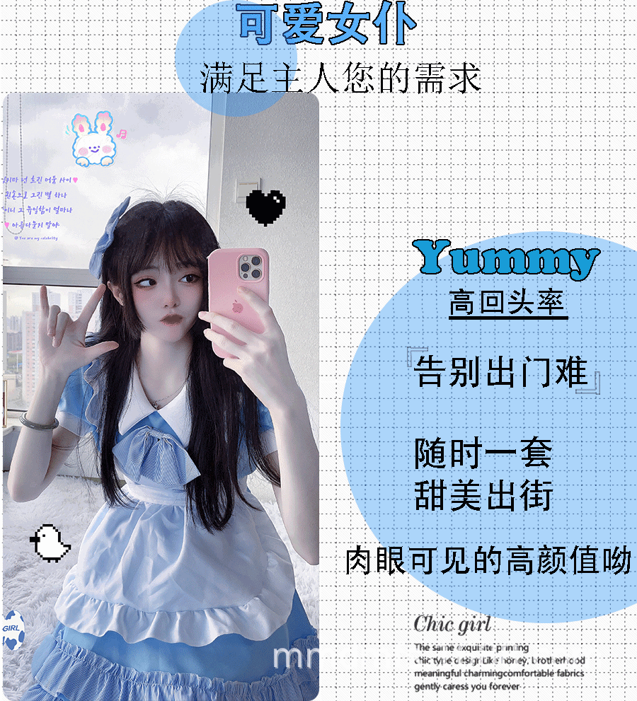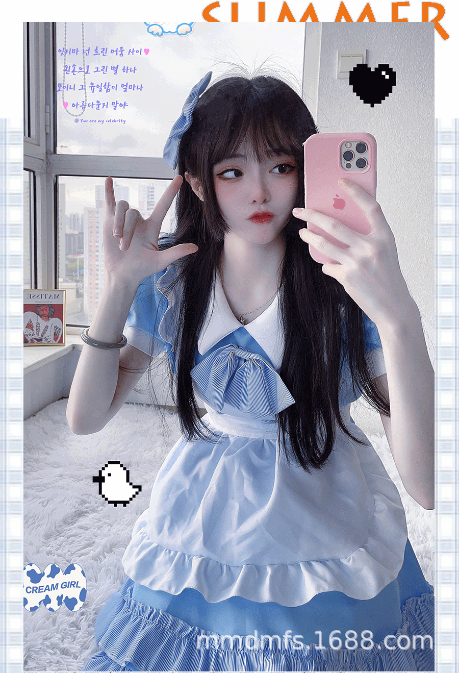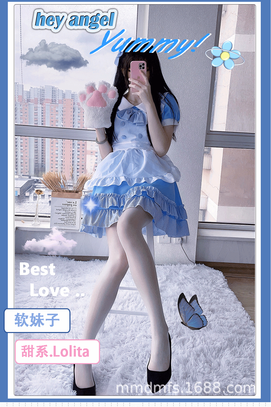 蓝白女仆装cosplay动漫服装洛丽塔软妹日系可爱 Lolita连衣裙