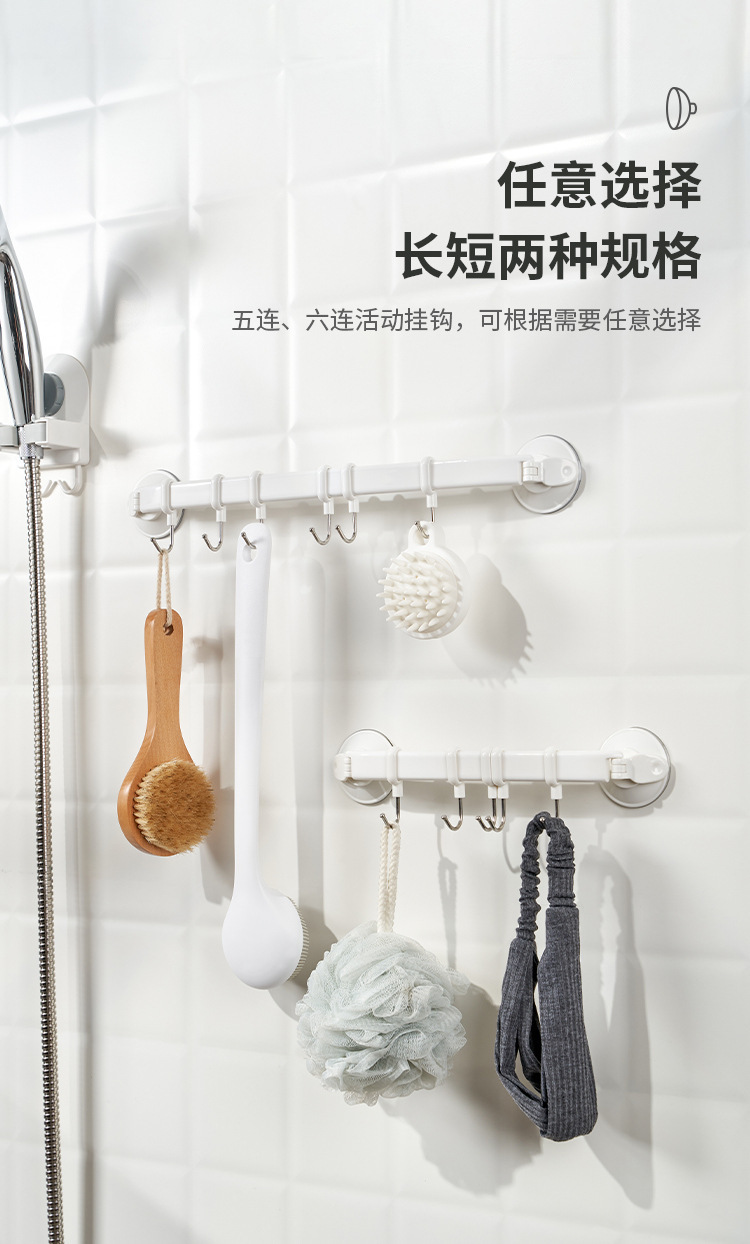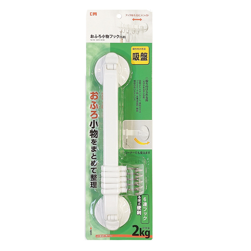 日本KM.553.强力吸盘挂钩 5连钩墙角随意吸盘钩 双吸盘浴室挂钩
