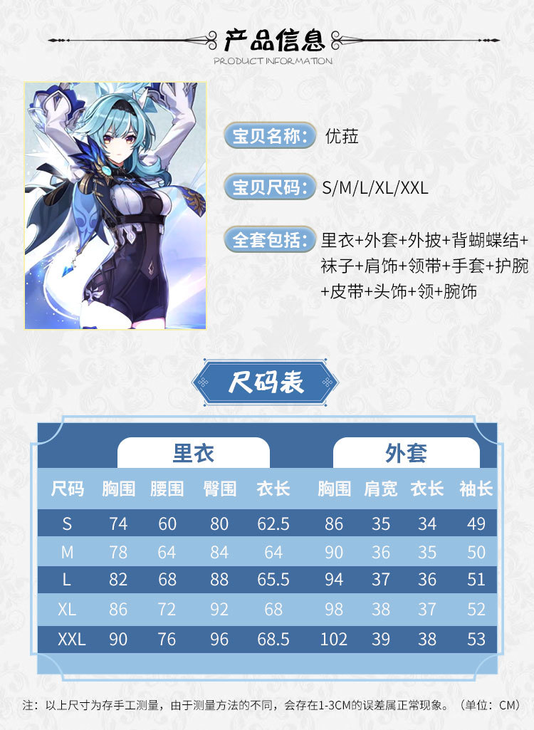 颜色 优菈衣服全套,优菈【假发】,优菈鞋子定制(34-43)下单备注鞋码