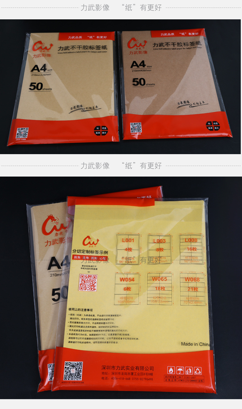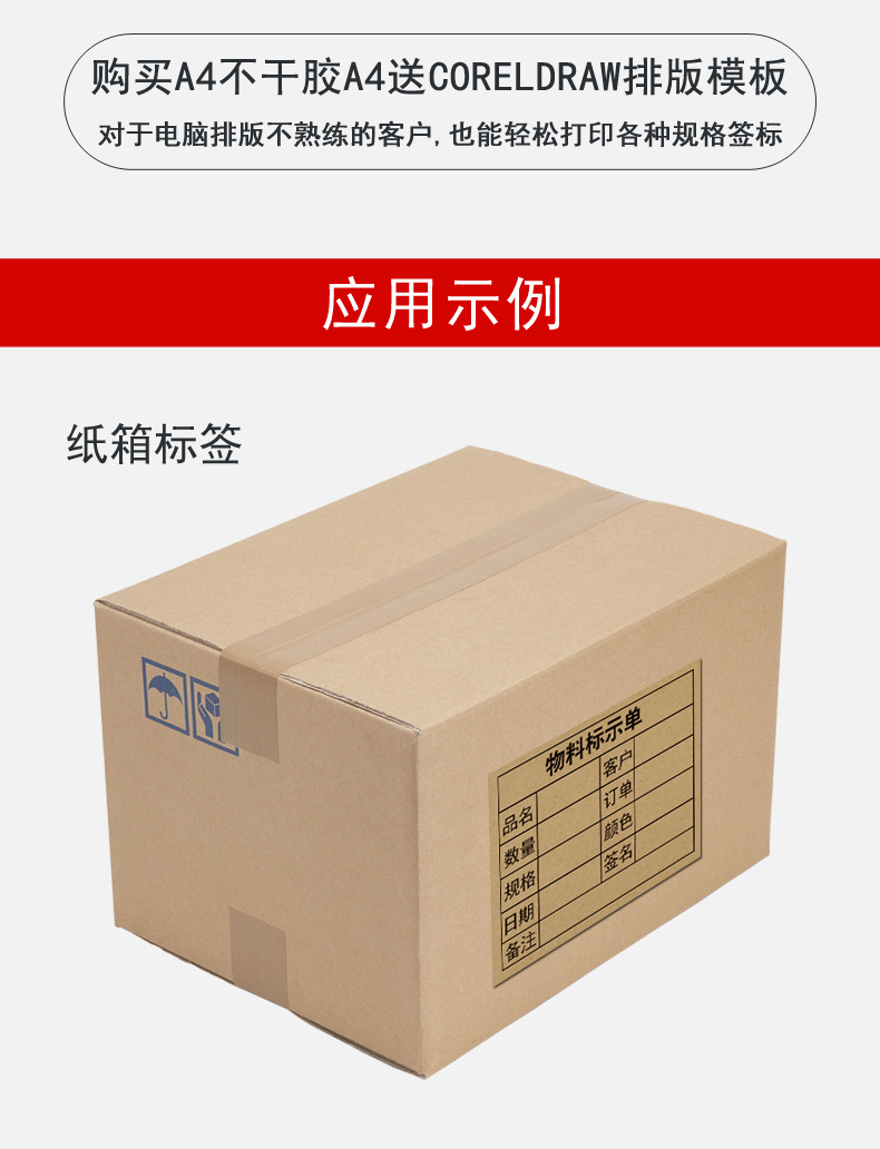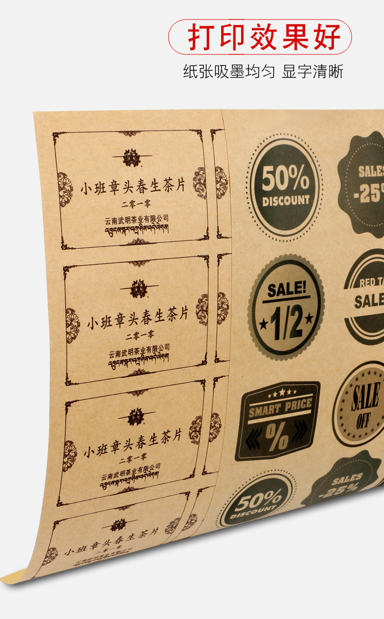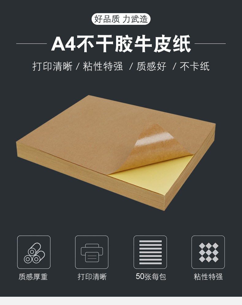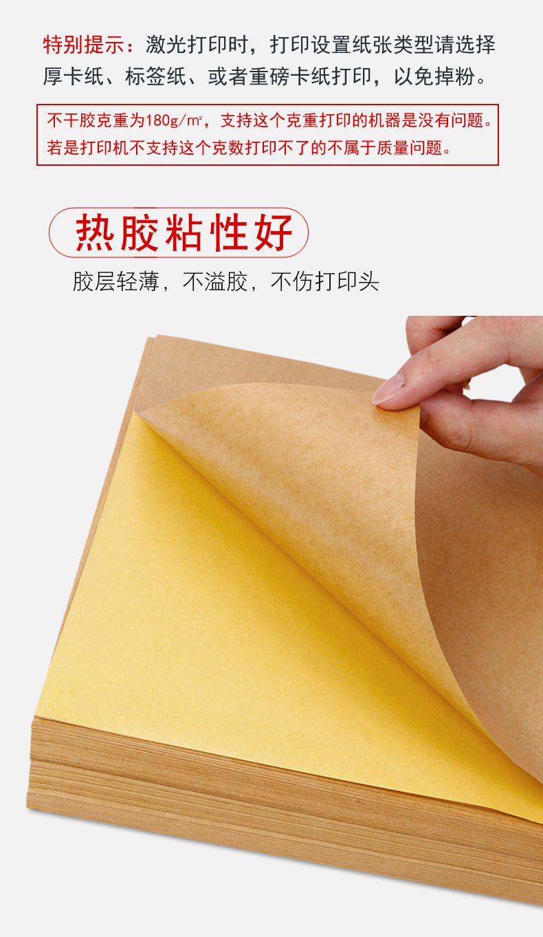 牛皮纸不干胶A4A3A5深色浅色激光喷墨打印书写标签纸背胶贴纸箱色