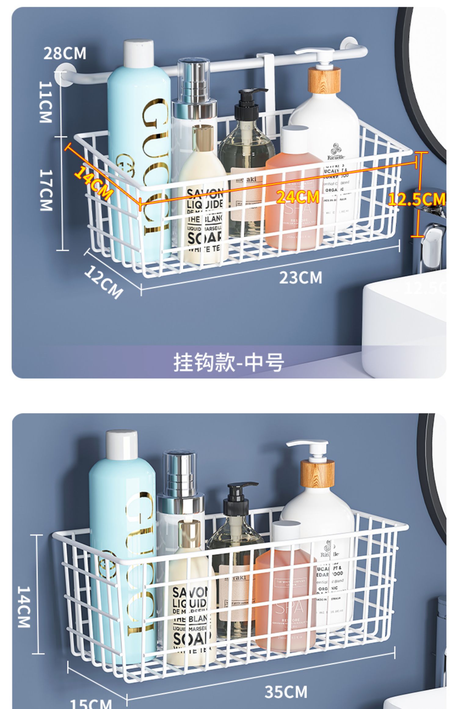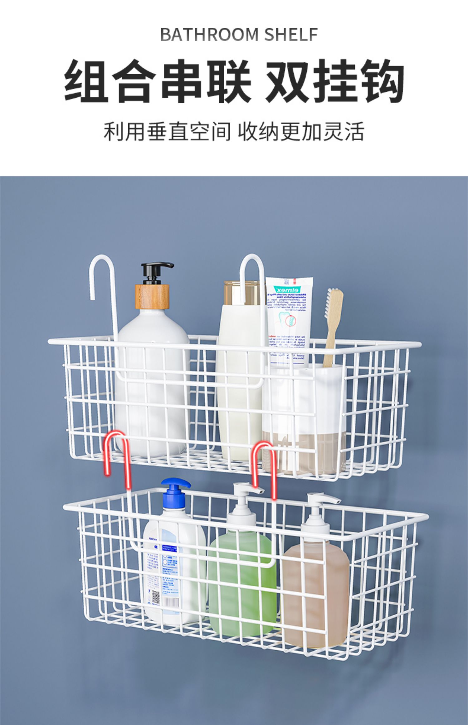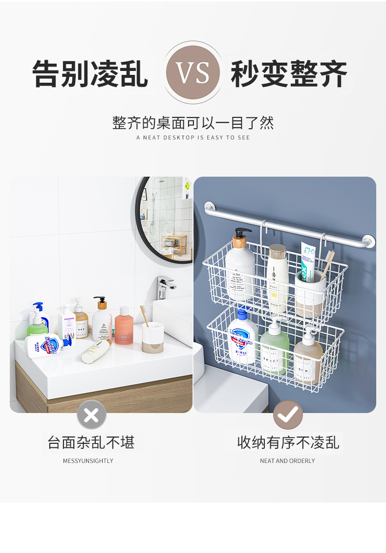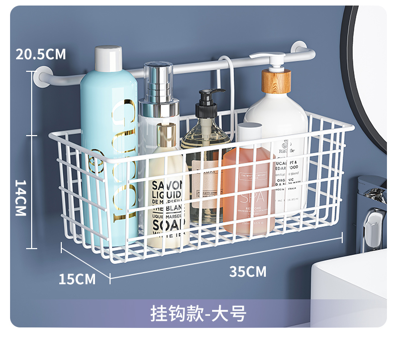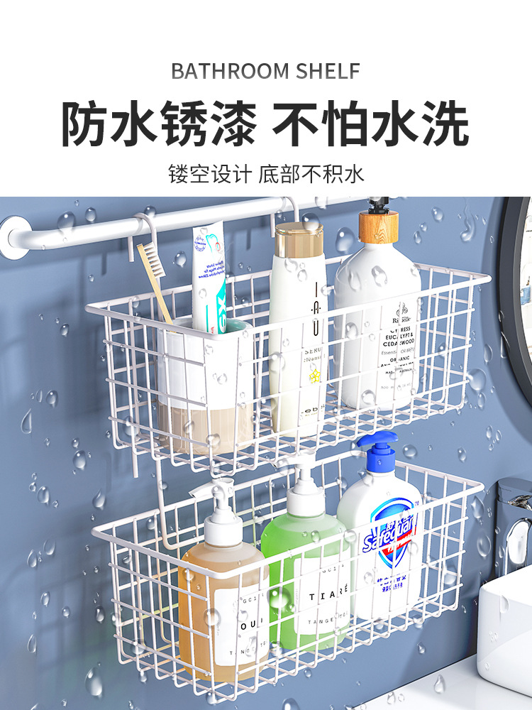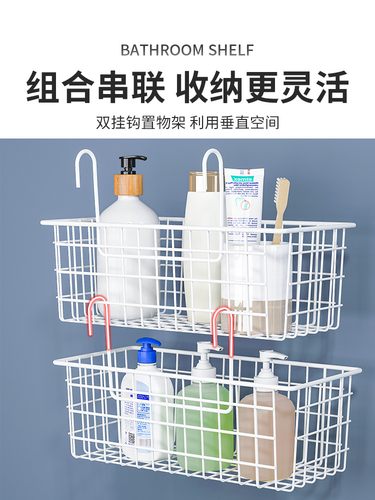 K9HX批发浴室收纳筐卫生间挂篮置物架厕所墙上沐浴收纳篮壁挂钩式