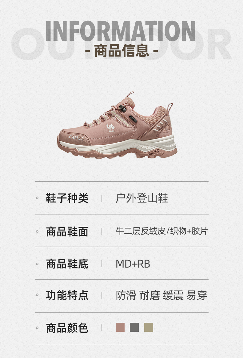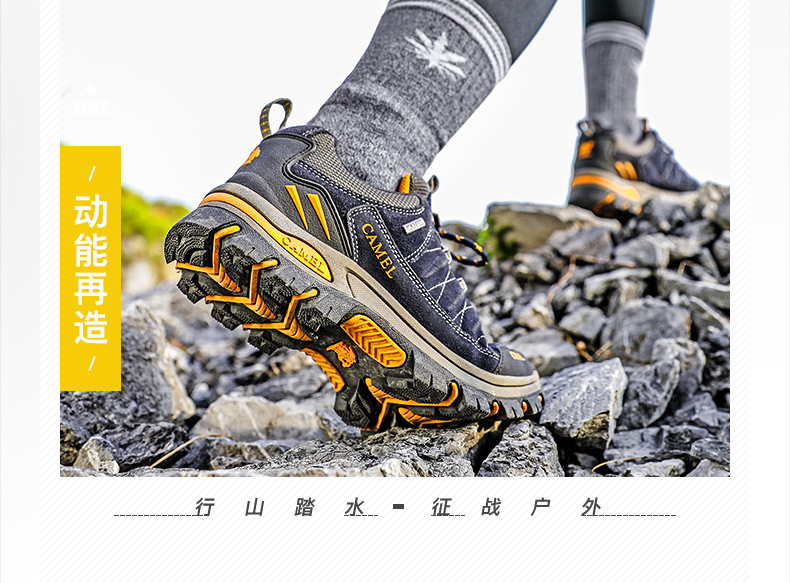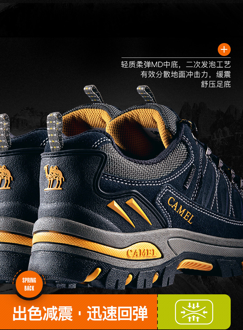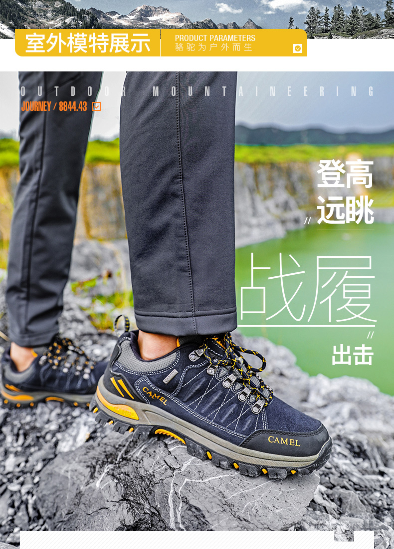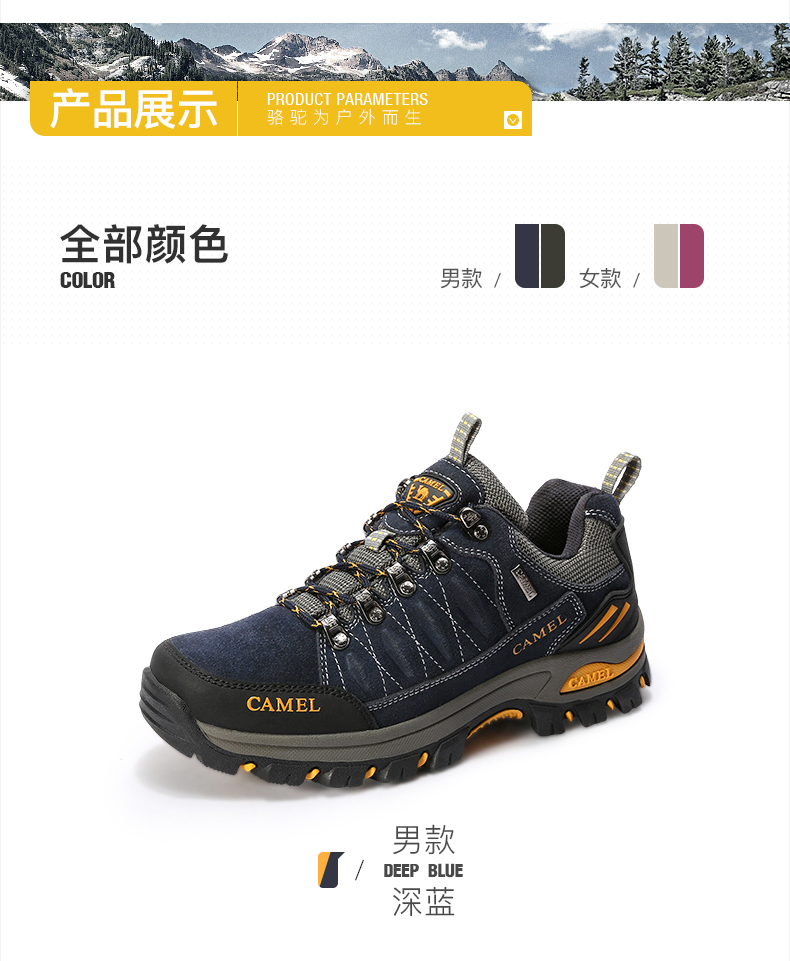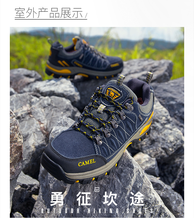駱駝戶外登山鞋男士春夏防滑耐磨牛皮旅遊運動低幫專業徒步鞋女