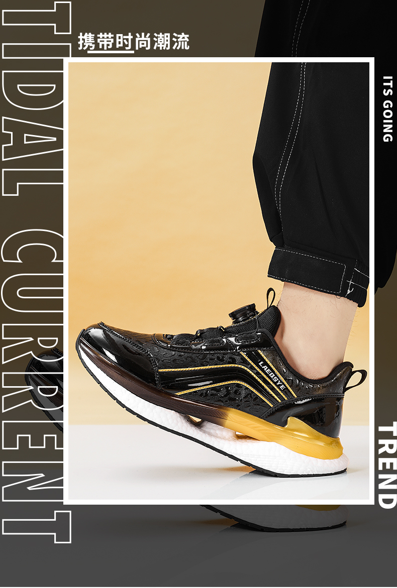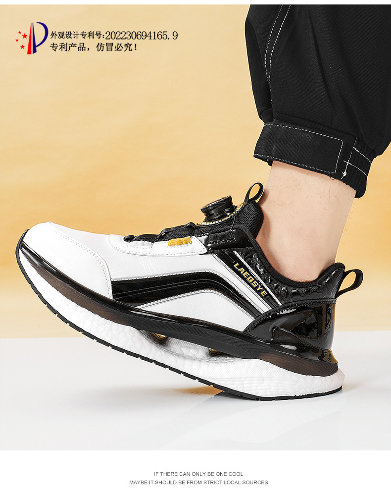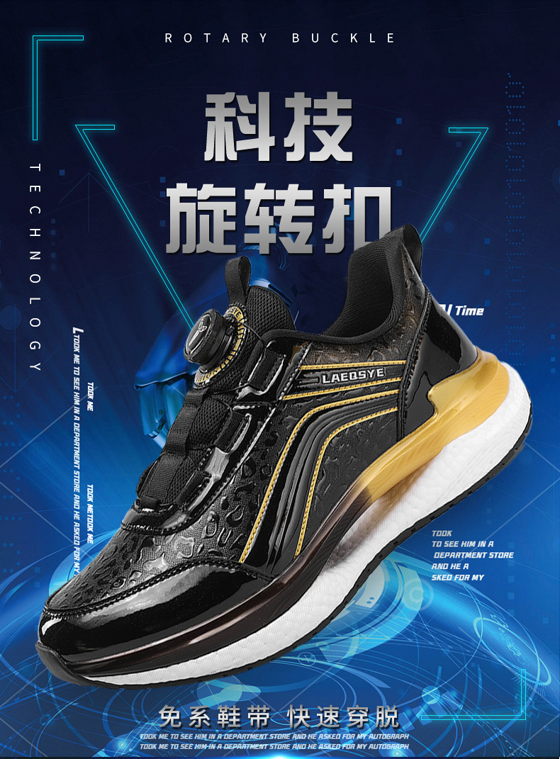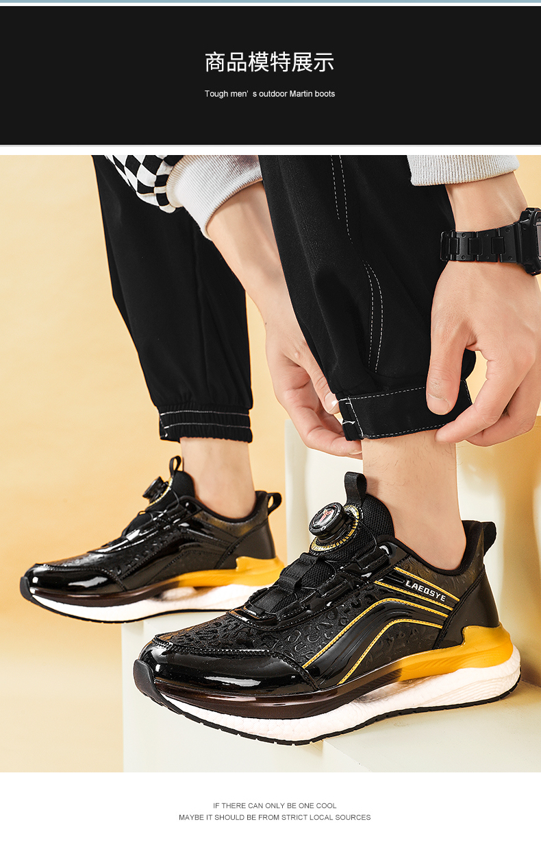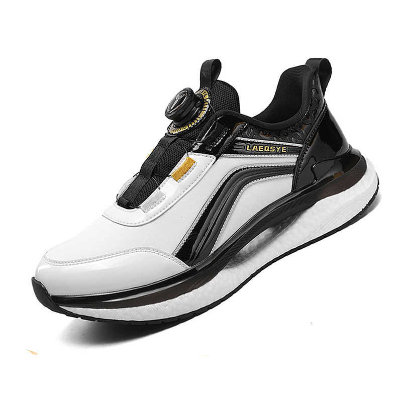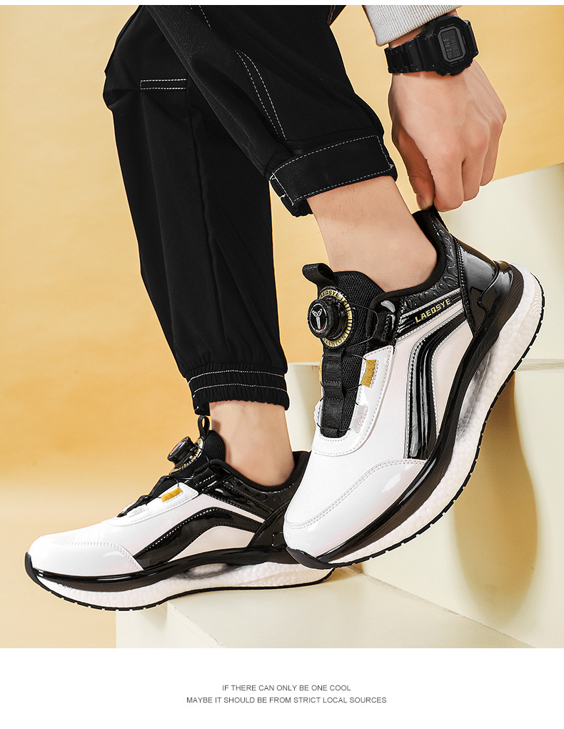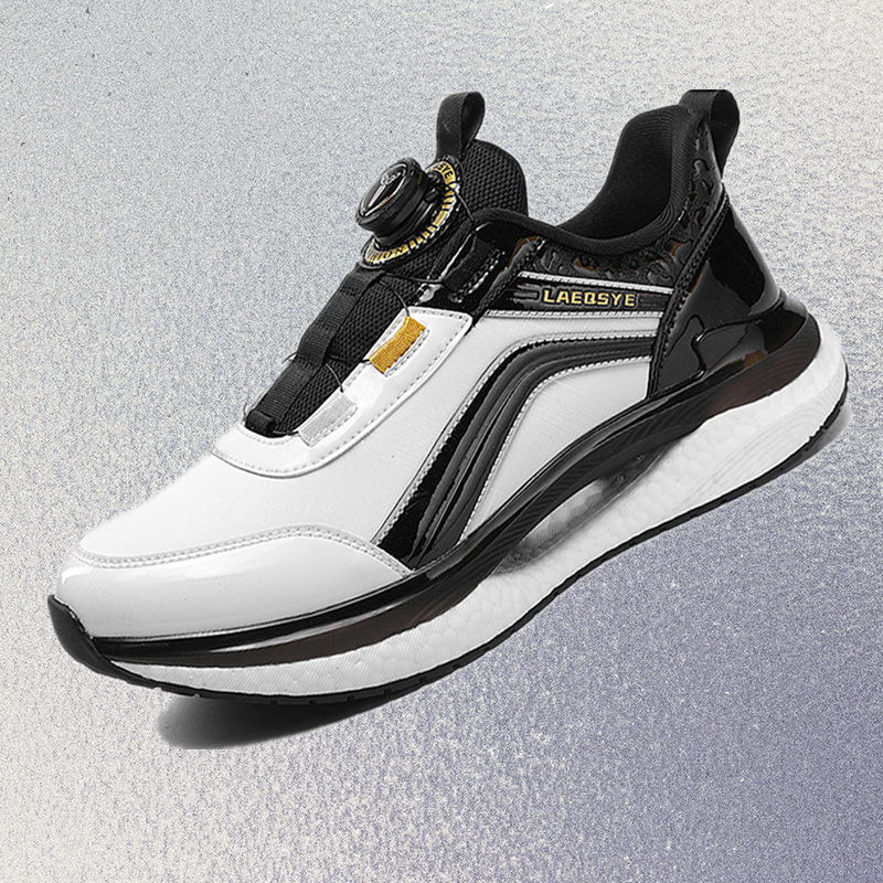 潮牌男鞋夏季皮面運動鞋男旋轉鈕釦免系鞋帶防水防滑軟底跑步鞋男