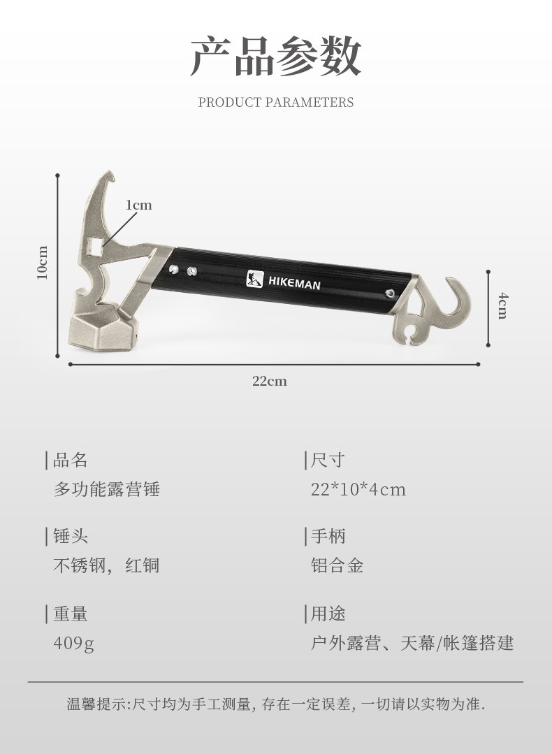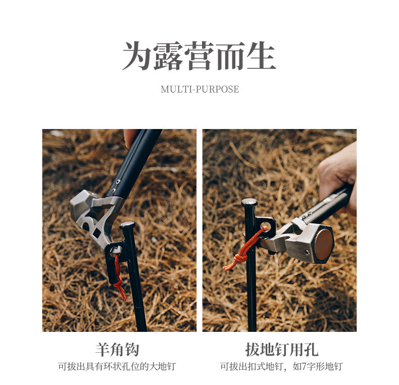 戶外多功能地釘錘露營帳篷鎚子不鏽鋼錘銅頭野營拔釘開瓶器小榔頭