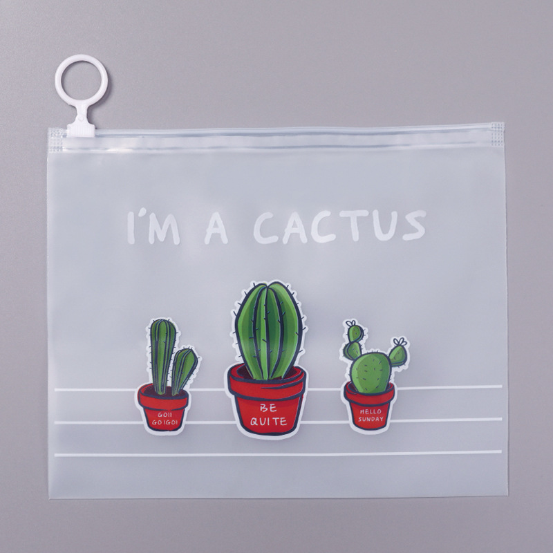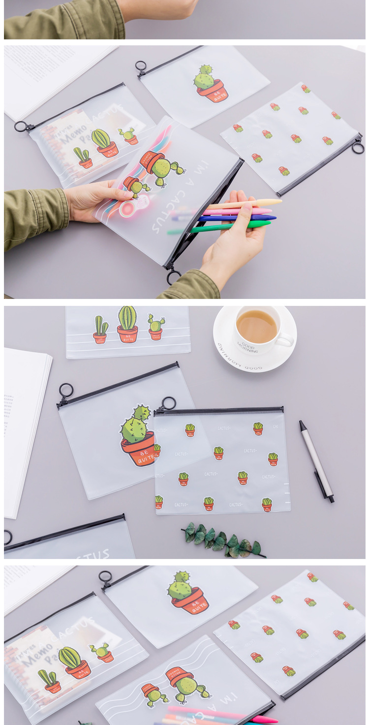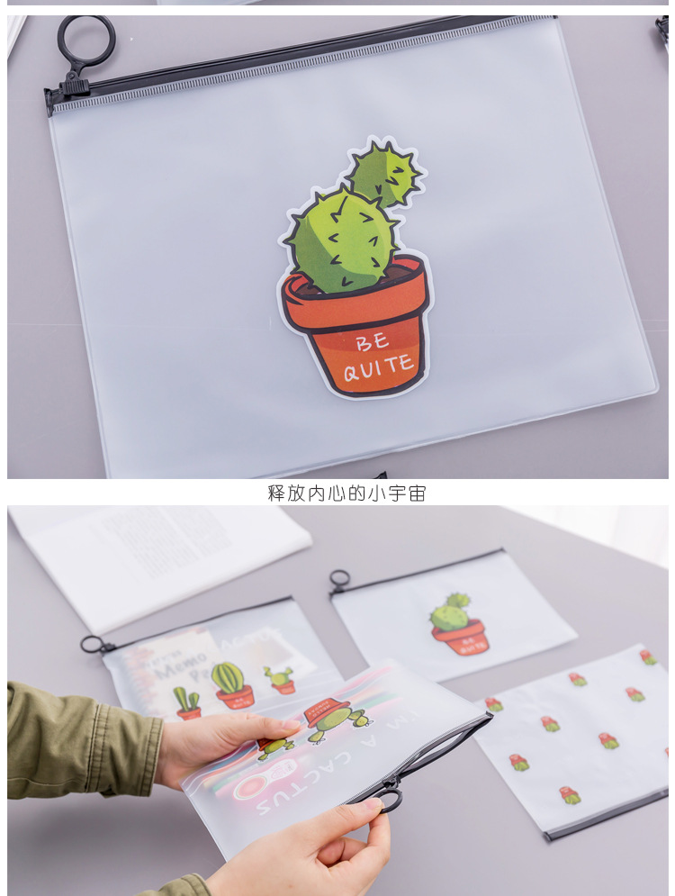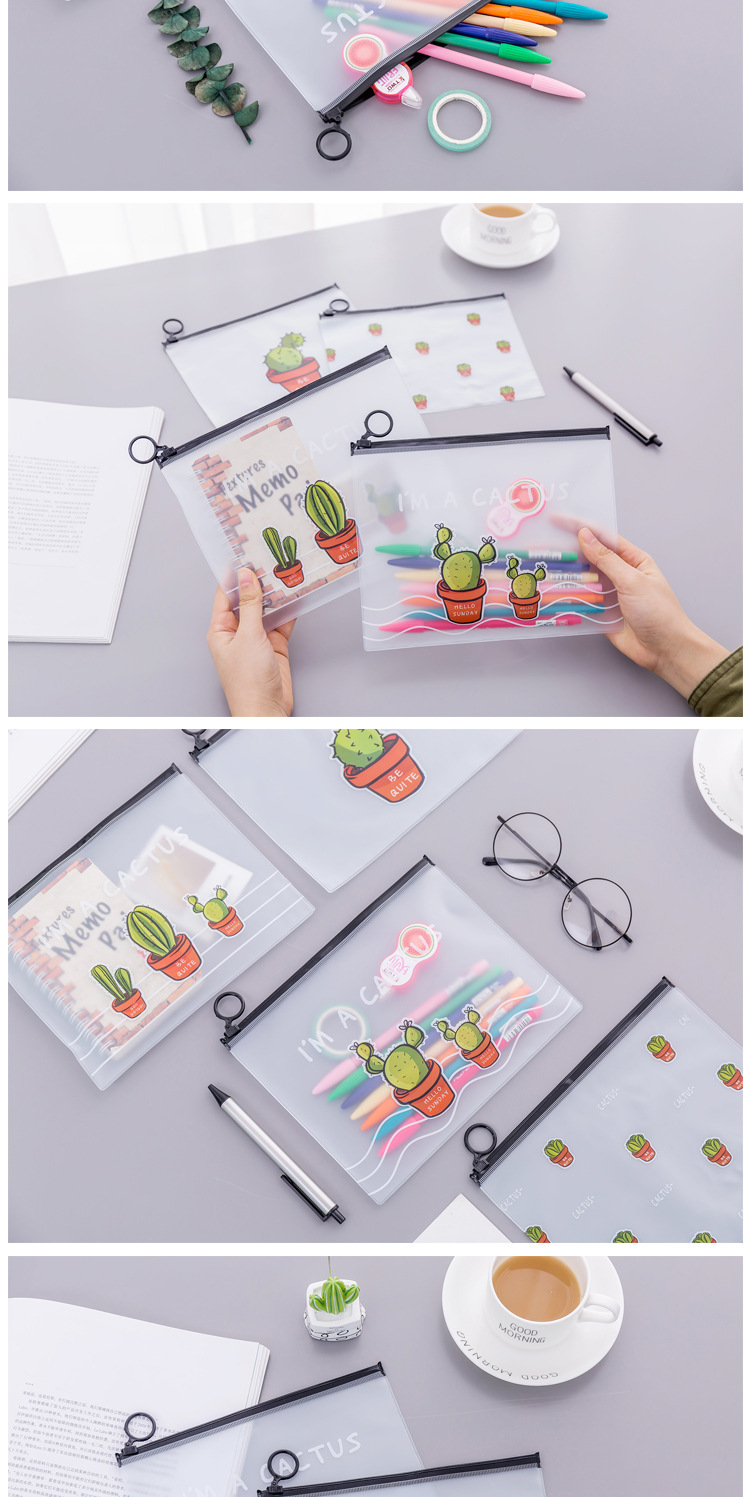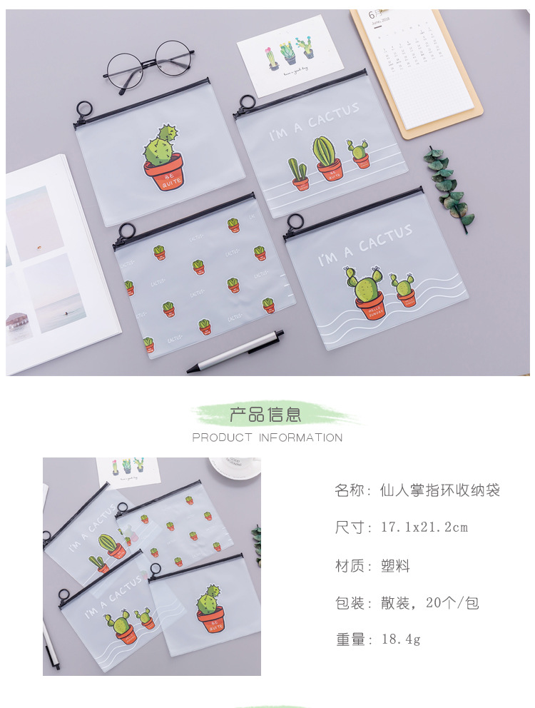 文件袋 小清新透明磨砂仙人掌指环收纳袋 大容量学生文具笔袋