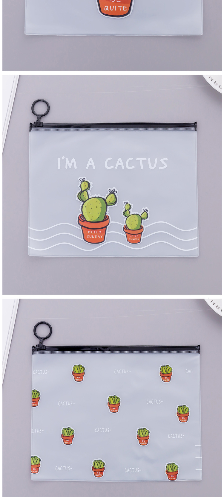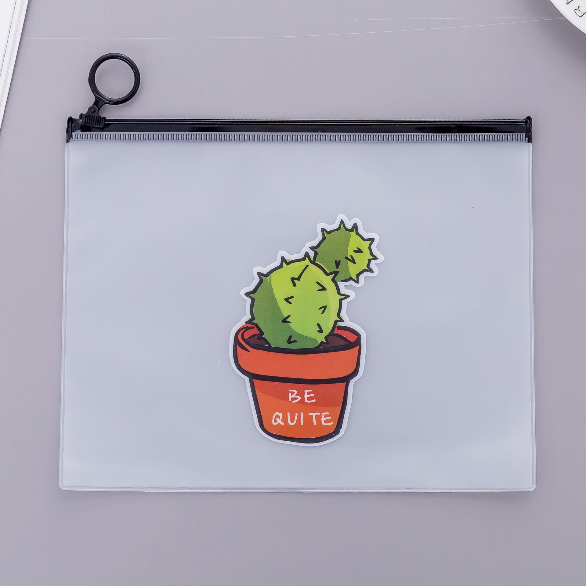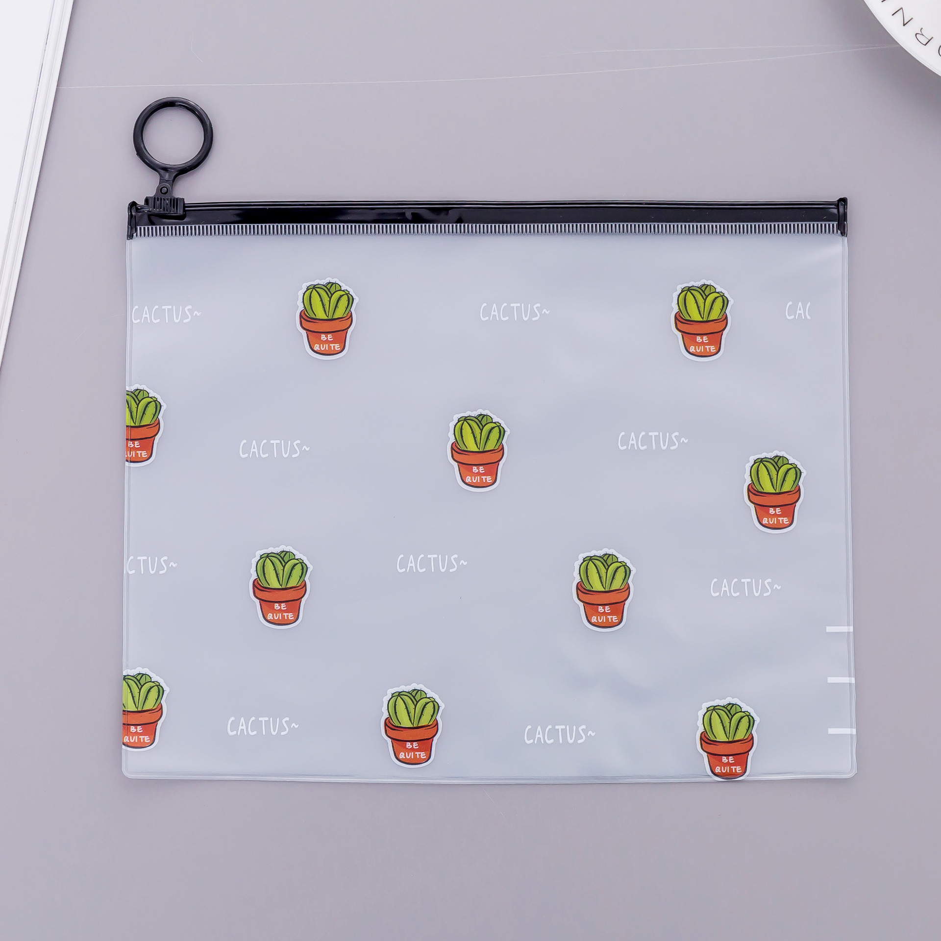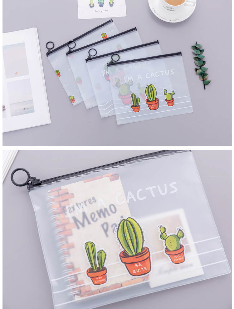 文件袋 小清新透明磨砂仙人掌指环收纳袋 大容量学生文具笔袋
