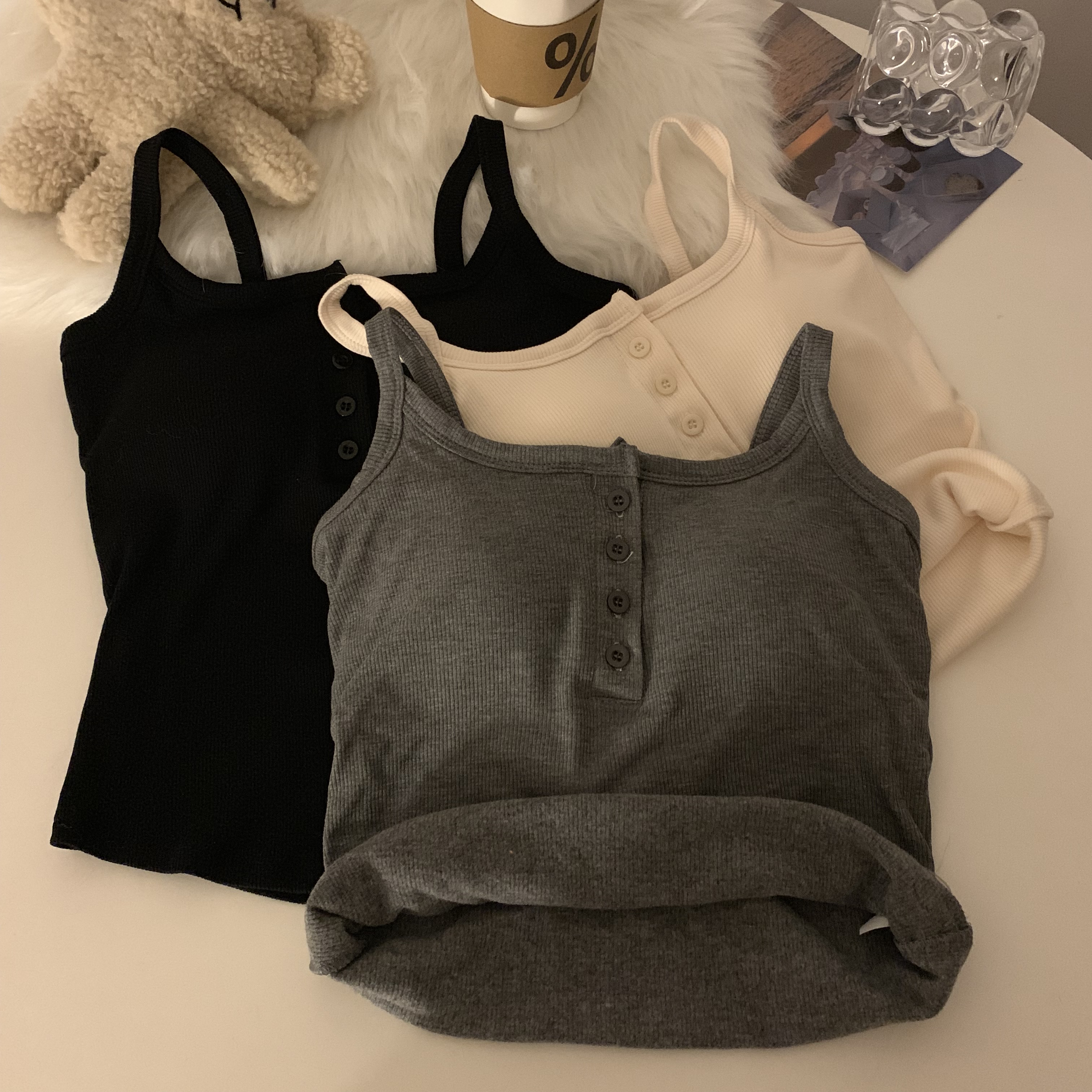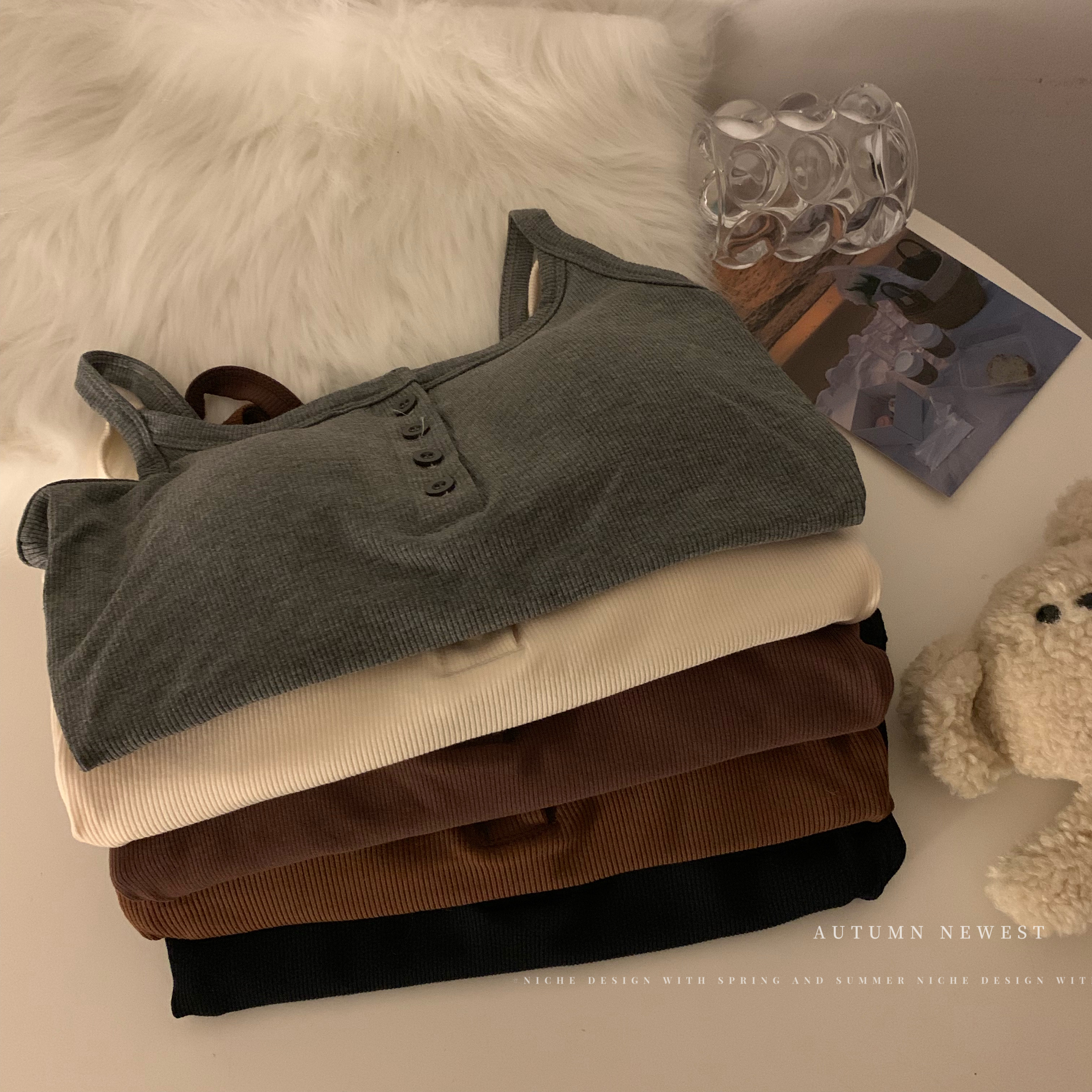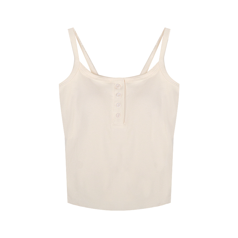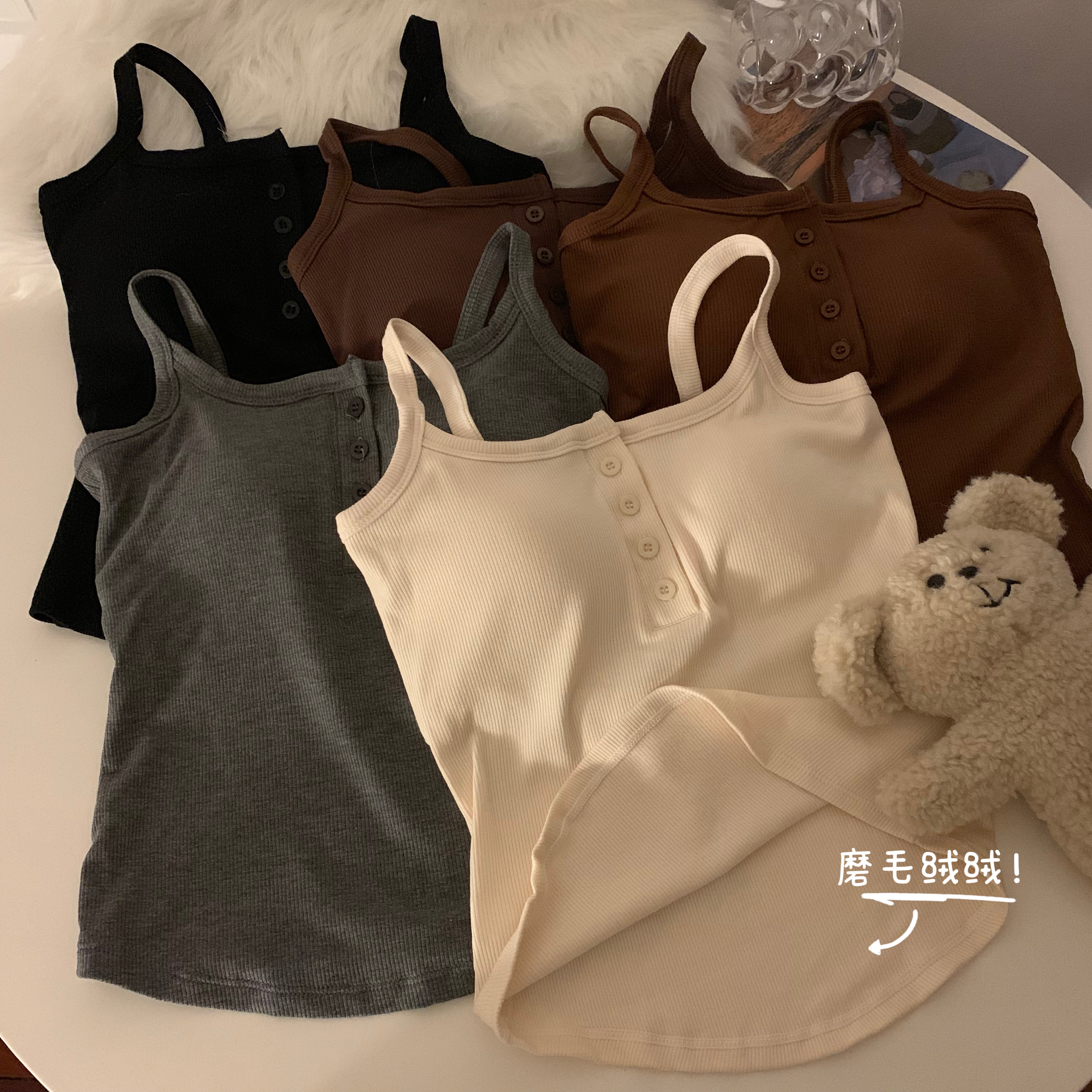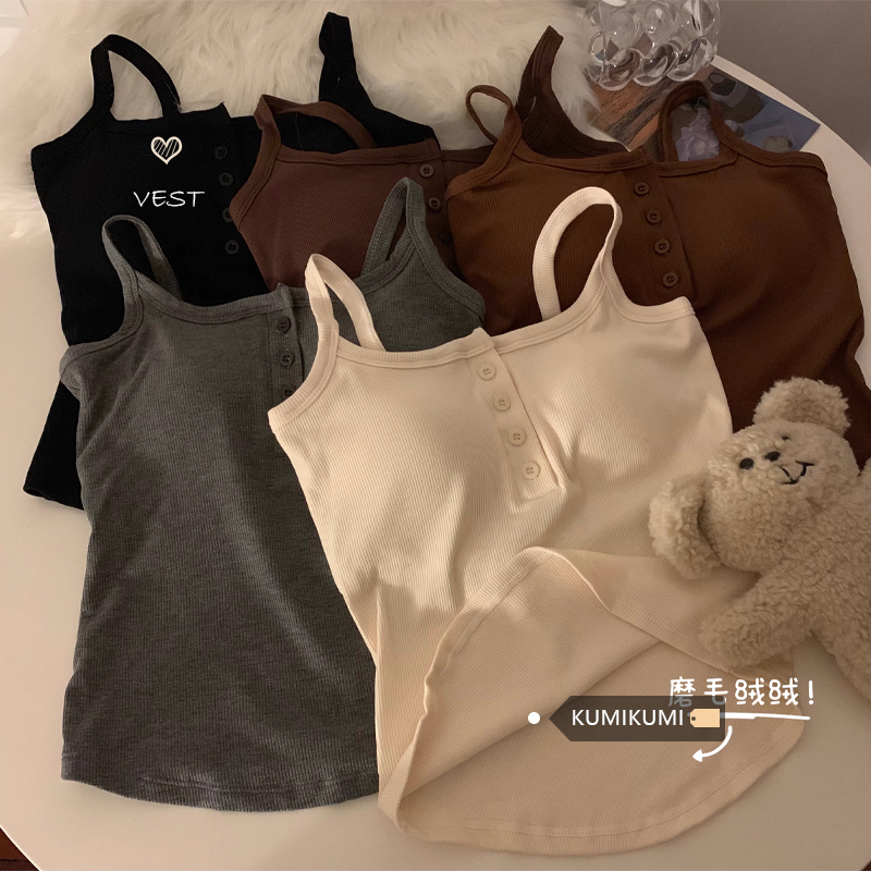 短款帶胸墊杏色吊帶秋季外穿無袖黑色背心女內搭加絨加厚打底上衣