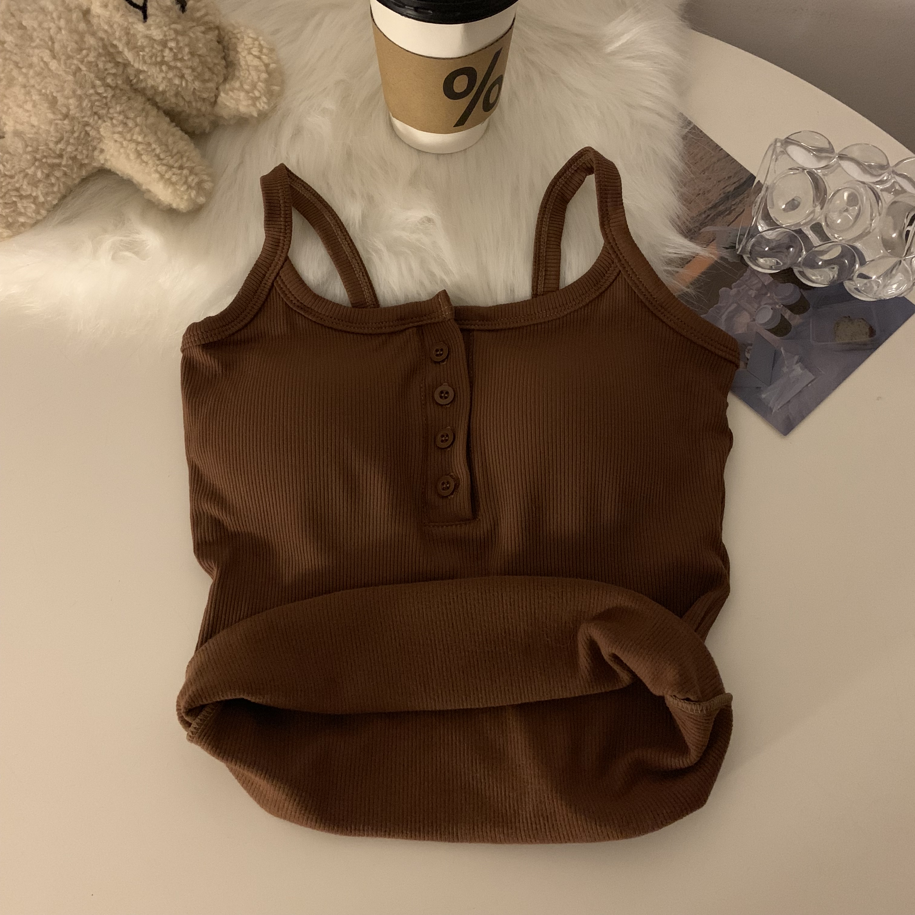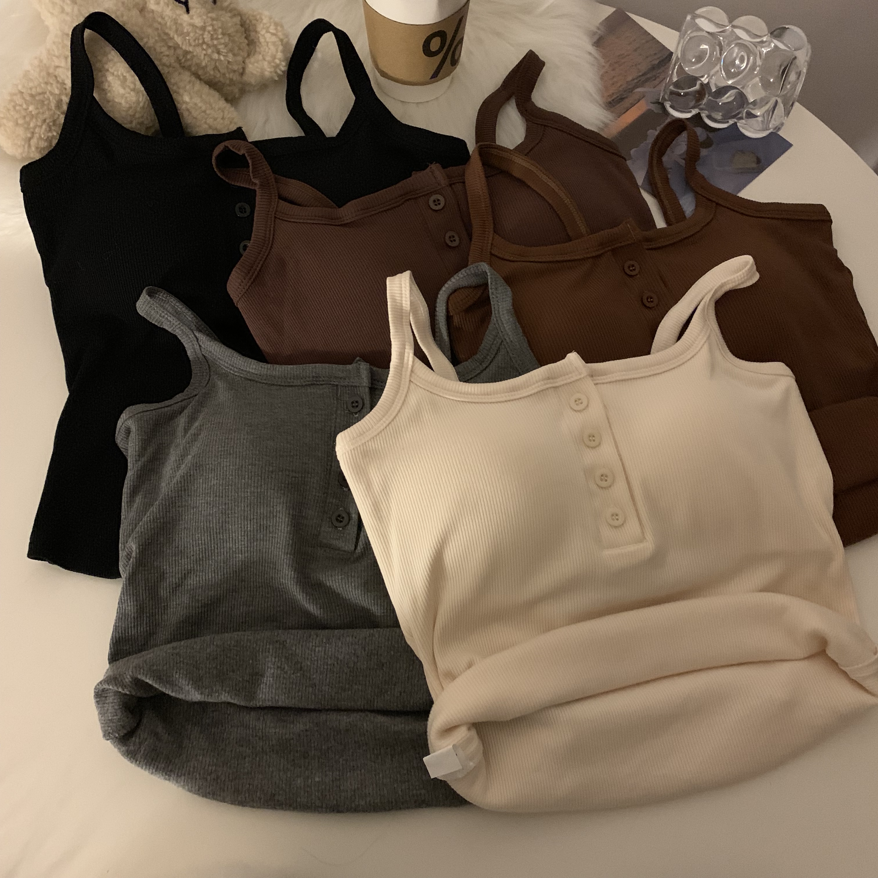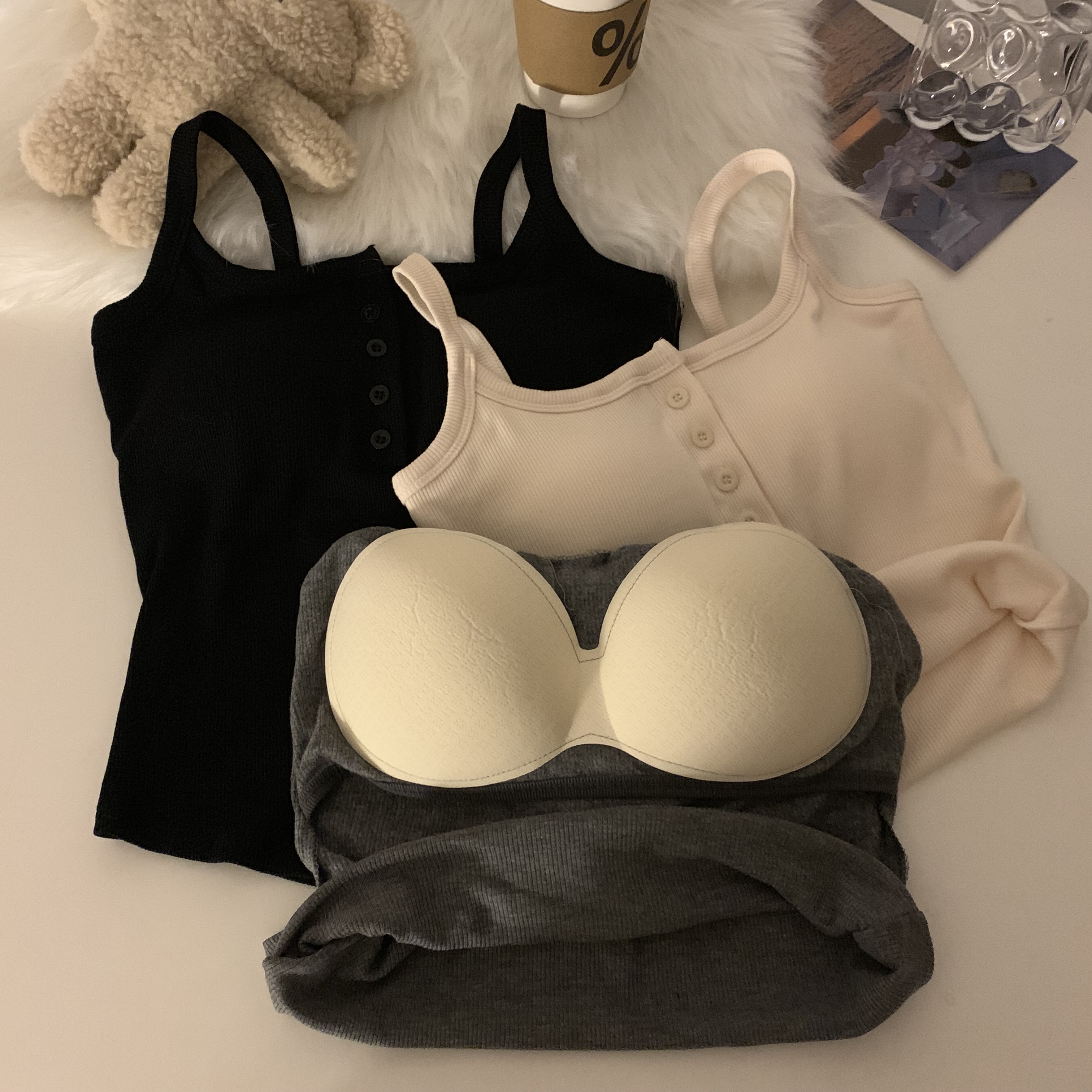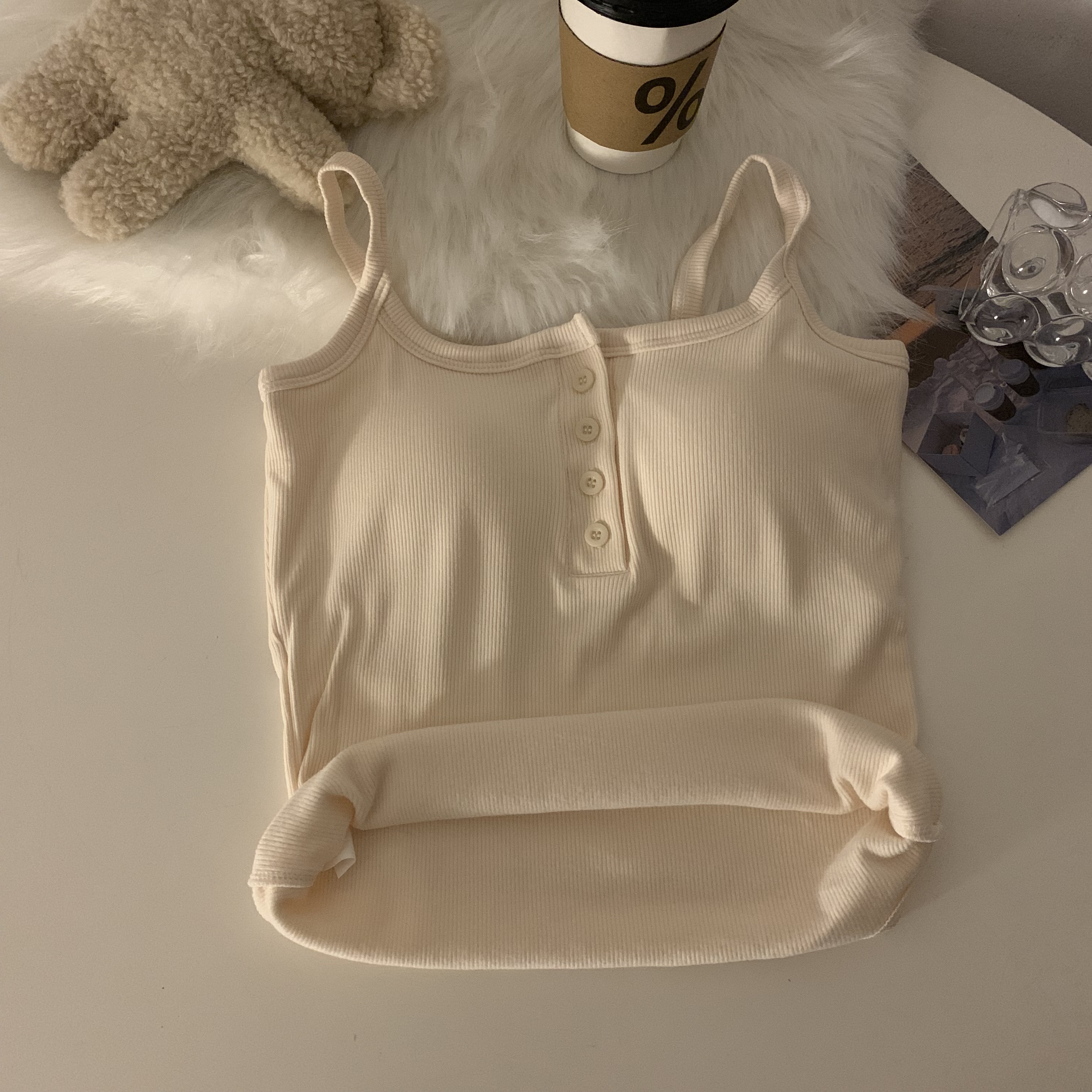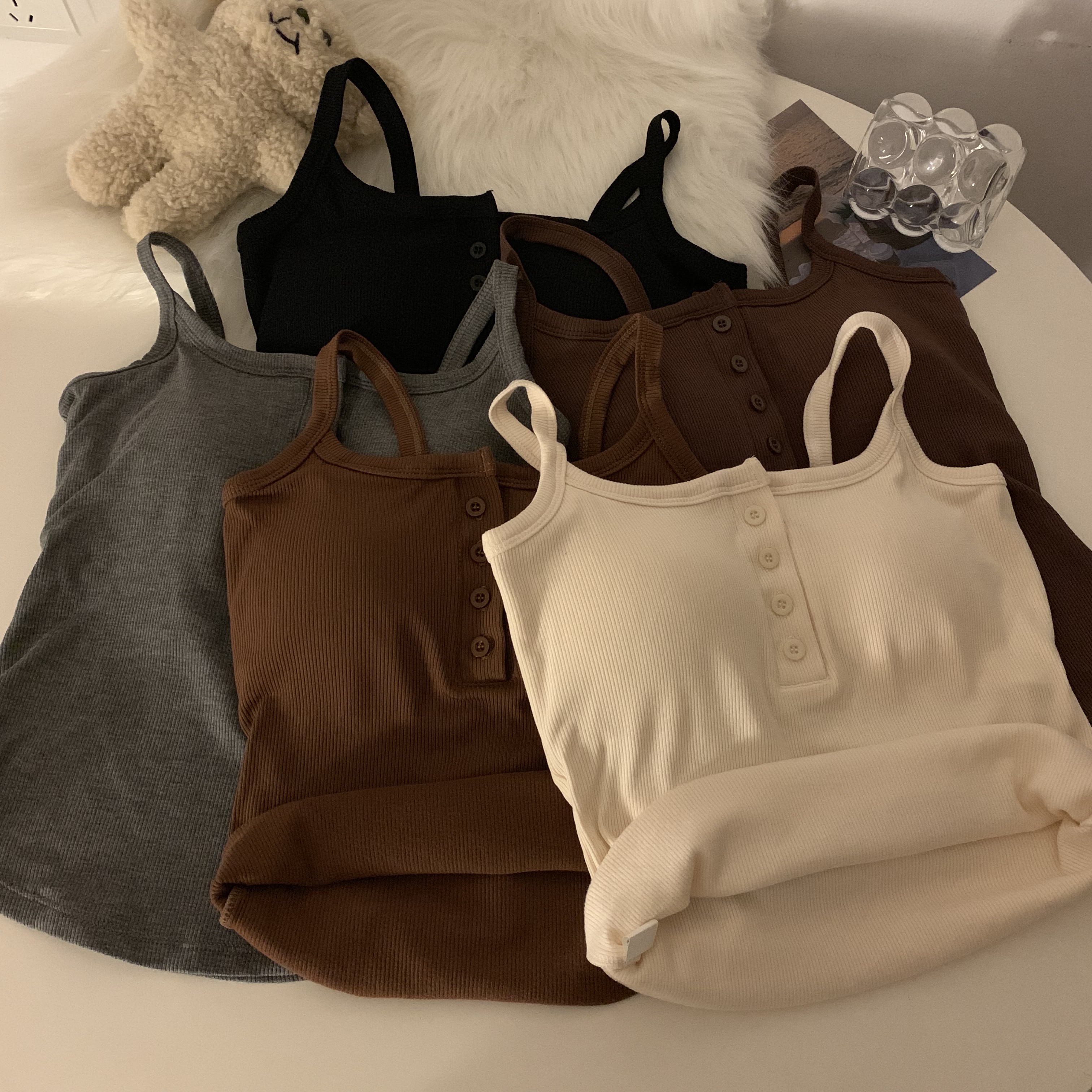 短款帶胸墊杏色吊帶秋季外穿無袖黑色背心女內搭加絨加厚打底上衣