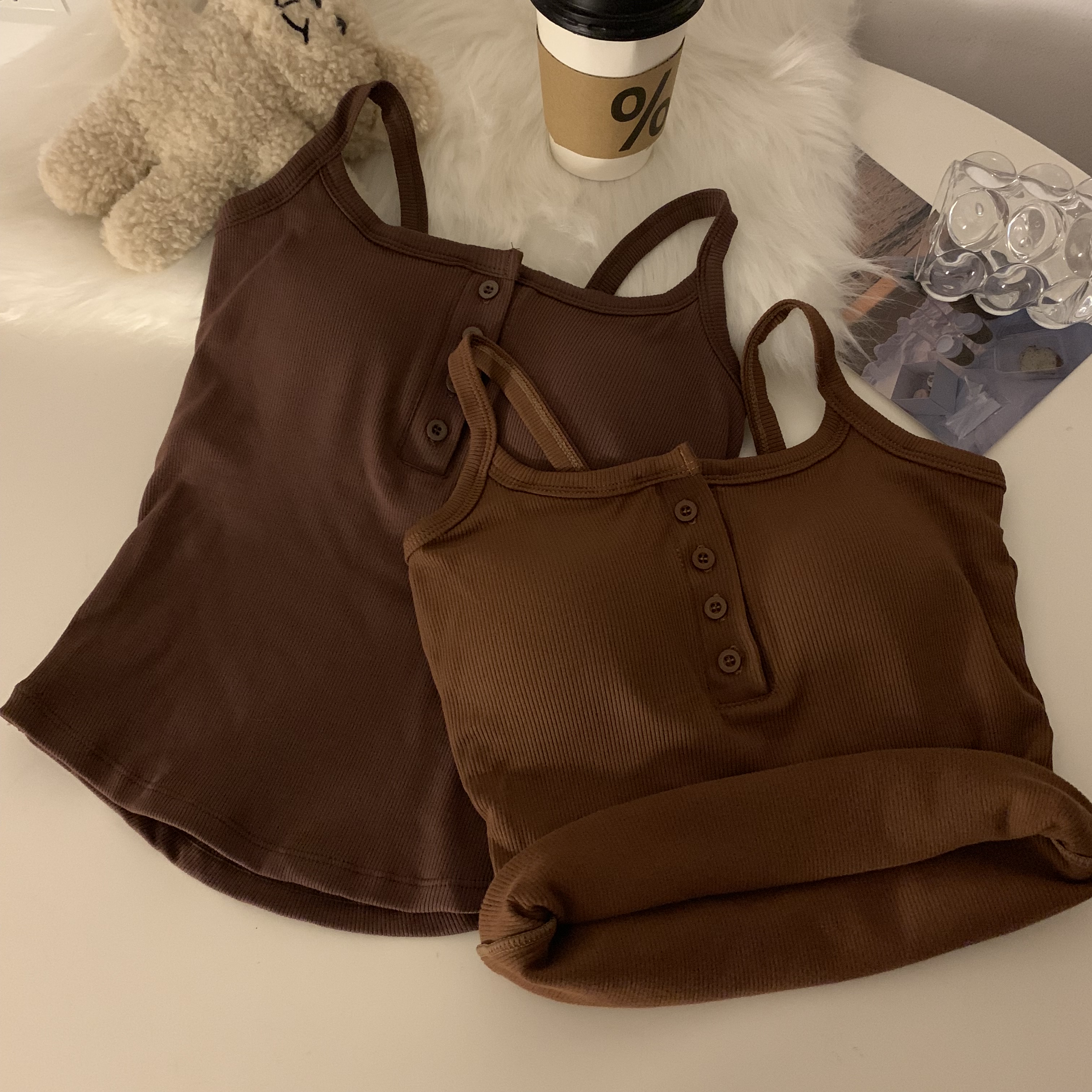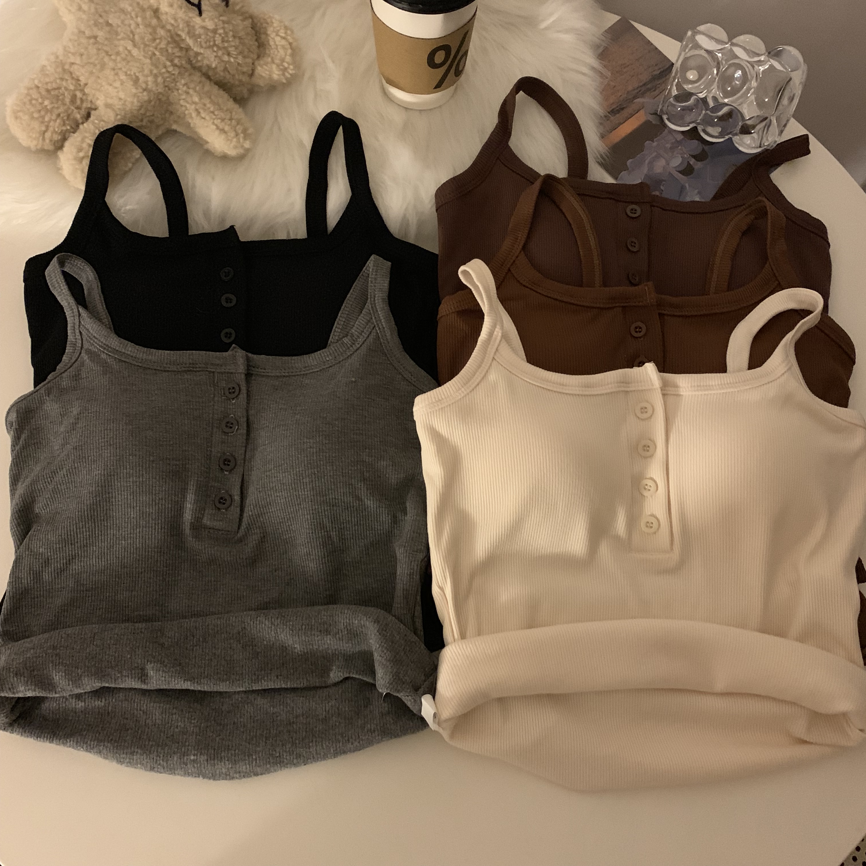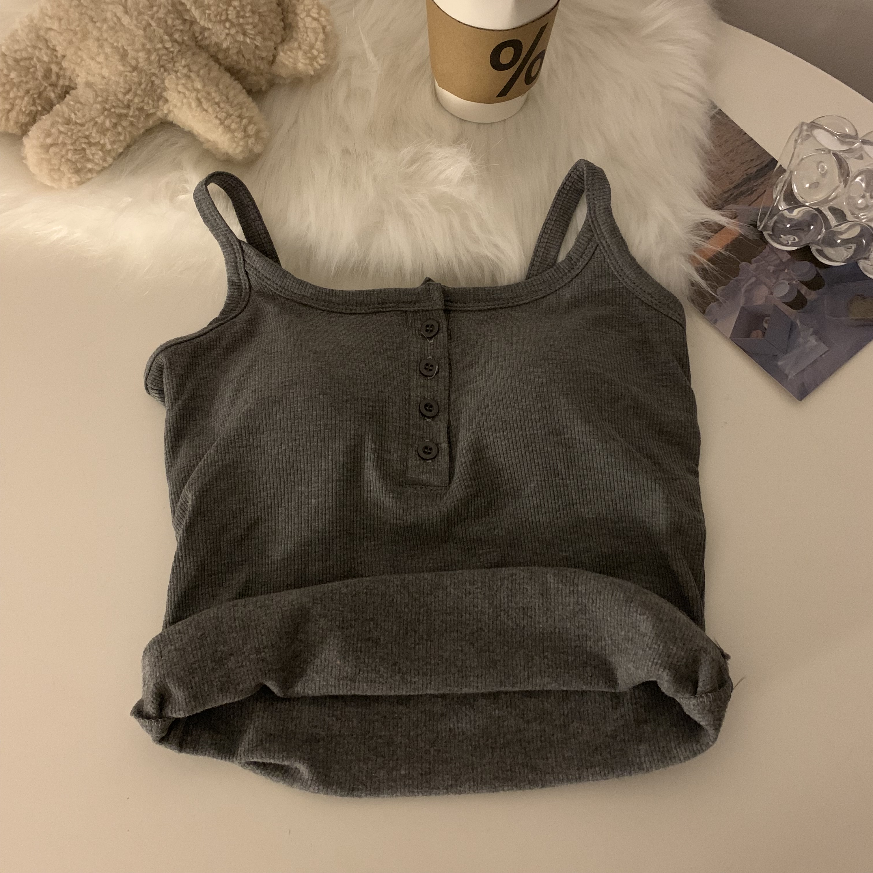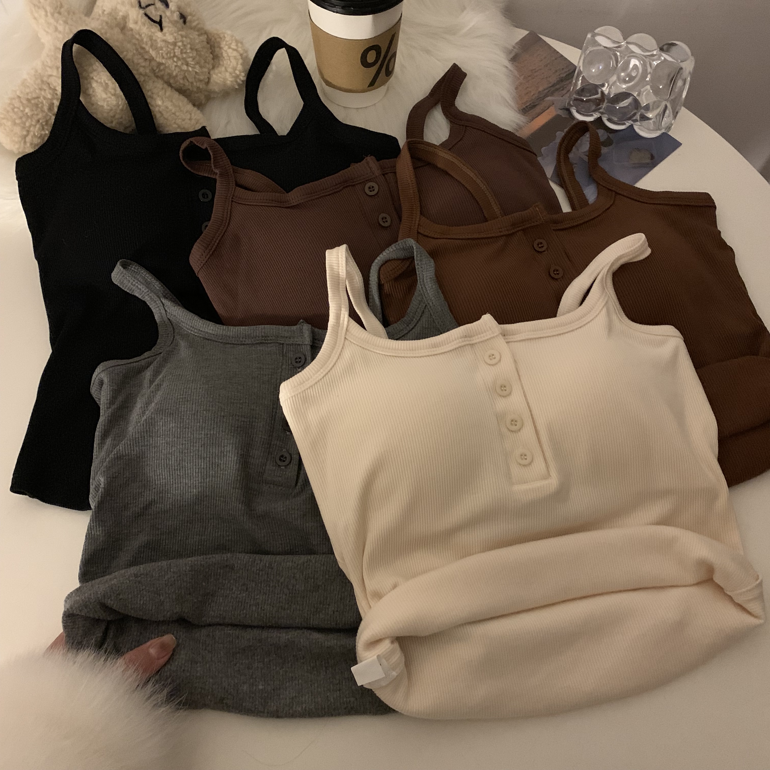 短款帶胸墊杏色吊帶秋季外穿無袖黑色背心女內搭加絨加厚打底上衣
