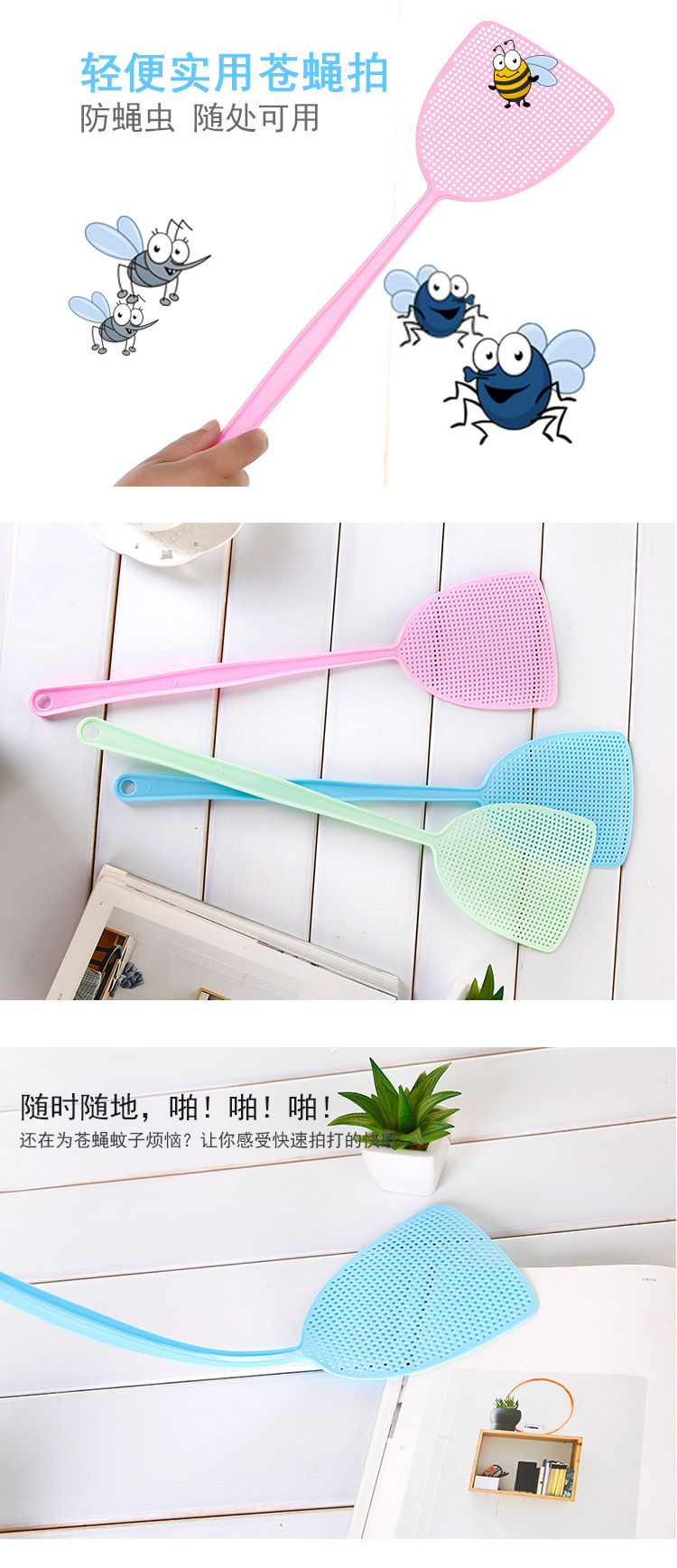 大号苍蝇拍 手动打蚊子塑料拍加长加厚家用灭蚊拍厨房灭蝇神器