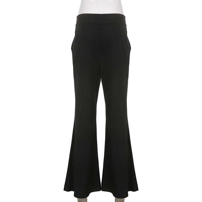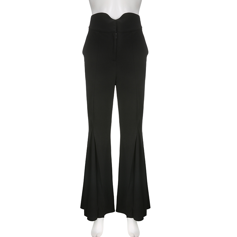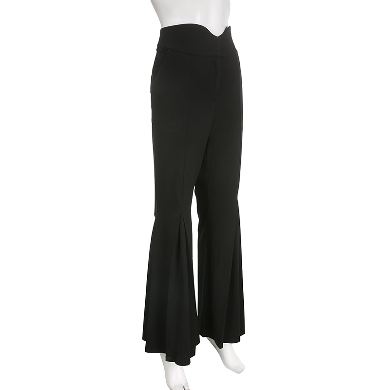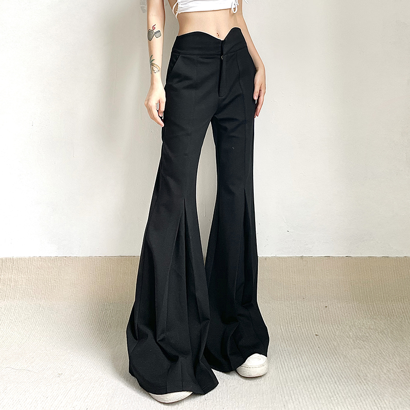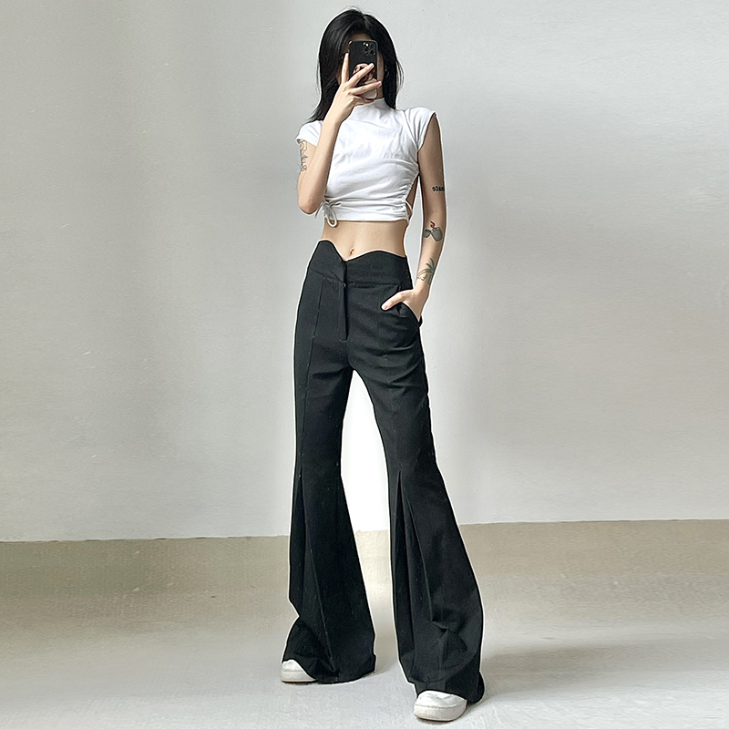 WEEKEEP設計感微喇V型腰頭垂感褶皺休閒長褲女百搭修身顯瘦拖地褲