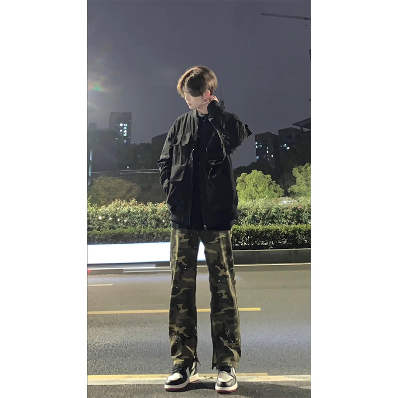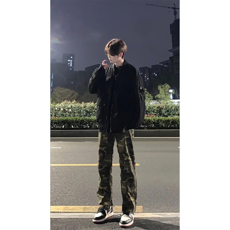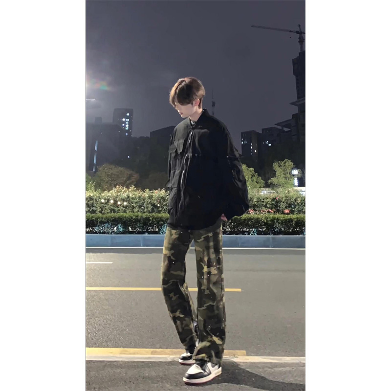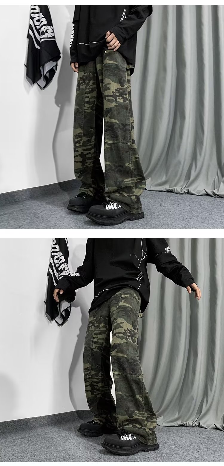 歐美hiphop褲子男款美式復古拼接迷彩工裝褲高街vibe風潮牌直筒褲