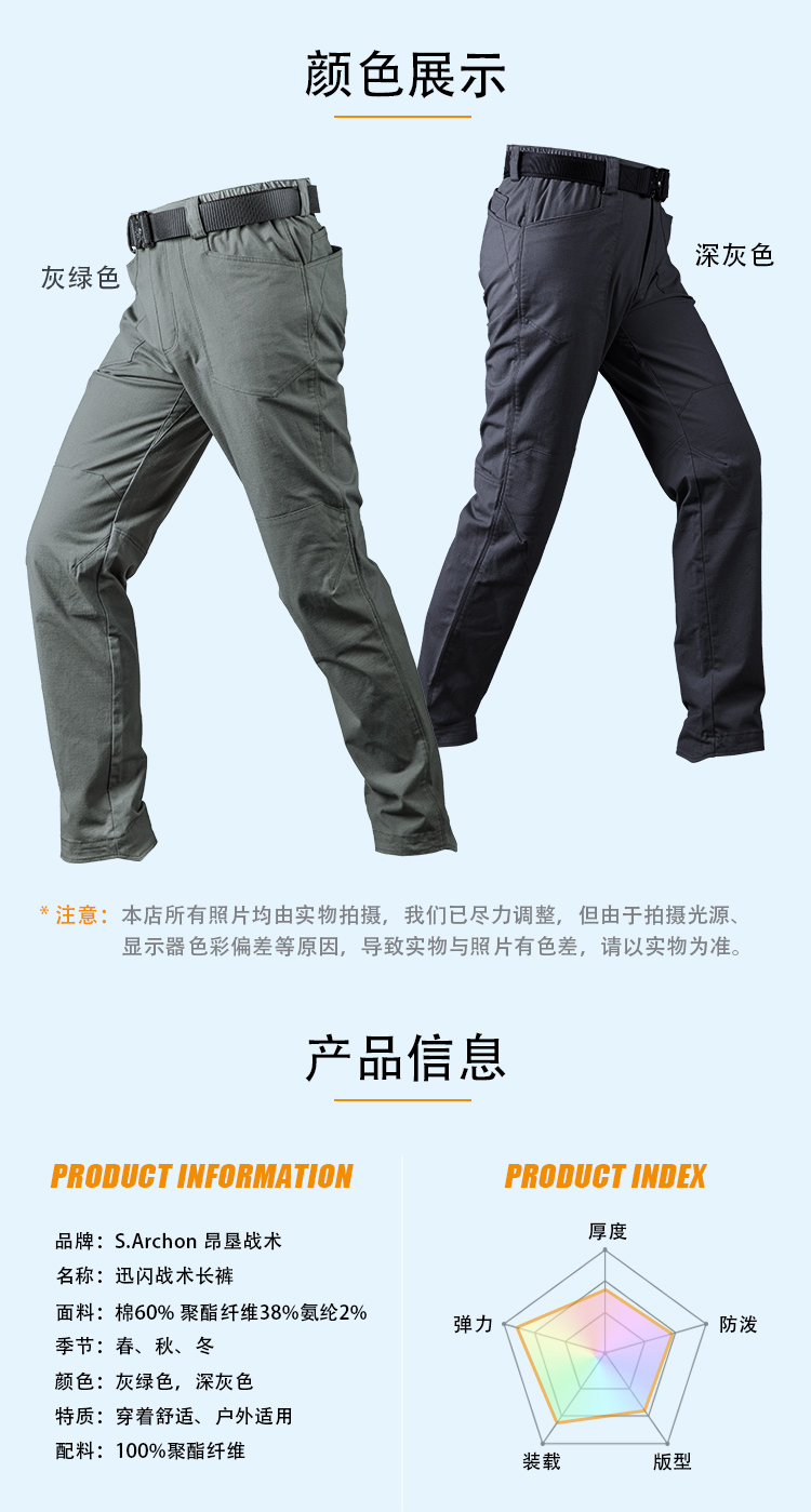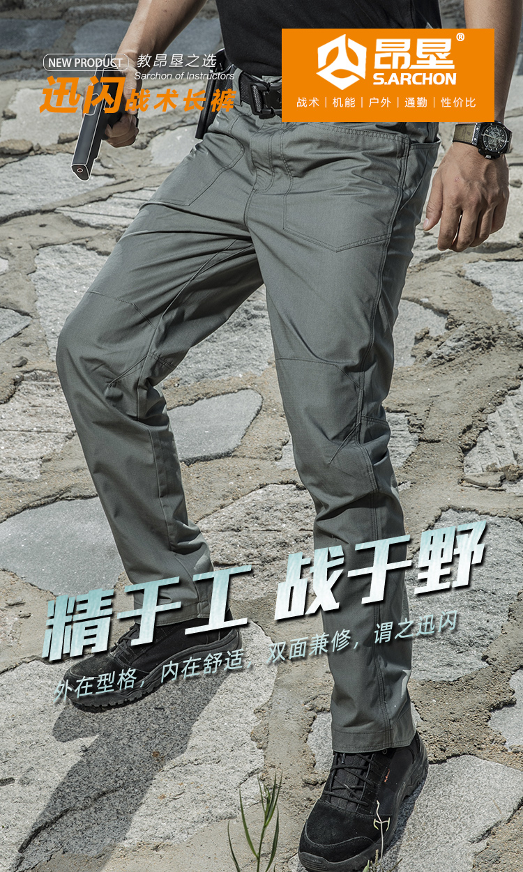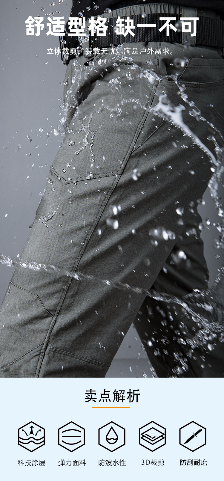 迅閃戶外衝鋒褲男彈力純棉耐磨透氣工裝戰術褲休閒運動防水登山褲