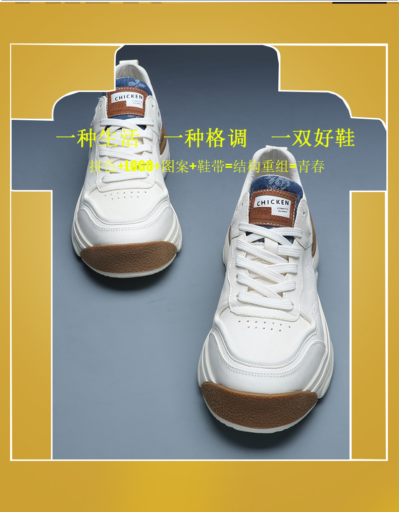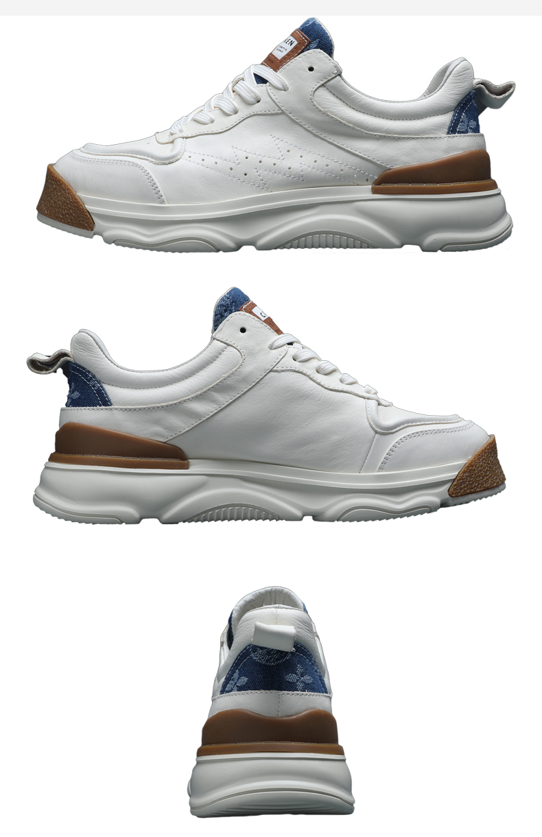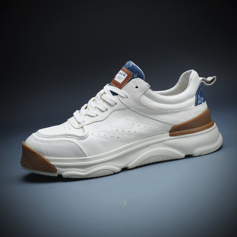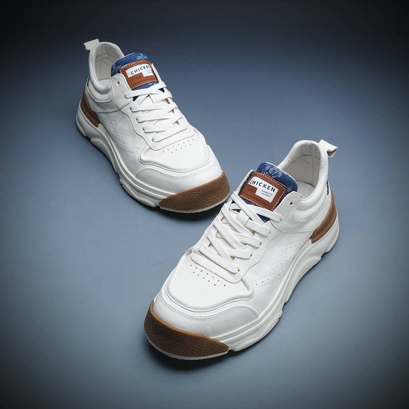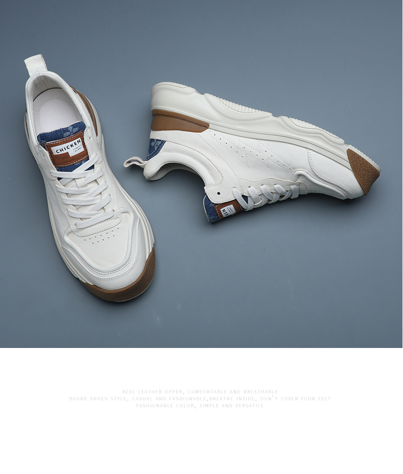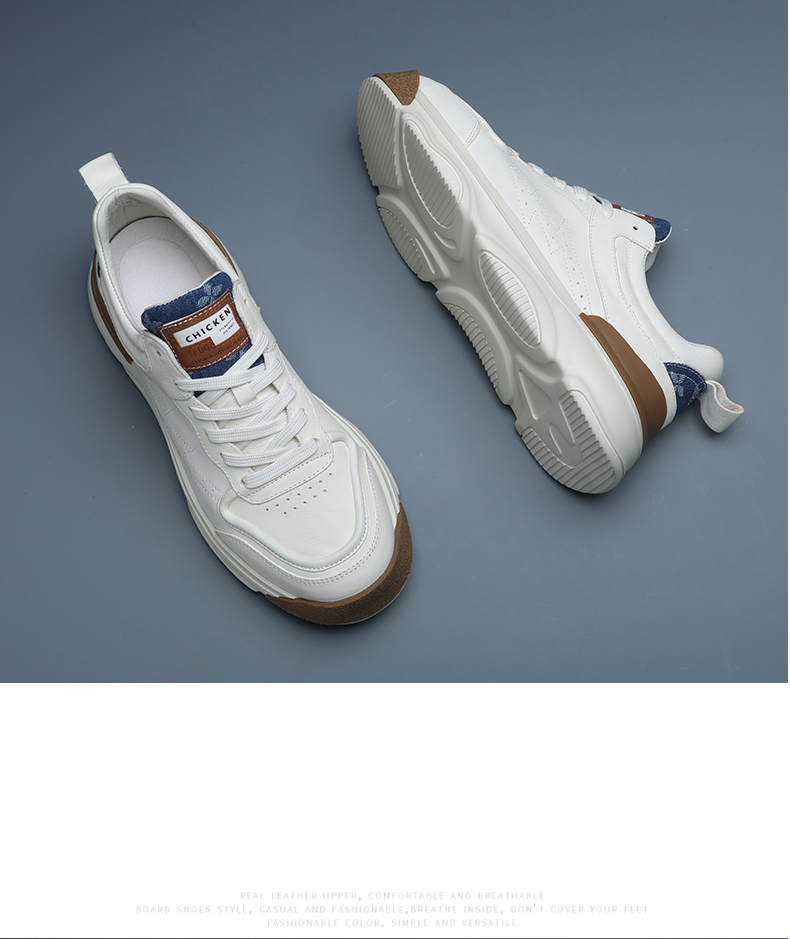 男士小白鞋真皮百搭厚底休閒鞋2023年新款春秋拼色潮牌運動老爹鞋