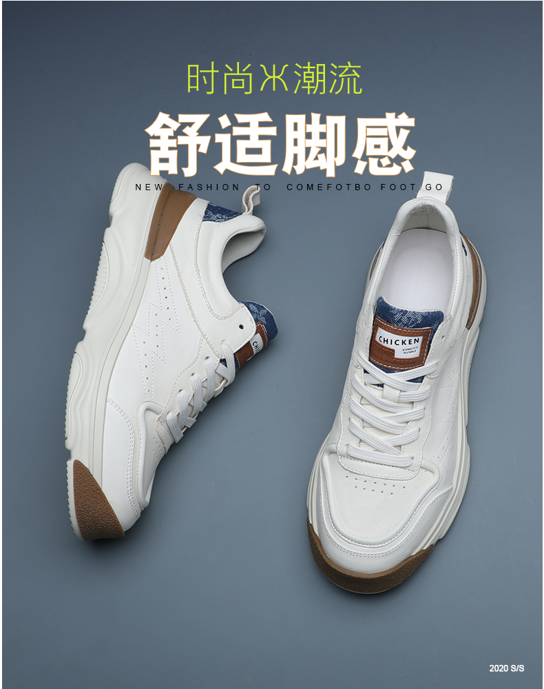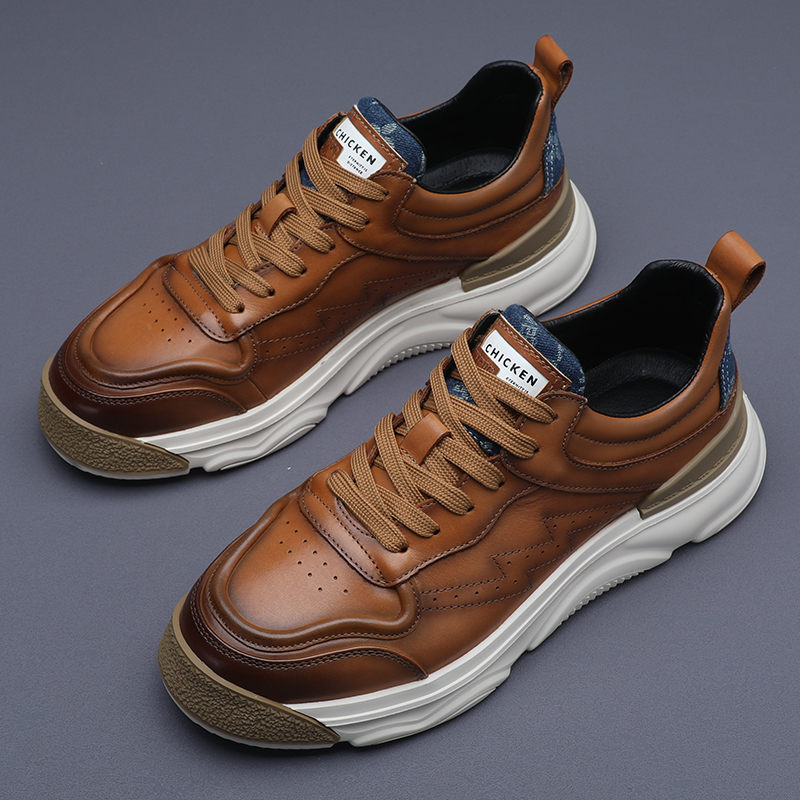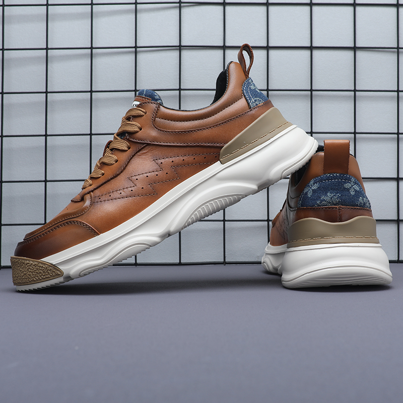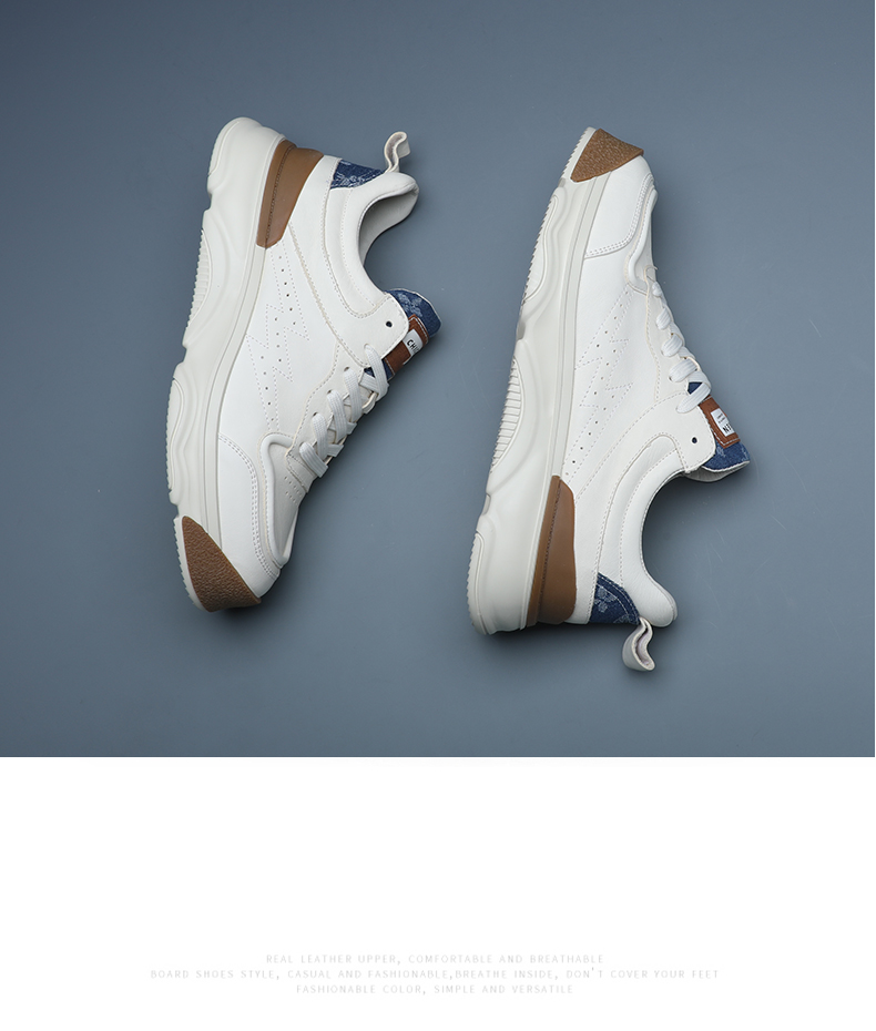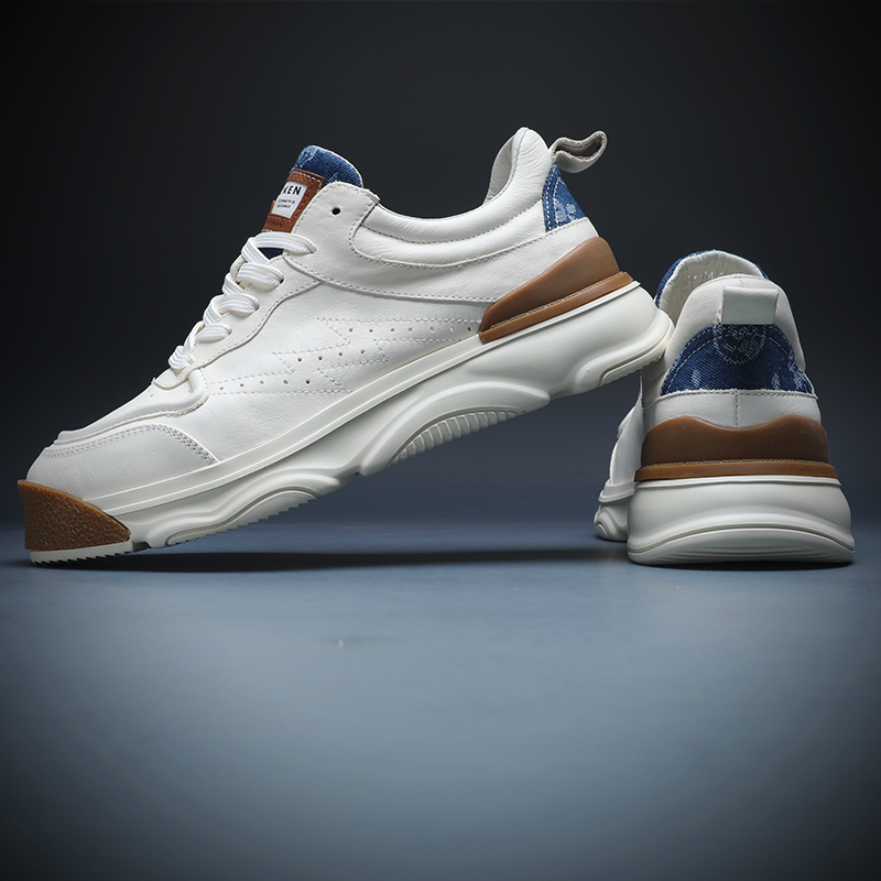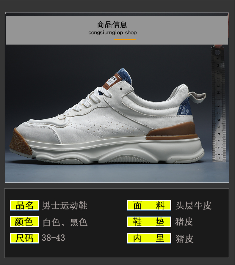 男士小白鞋真皮百搭厚底休閒鞋2023年新款春秋拼色潮牌運動老爹鞋