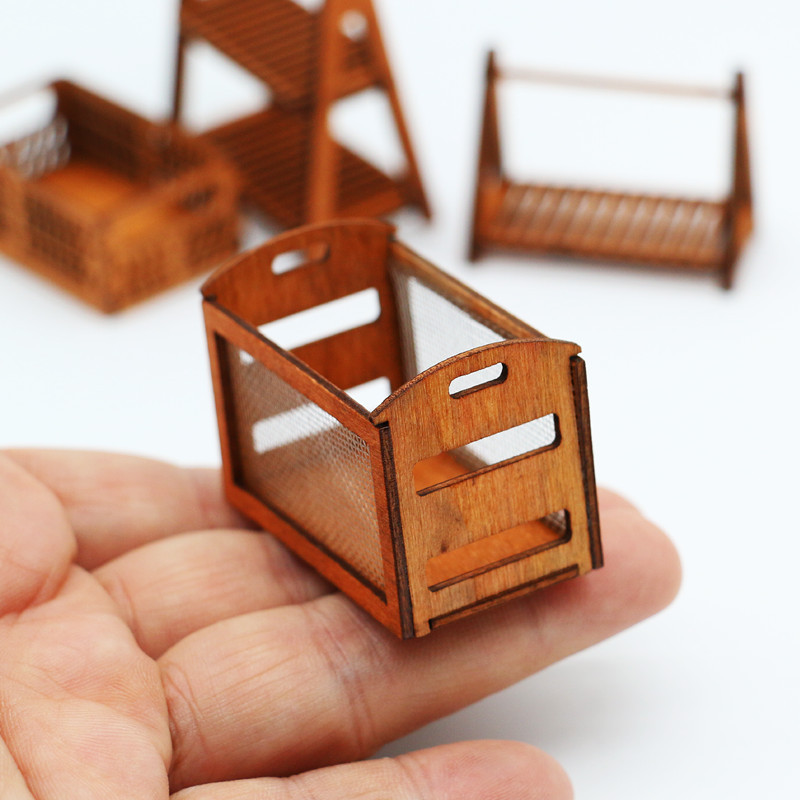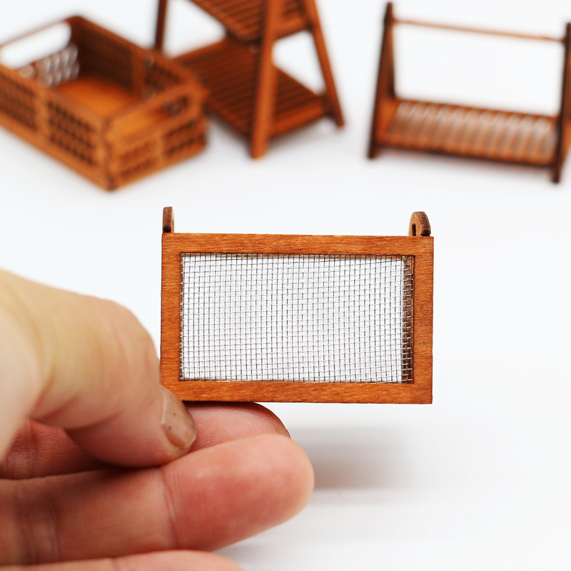 Dollhouse娃娃屋迷你镂空木框铁网置物框模型配件微缩场景装摆件