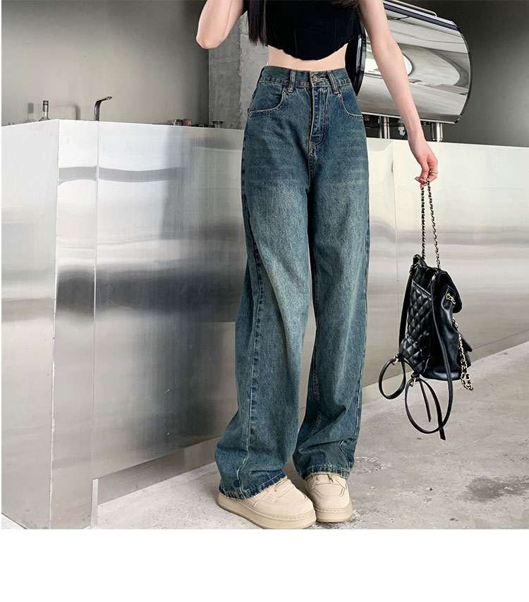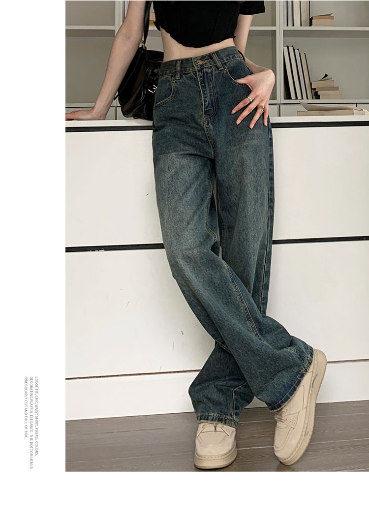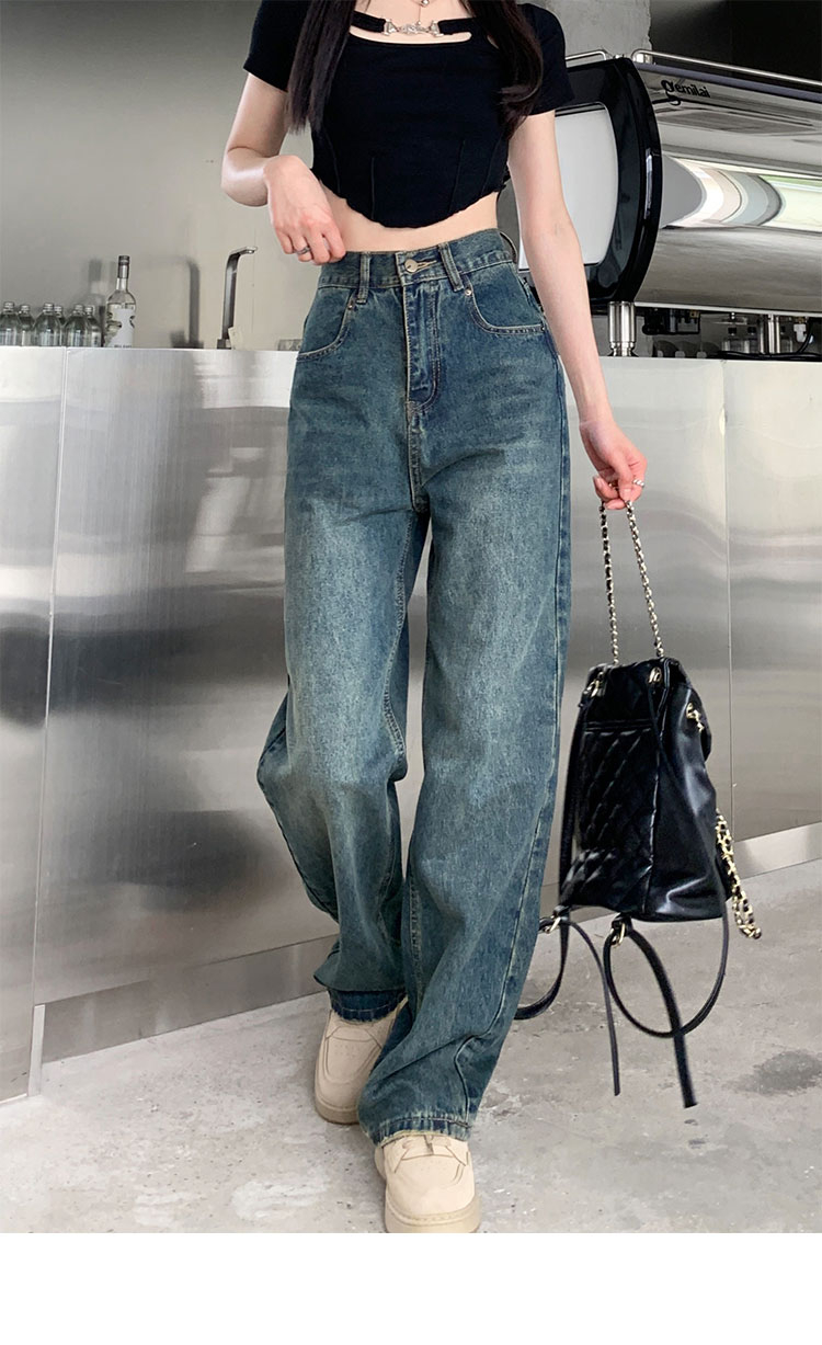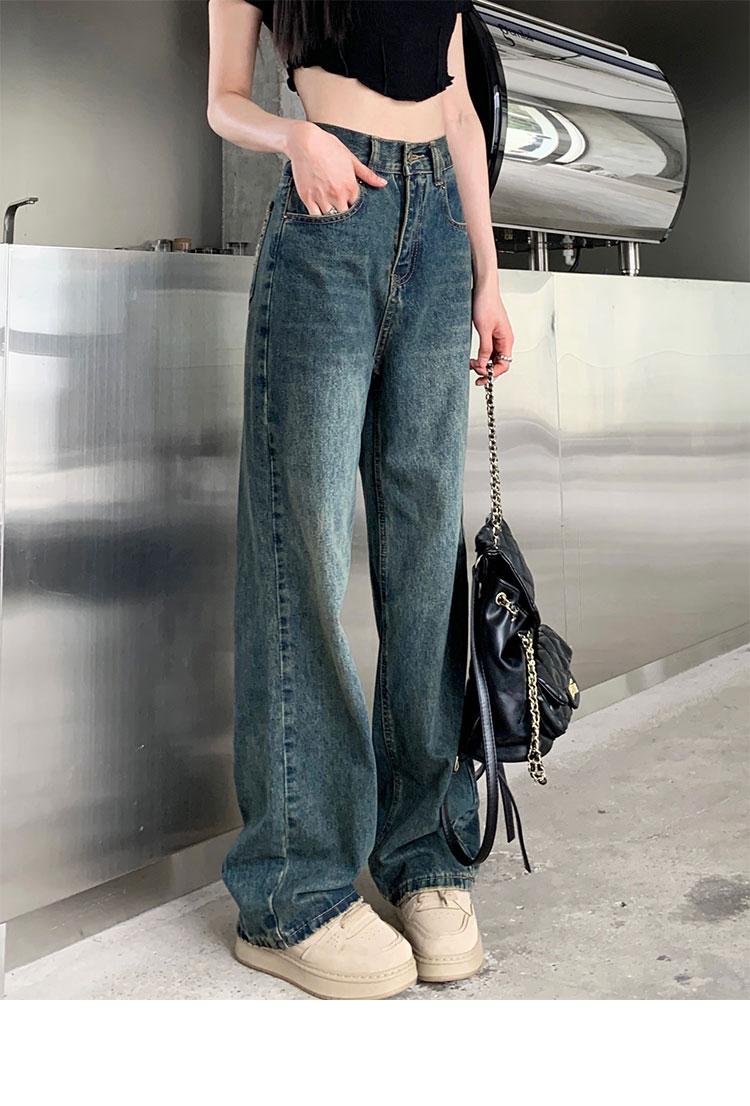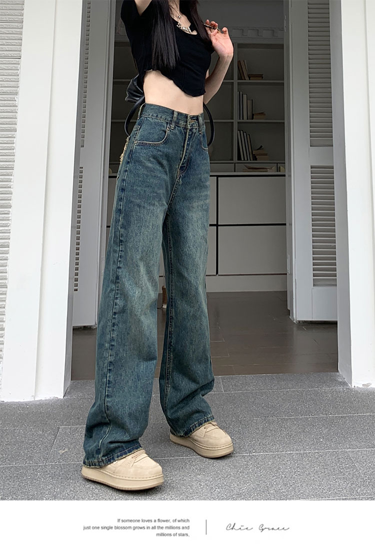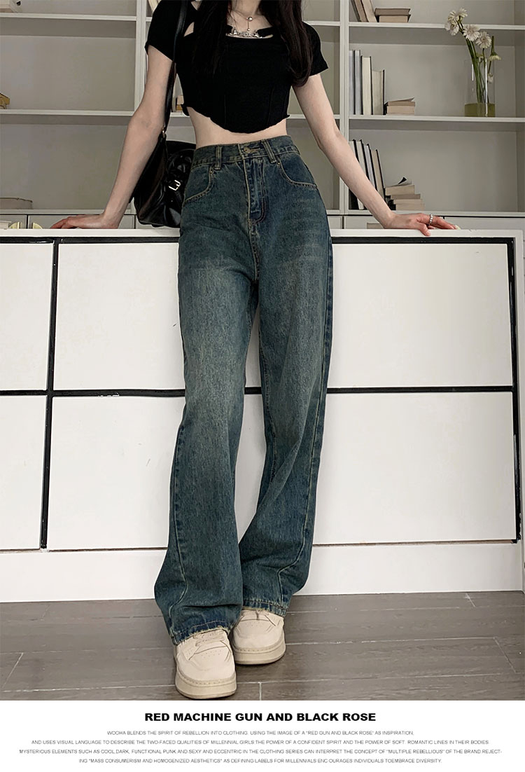 窄版闊腿牛仔褲女春秋款2023新款高腰垂感顯瘦撞色小個子直筒褲子