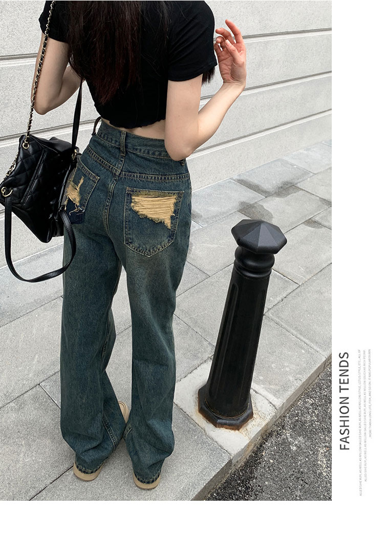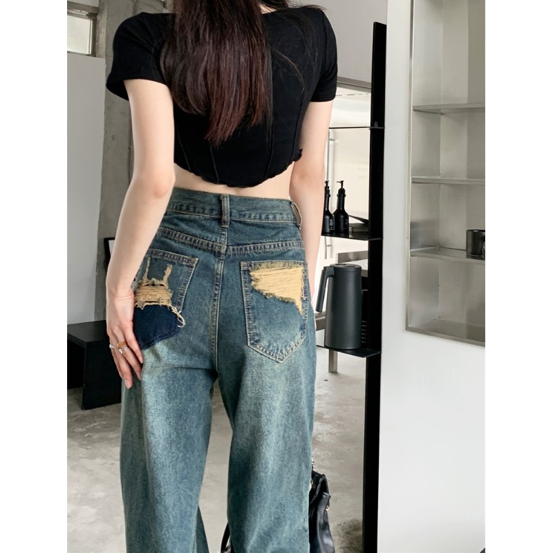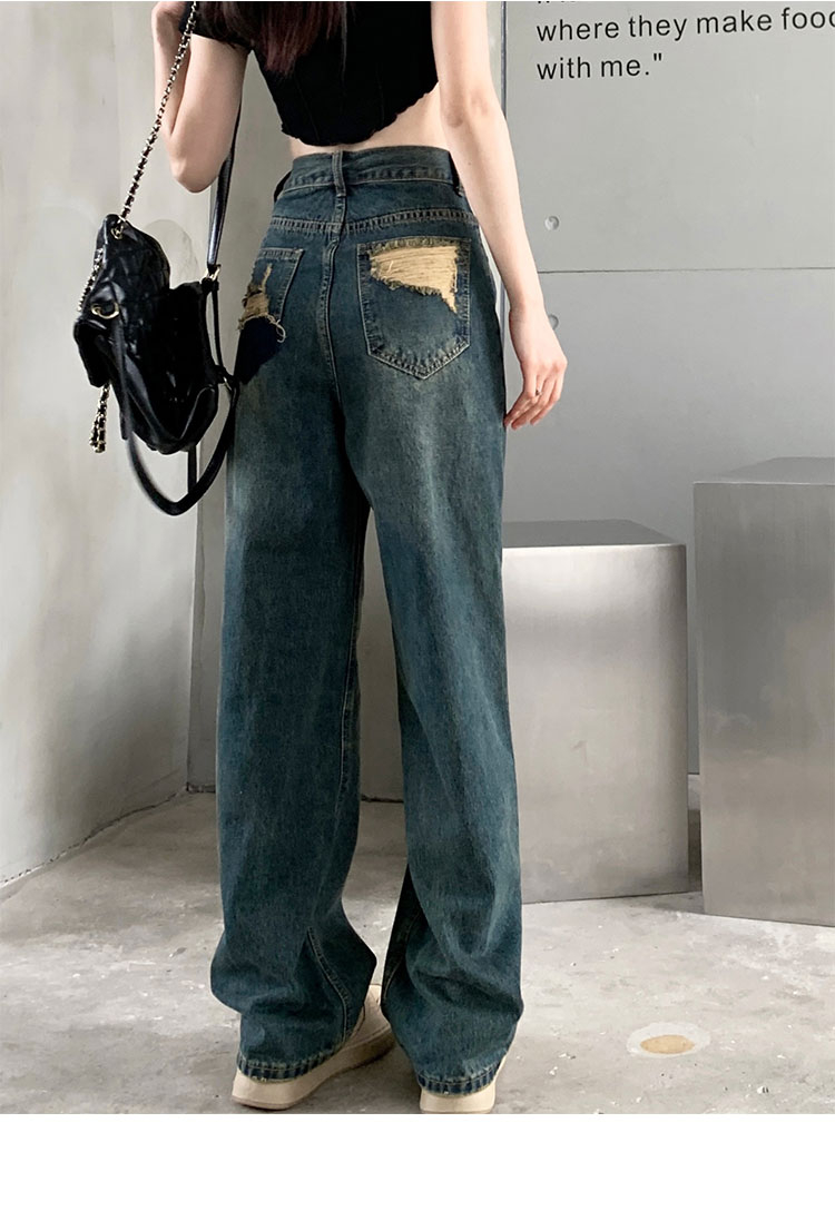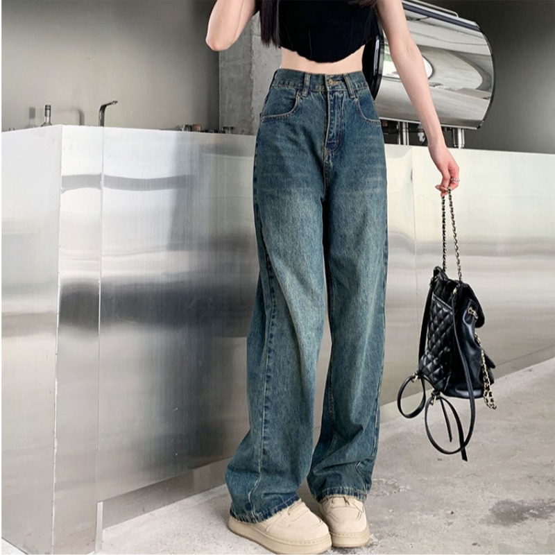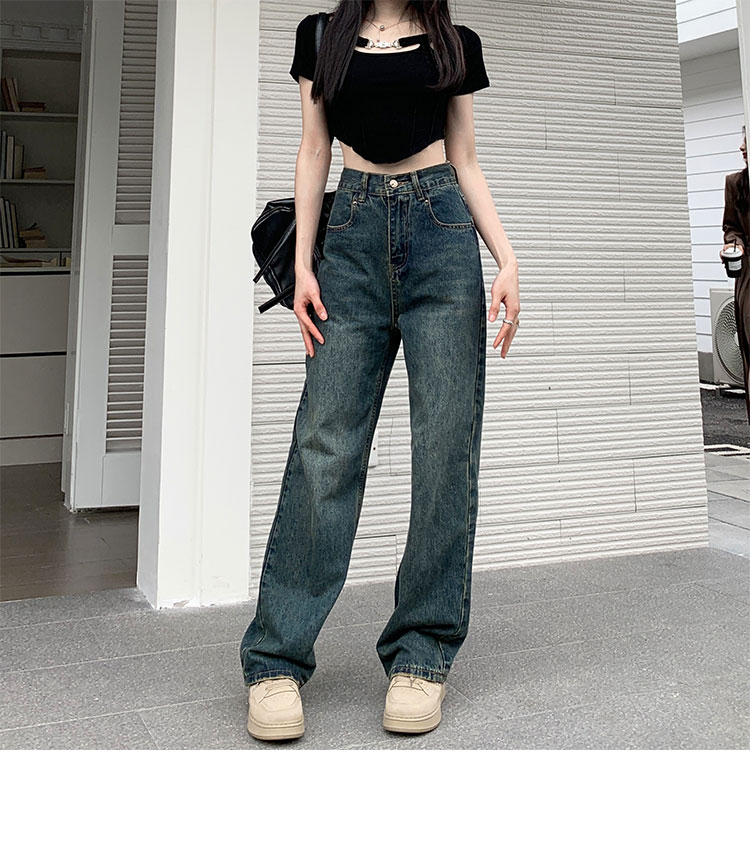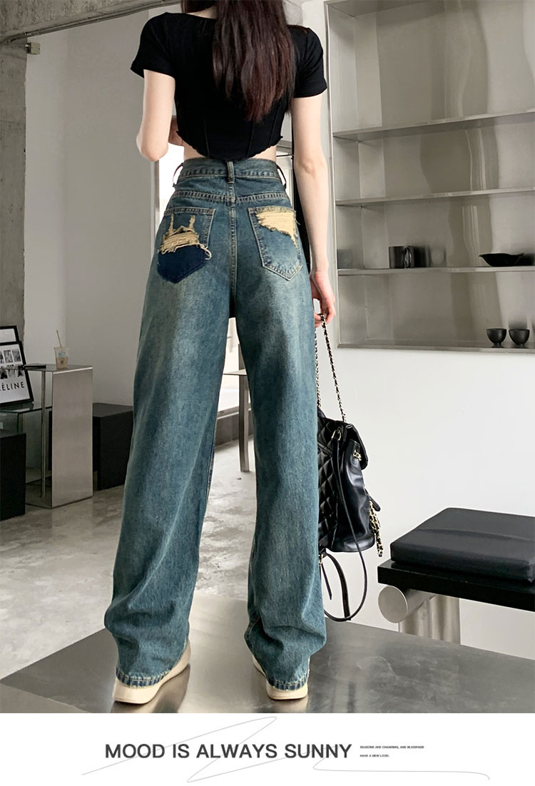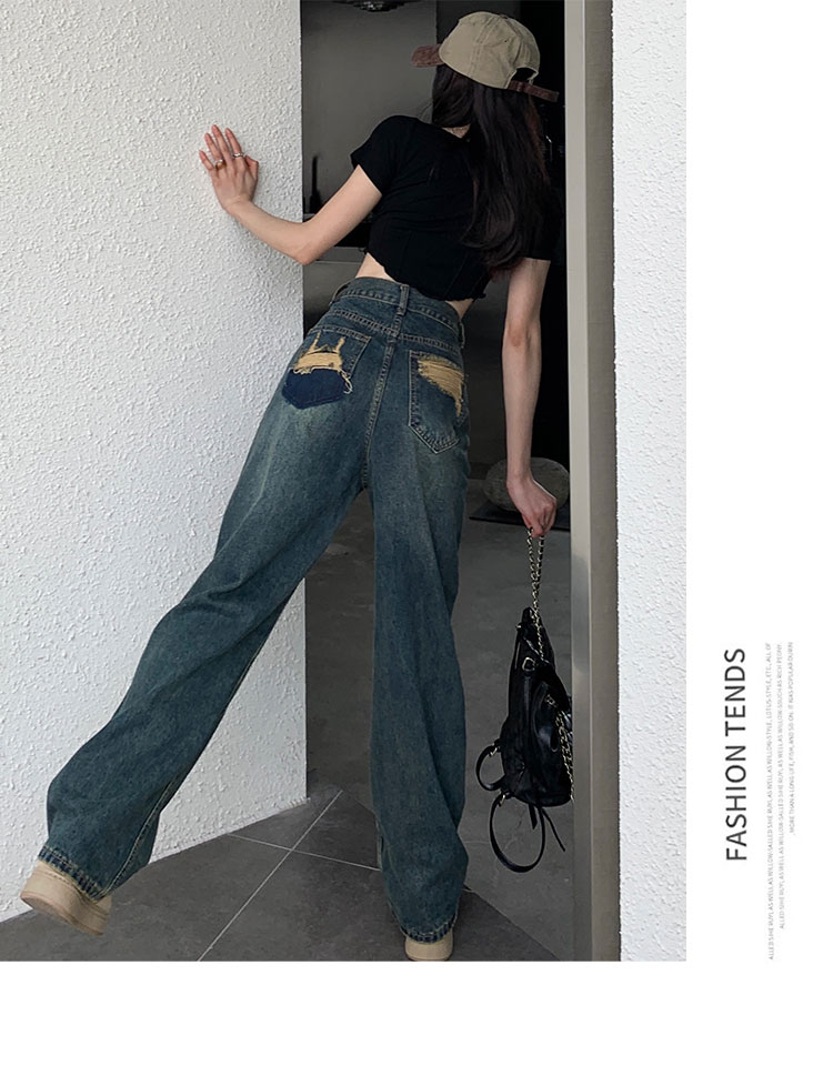 窄版闊腿牛仔褲女春秋款2023新款高腰垂感顯瘦撞色小個子直筒褲子
