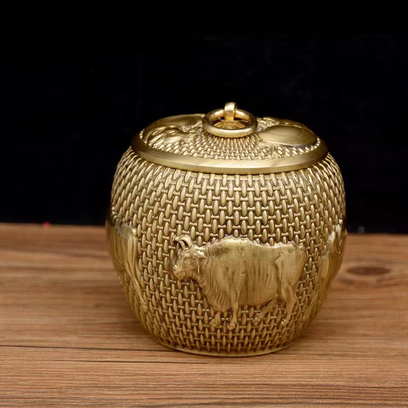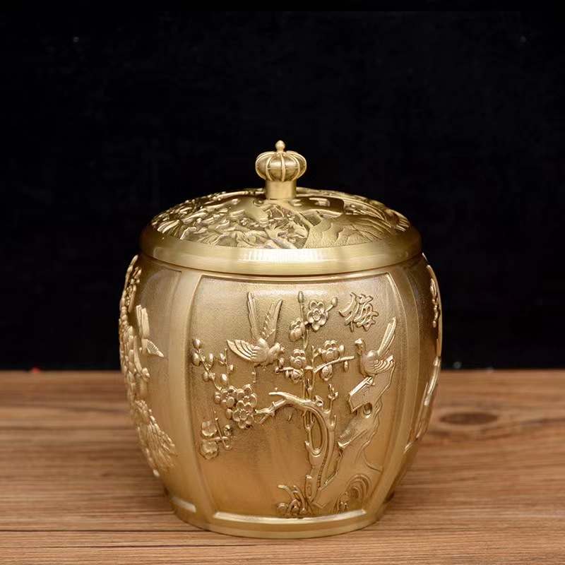純黃銅茶葉罐密封罐高檔金屬存茶盒茶倉普洱醒茶儲存罐子工藝製品