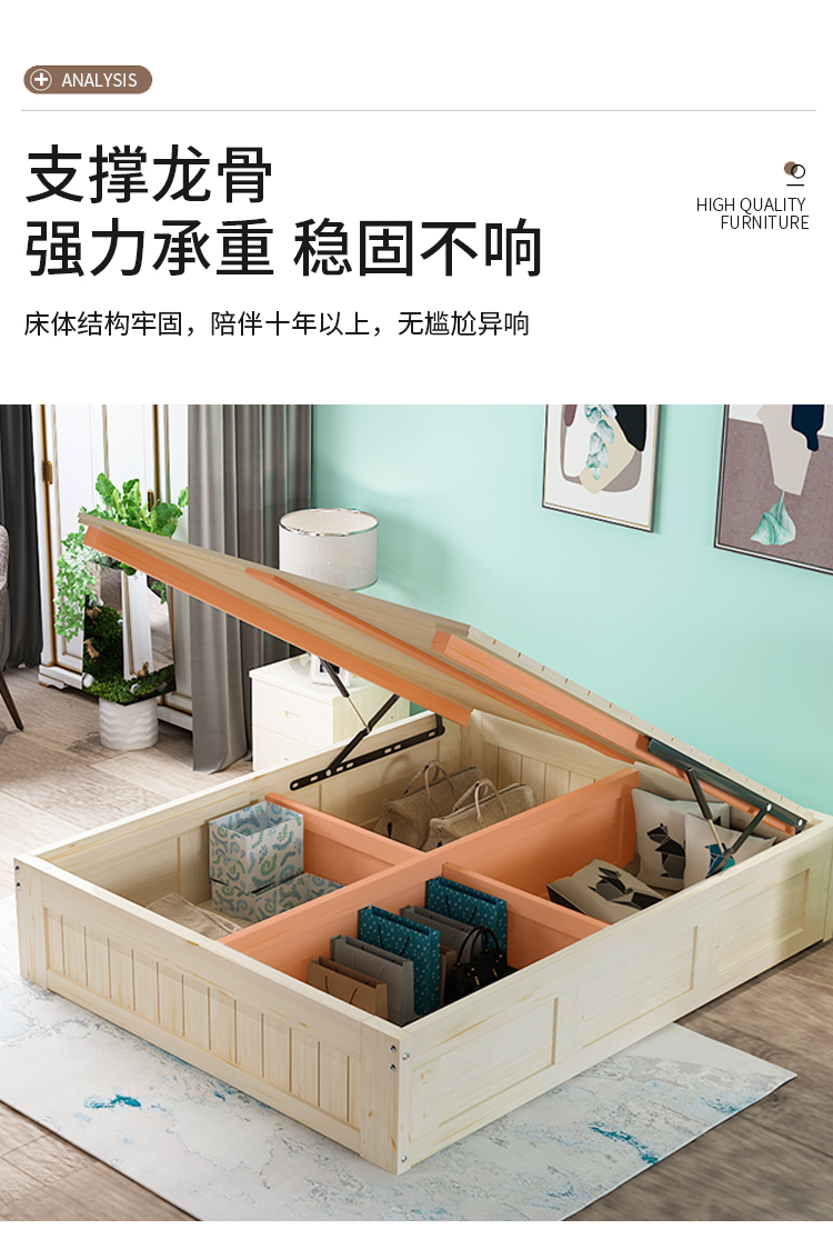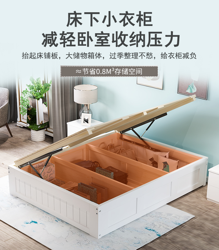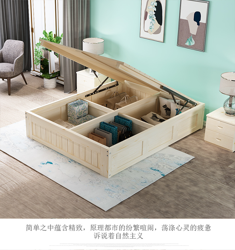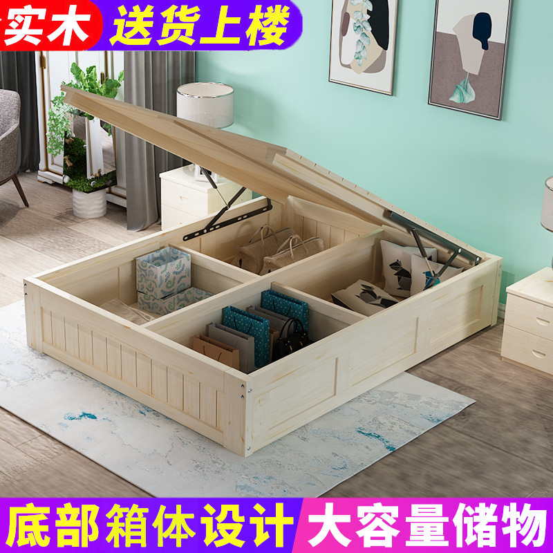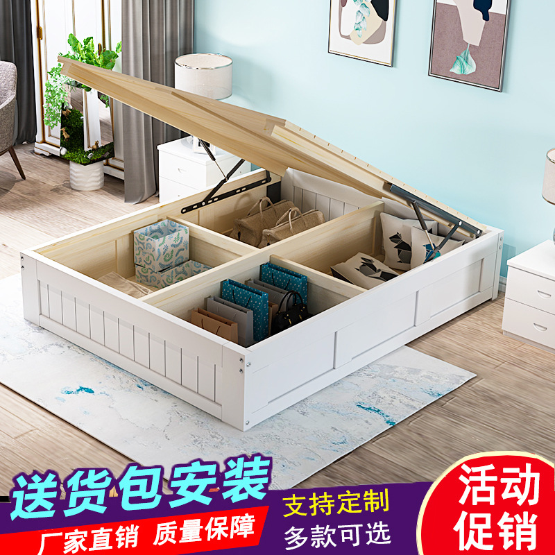 3TBW实木榻榻米床架收纳气压高箱储物床儿童单人双人床体无床头床