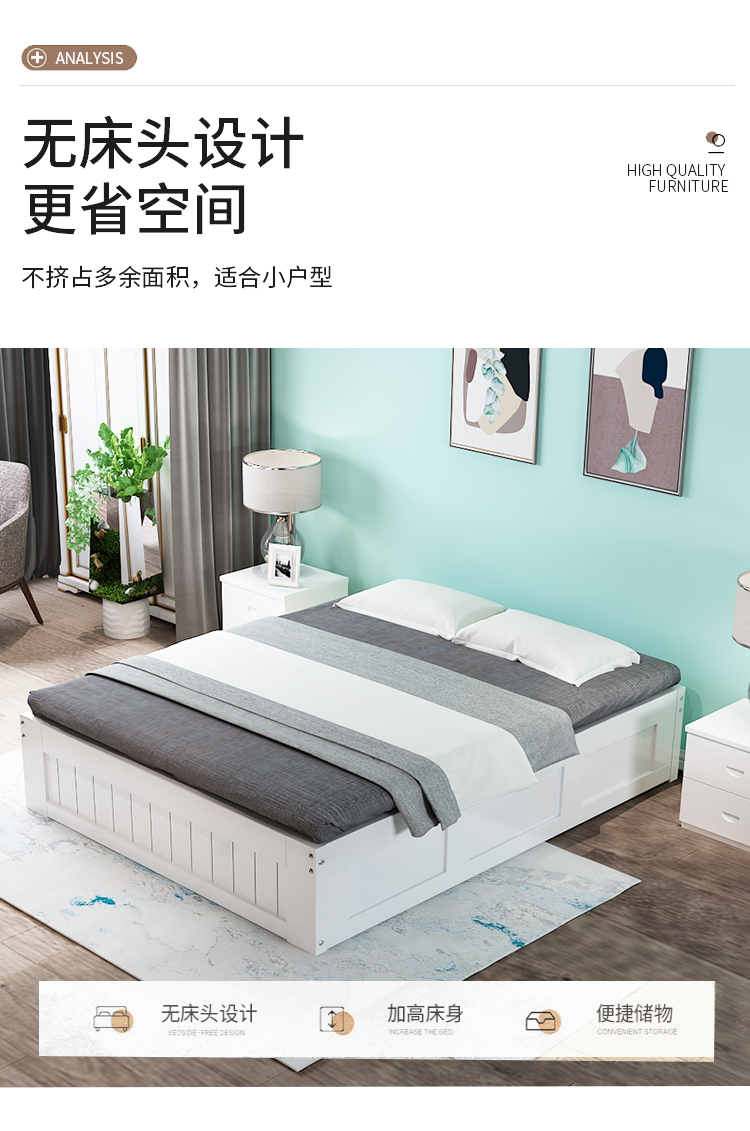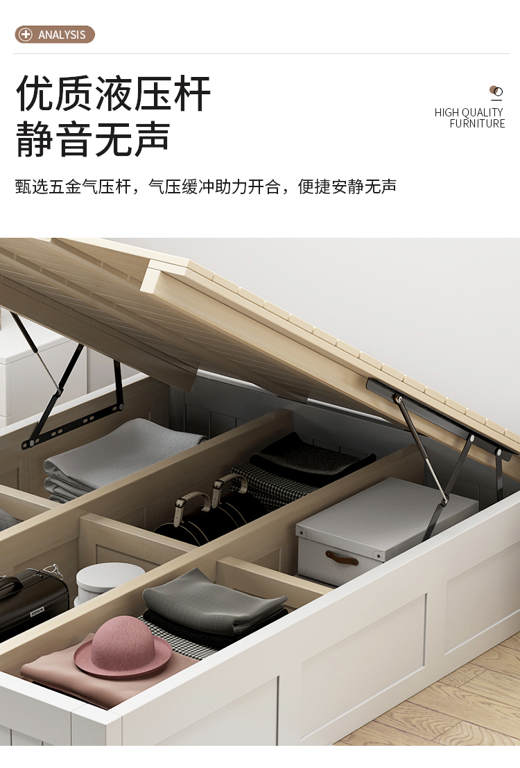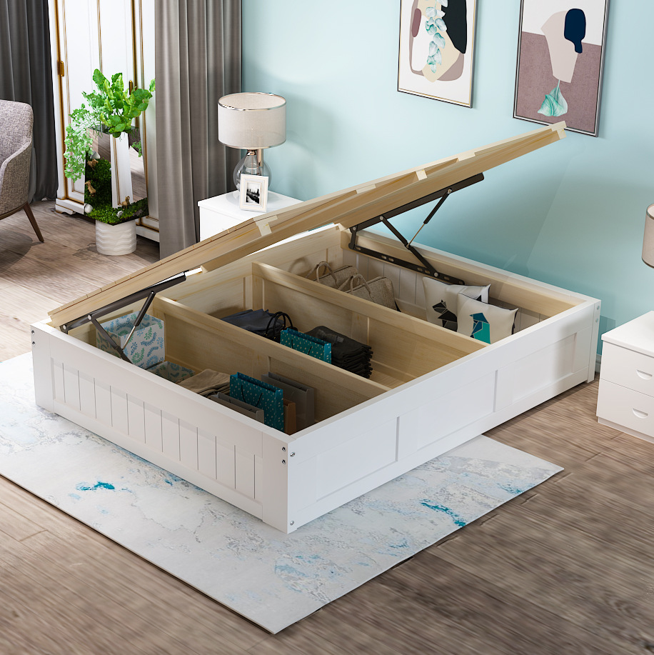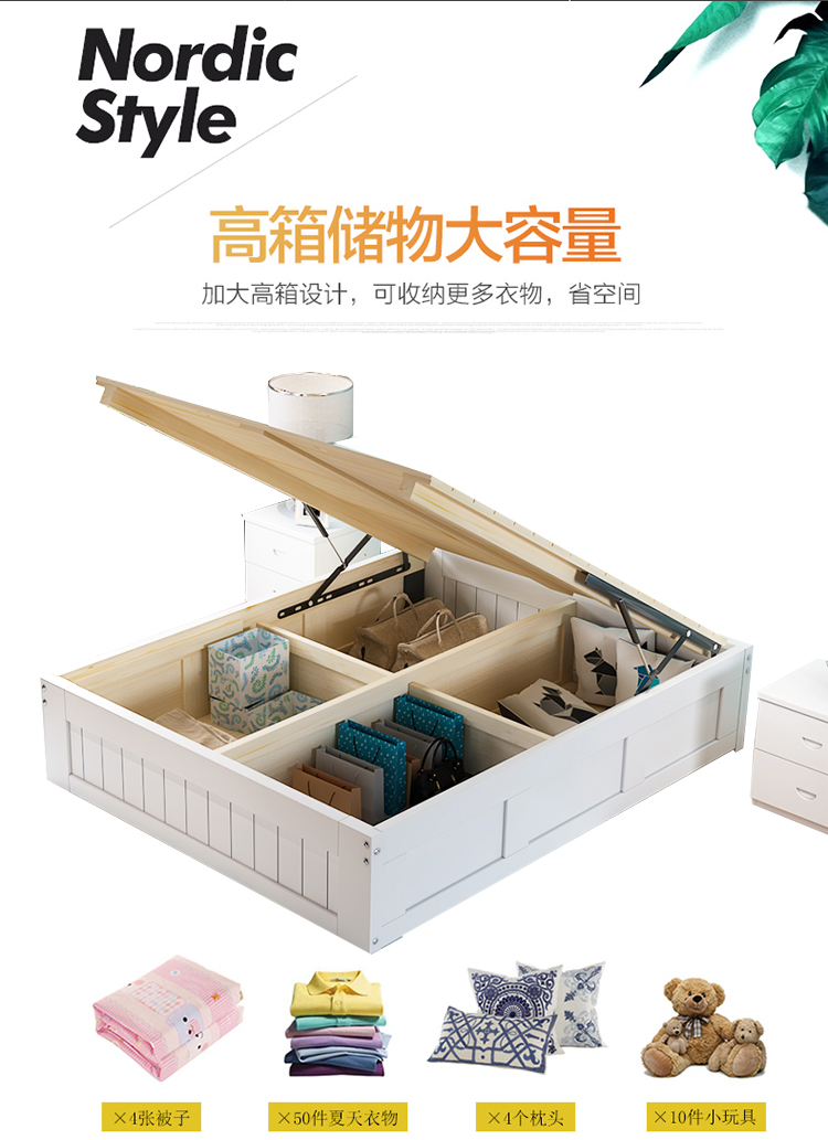 3TBW实木榻榻米床架收纳气压高箱储物床儿童单人双人床体无床头床