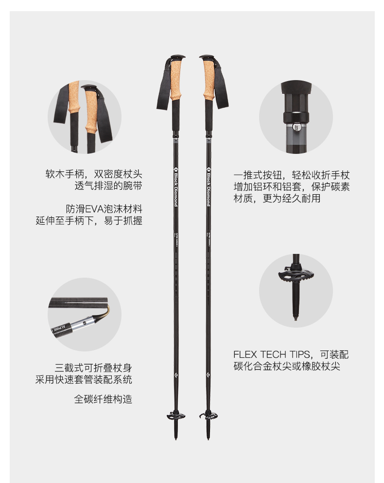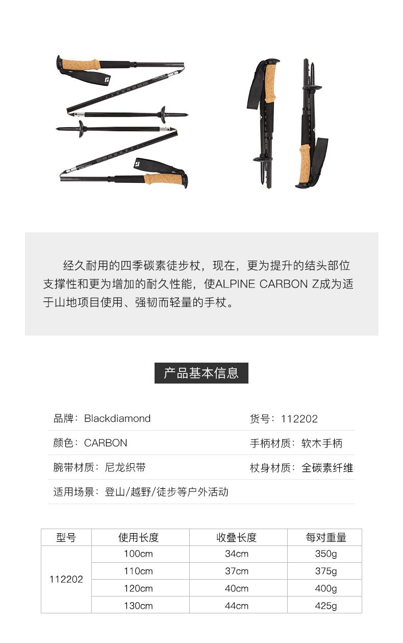 blackdiamond黑鑽BD登山柺杖超輕碳素摺疊手杖戶外徒步越野112202