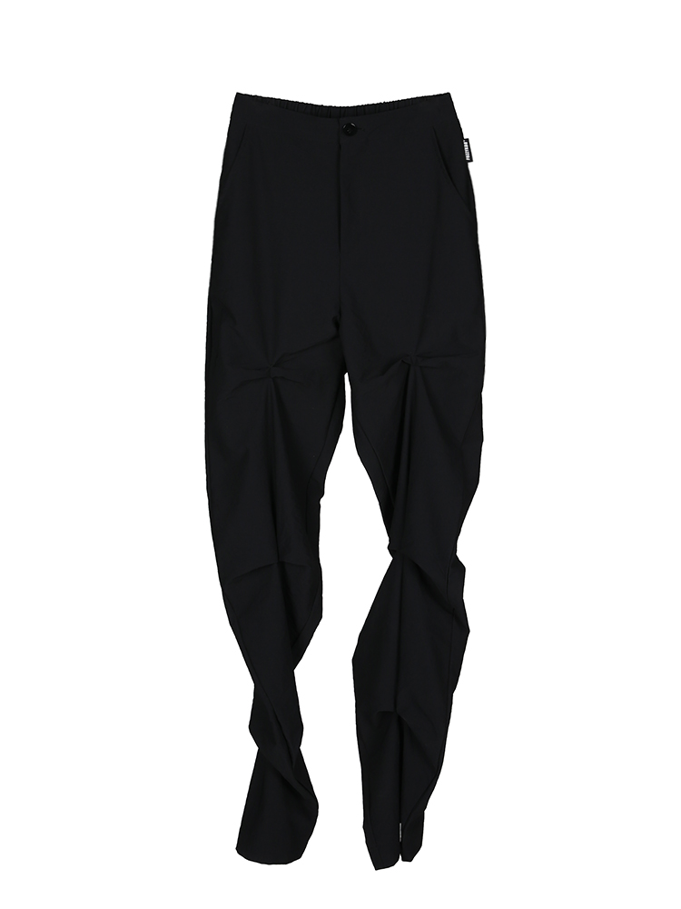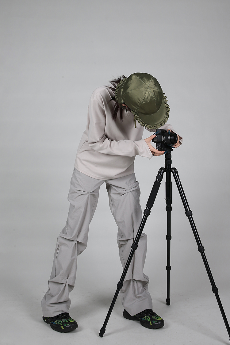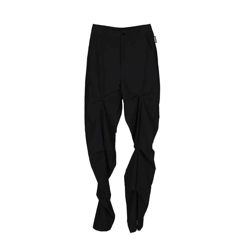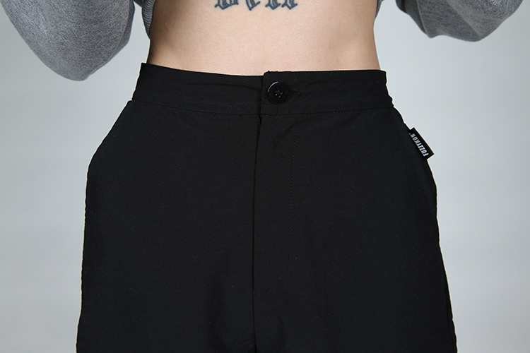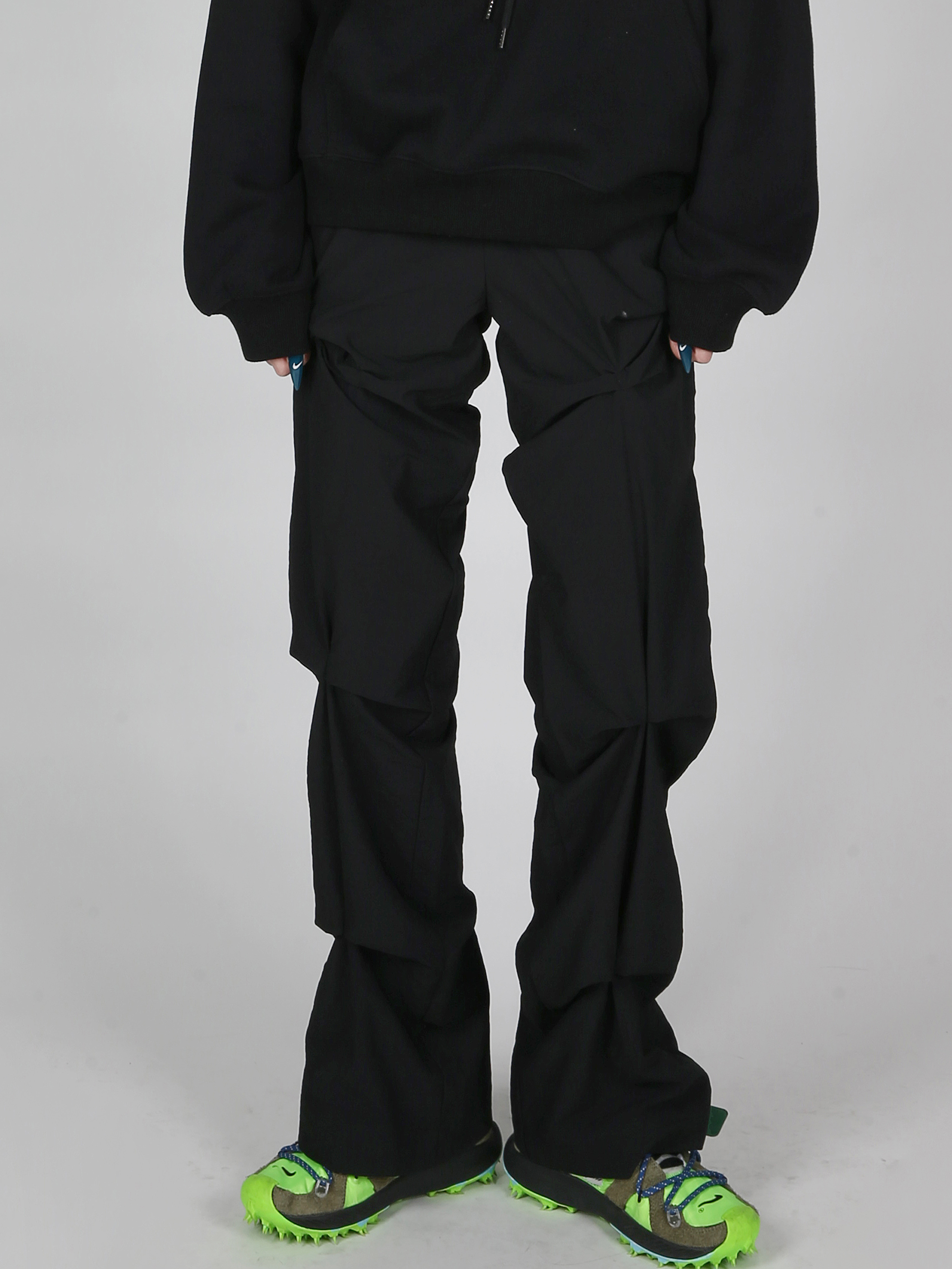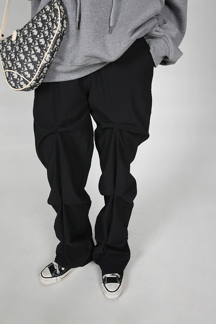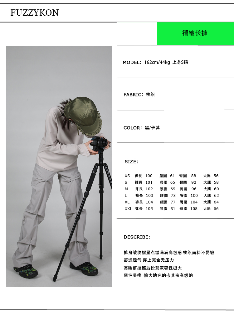 美伢Fuzzykon 抓褶設計中性街頭感工裝長褲 黑 卡其