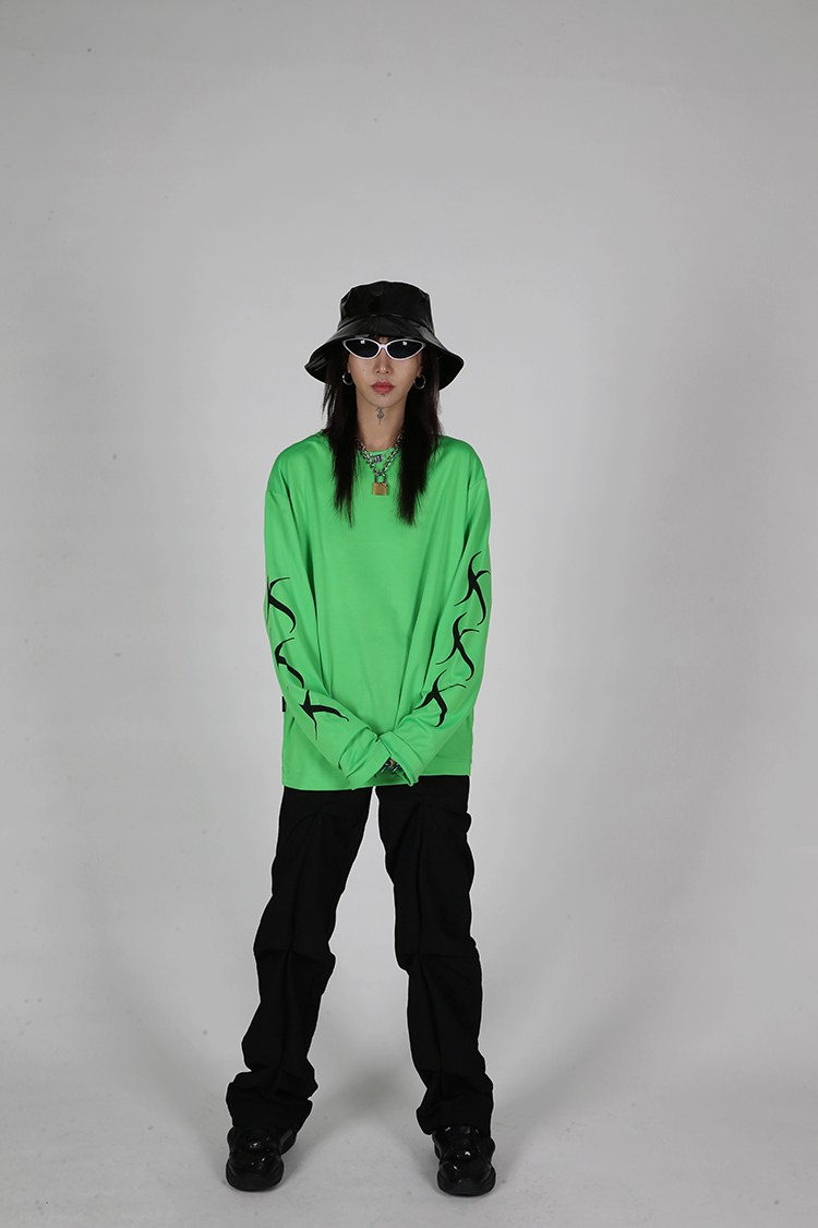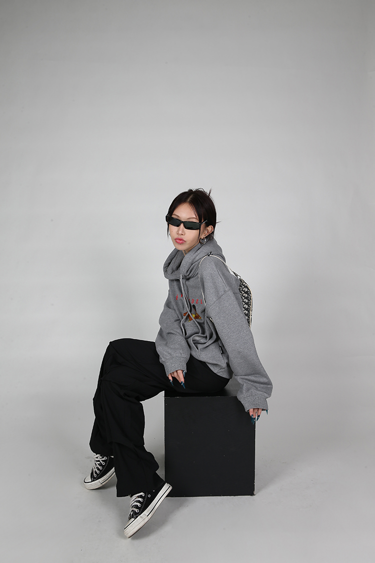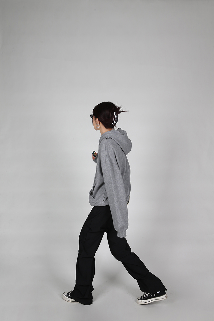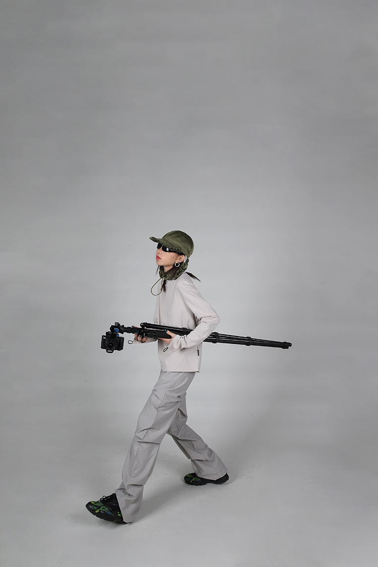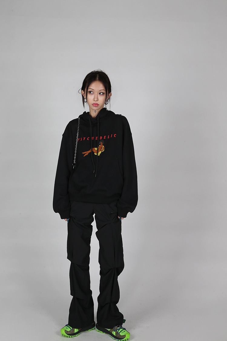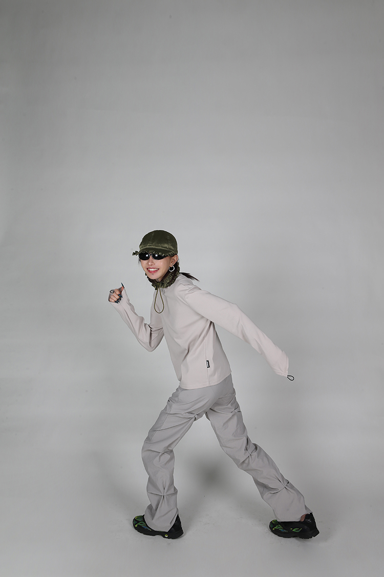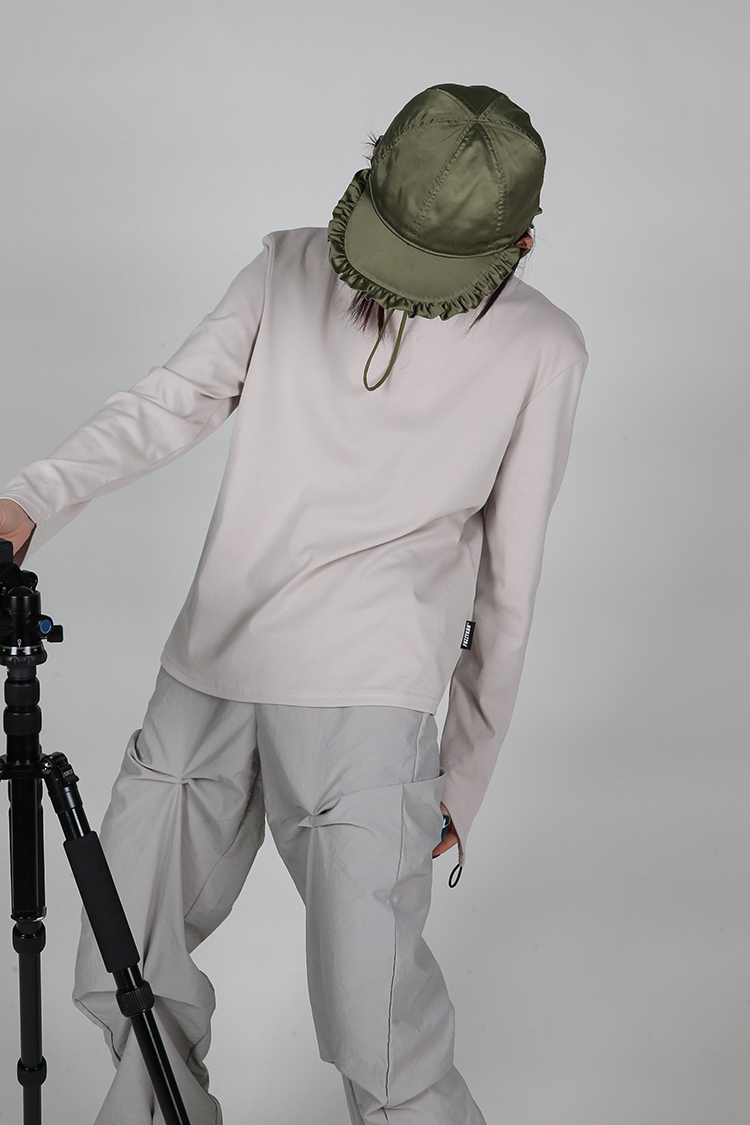 美伢Fuzzykon 抓褶設計中性街頭感工裝長褲 黑 卡其