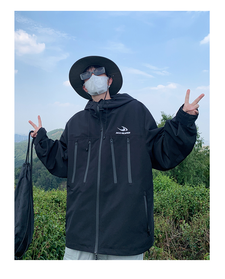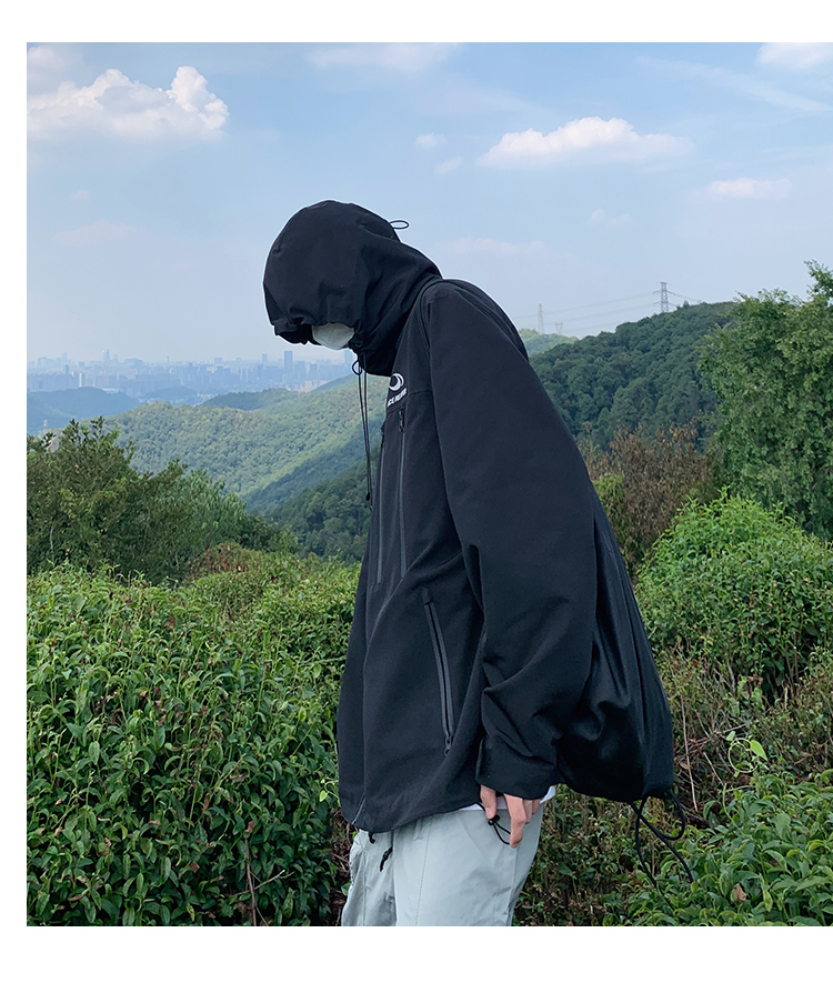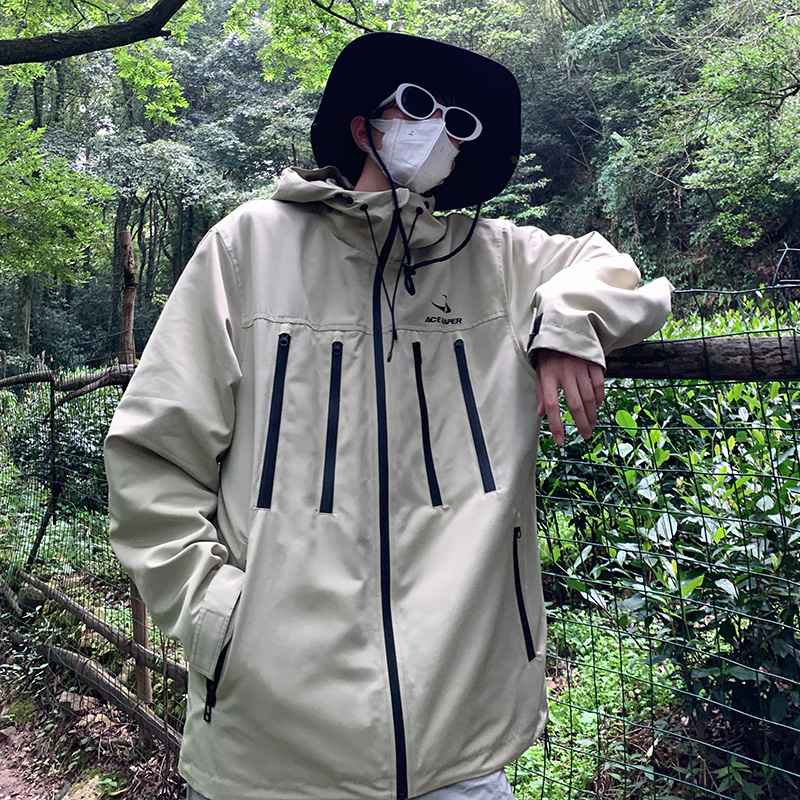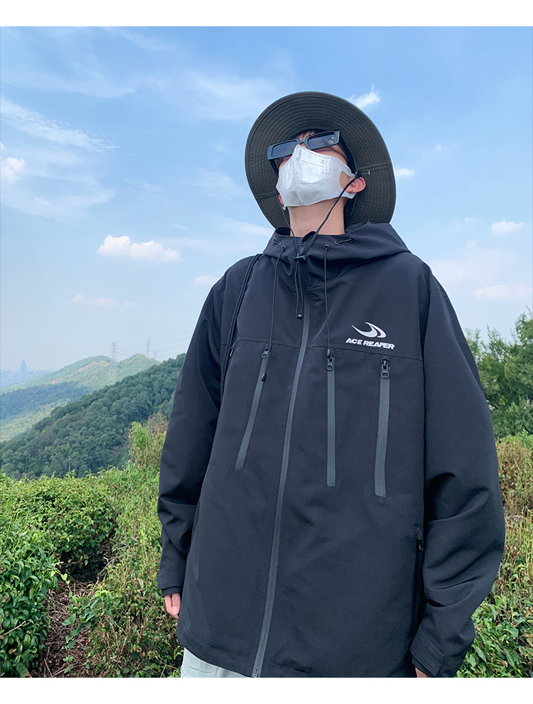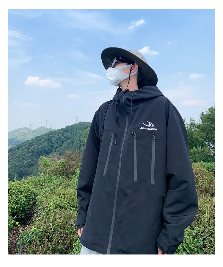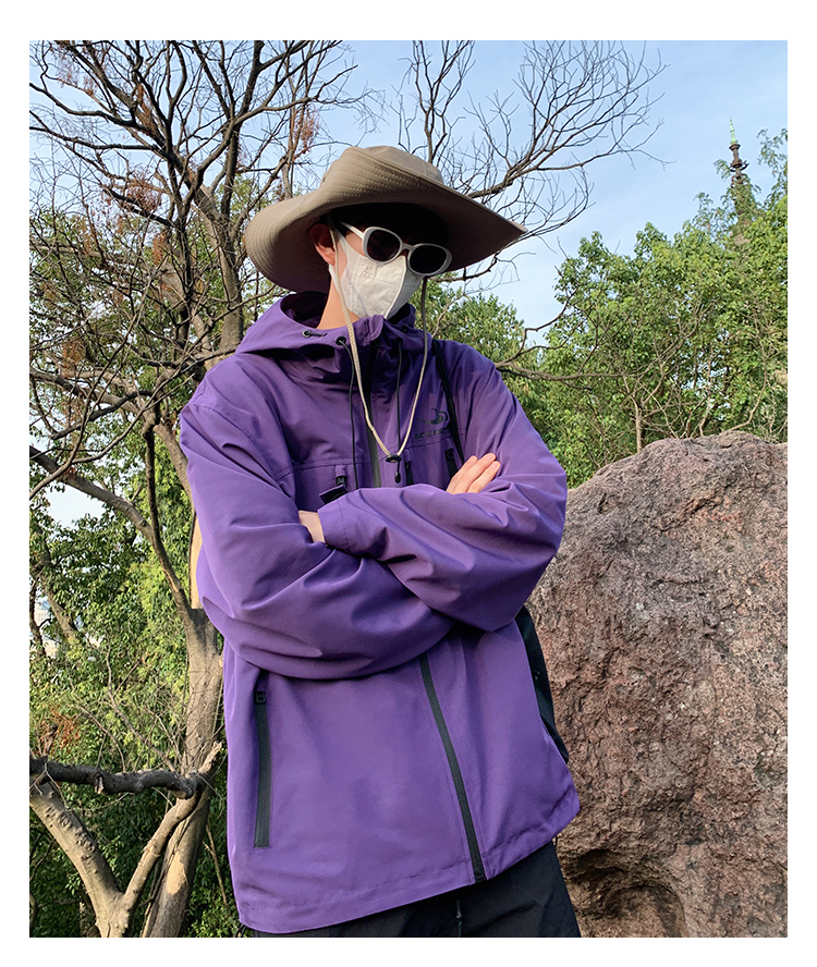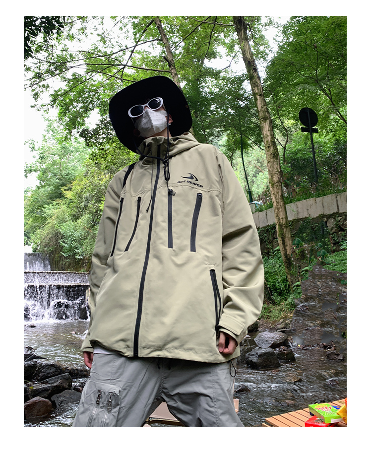vintage美式衝鋒衣潮牌半高領外套男日系cityboy拉鍊開叉情侶夾克
