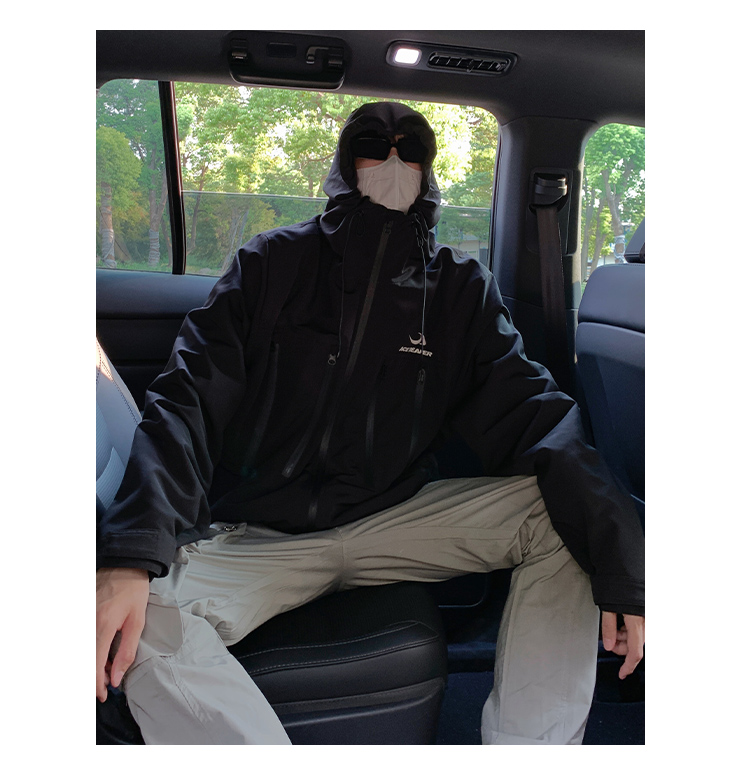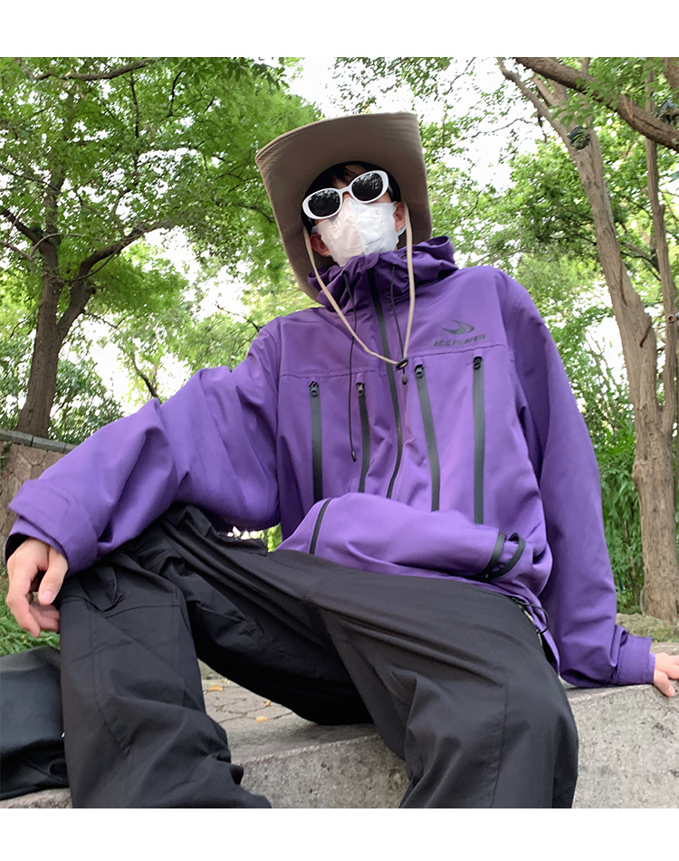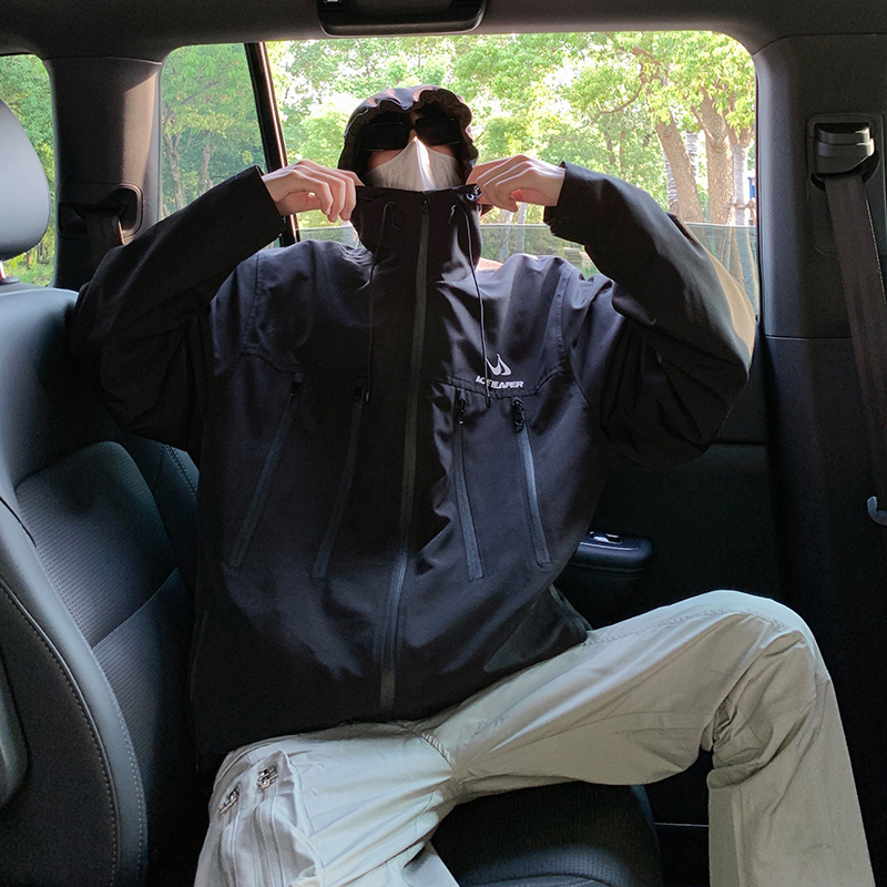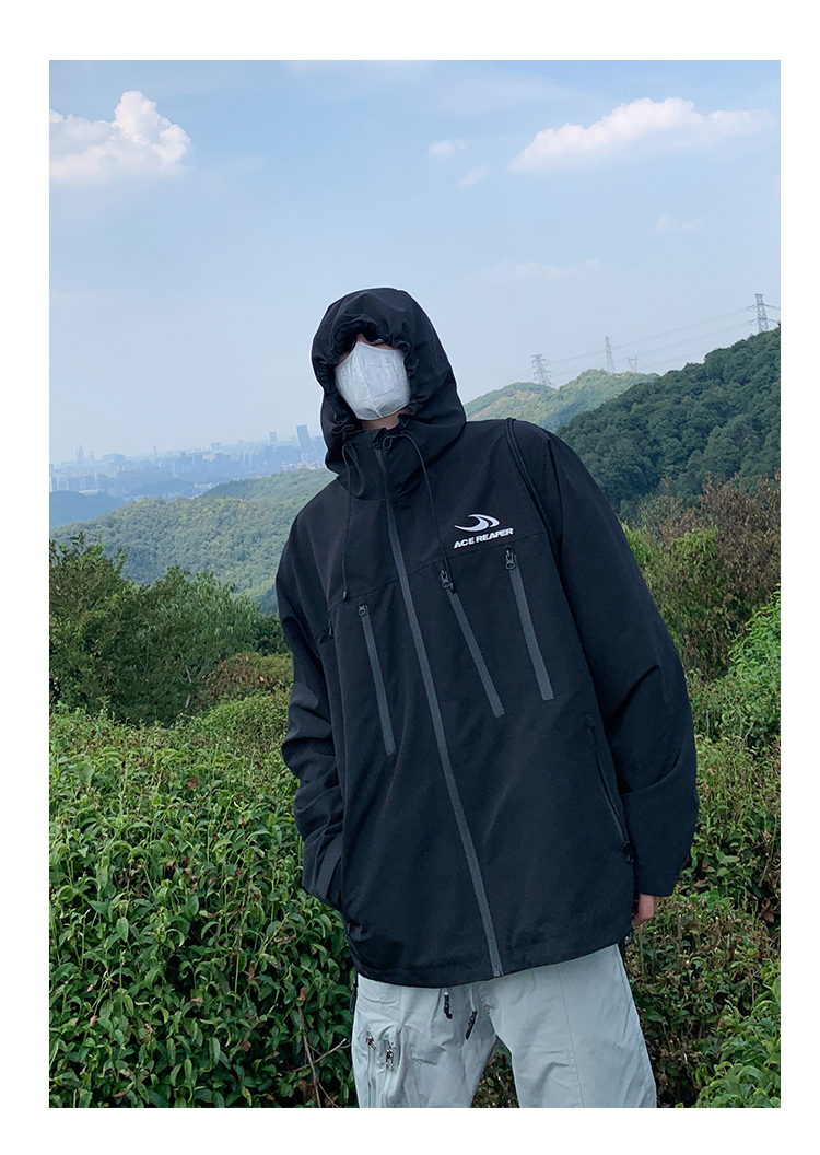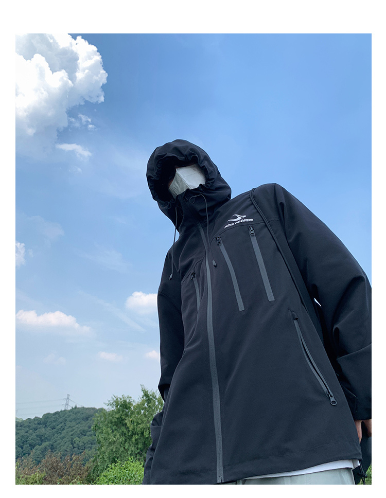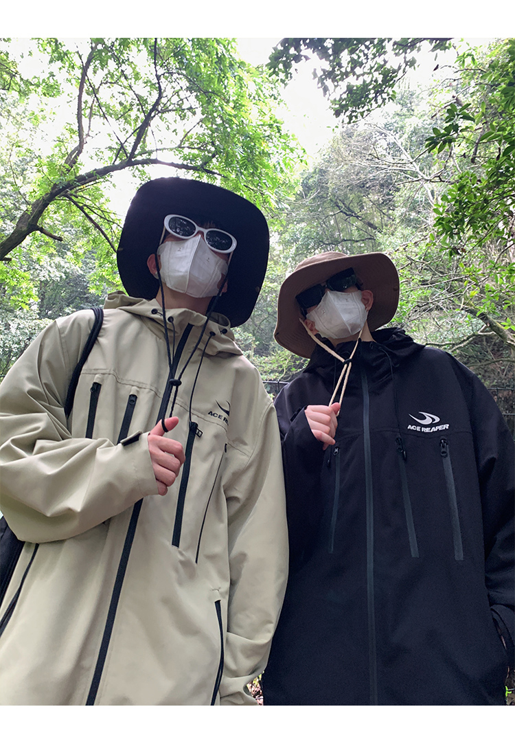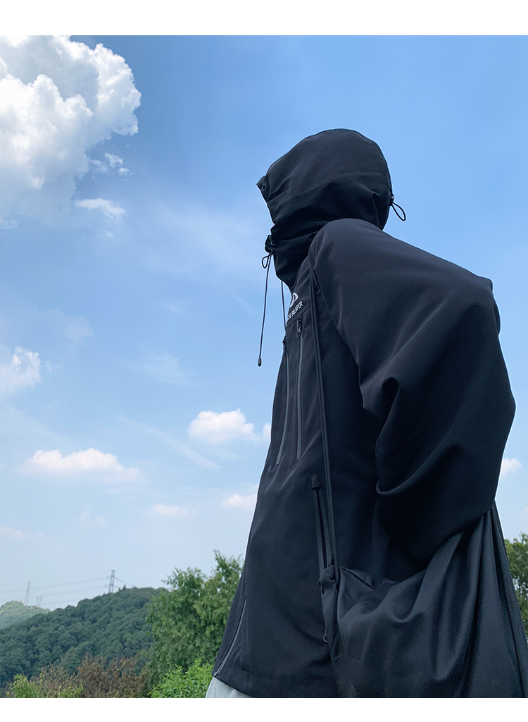 vintage美式衝鋒衣潮牌半高領外套男日系cityboy拉鍊開叉情侶夾克