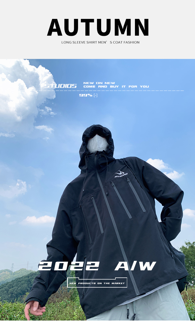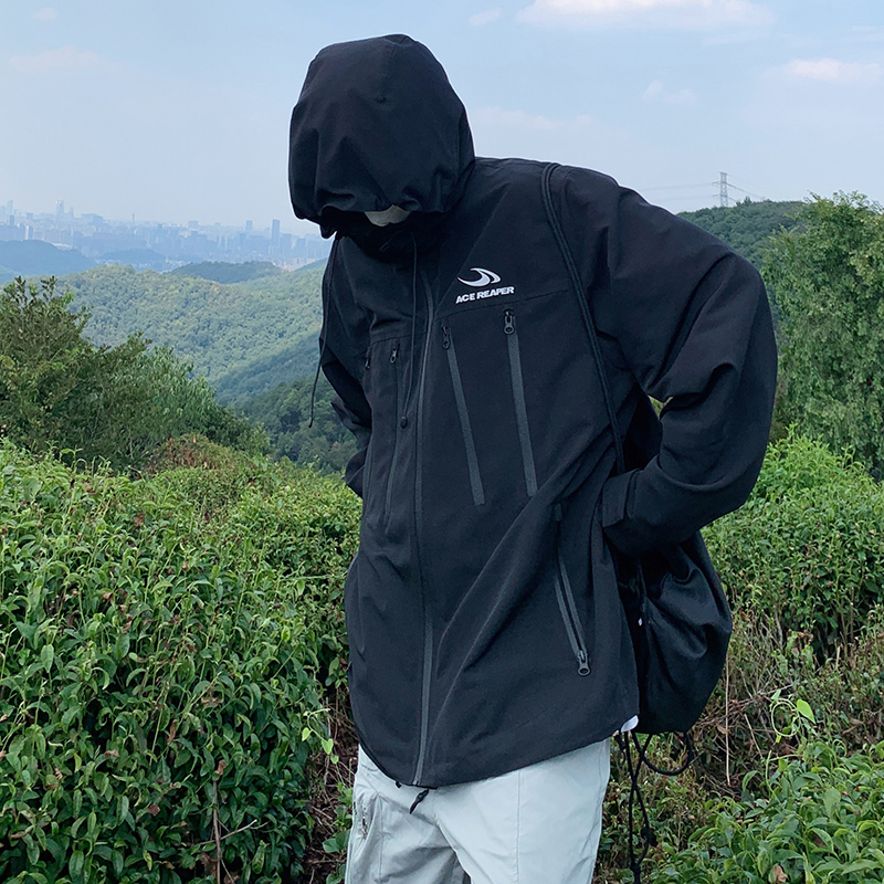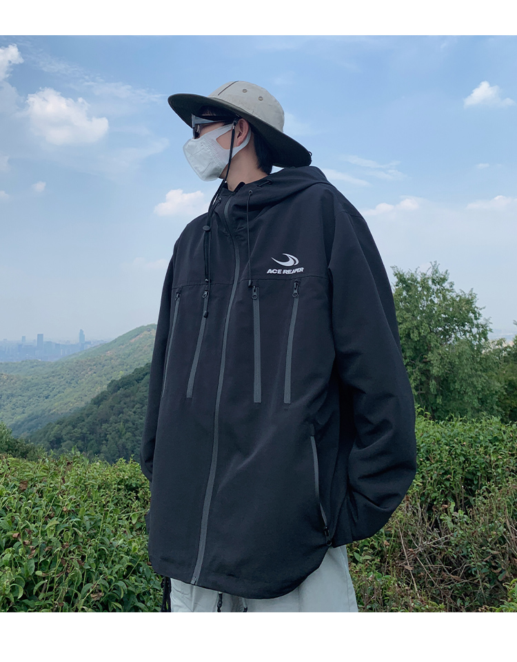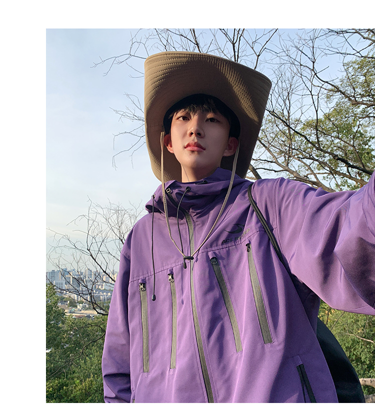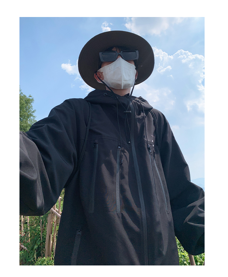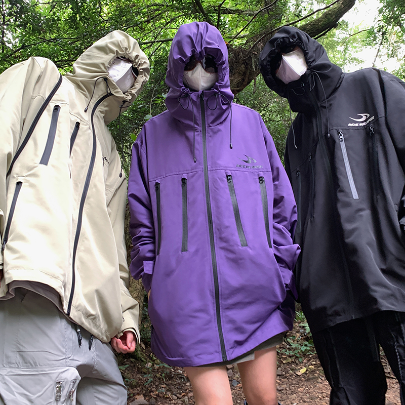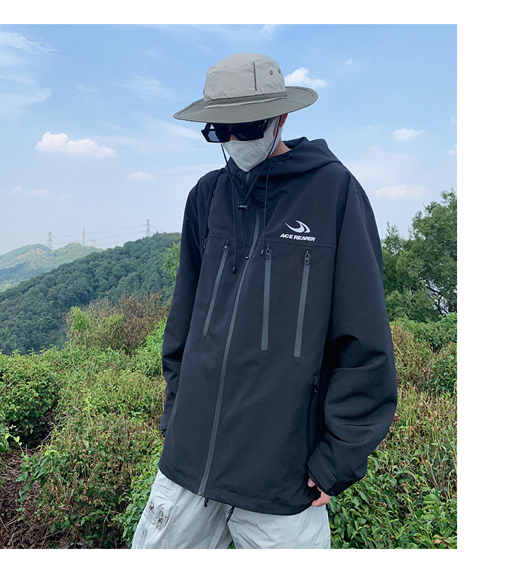 vintage美式衝鋒衣潮牌半高領外套男日系cityboy拉鍊開叉情侶夾克