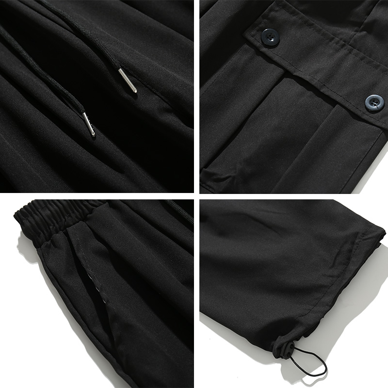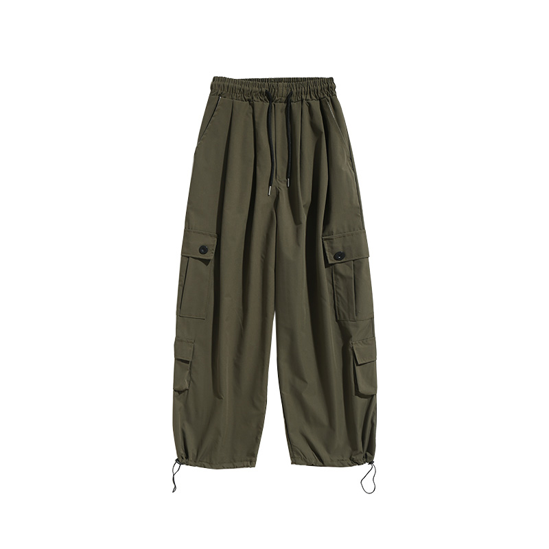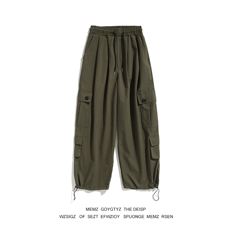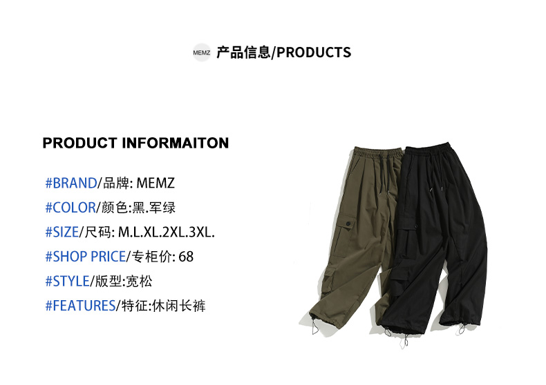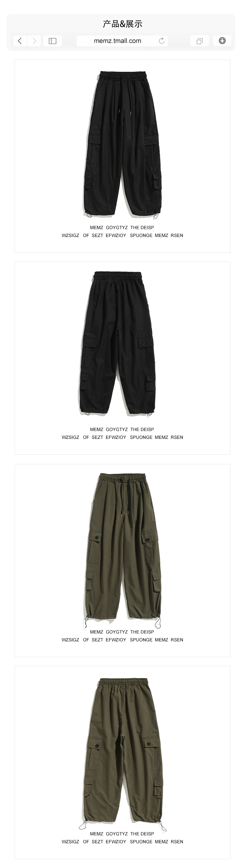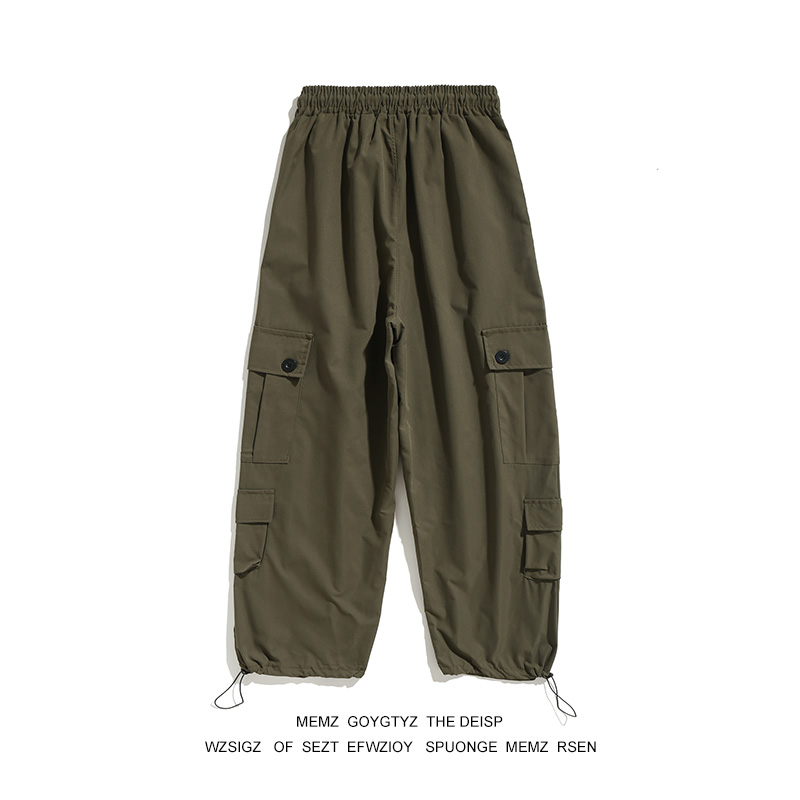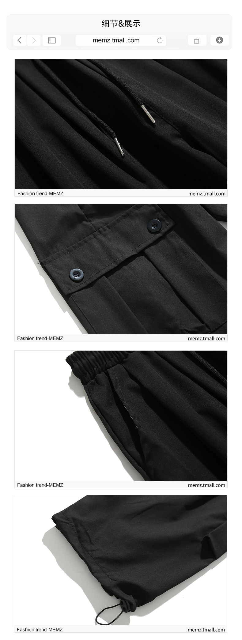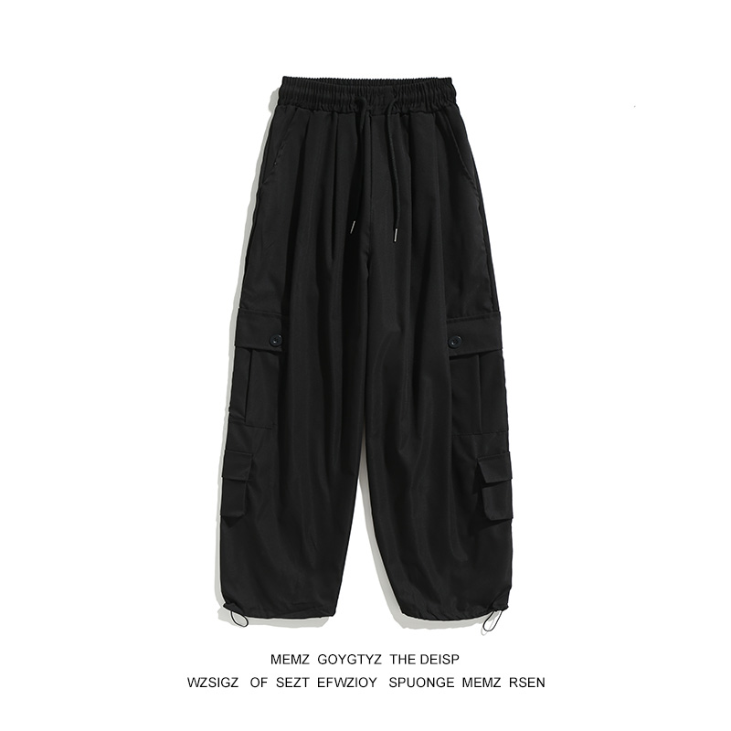 MEMZ潮流休閒簡約純色束腳休閒褲男港風ins多口袋寬鬆闊腿工裝褲