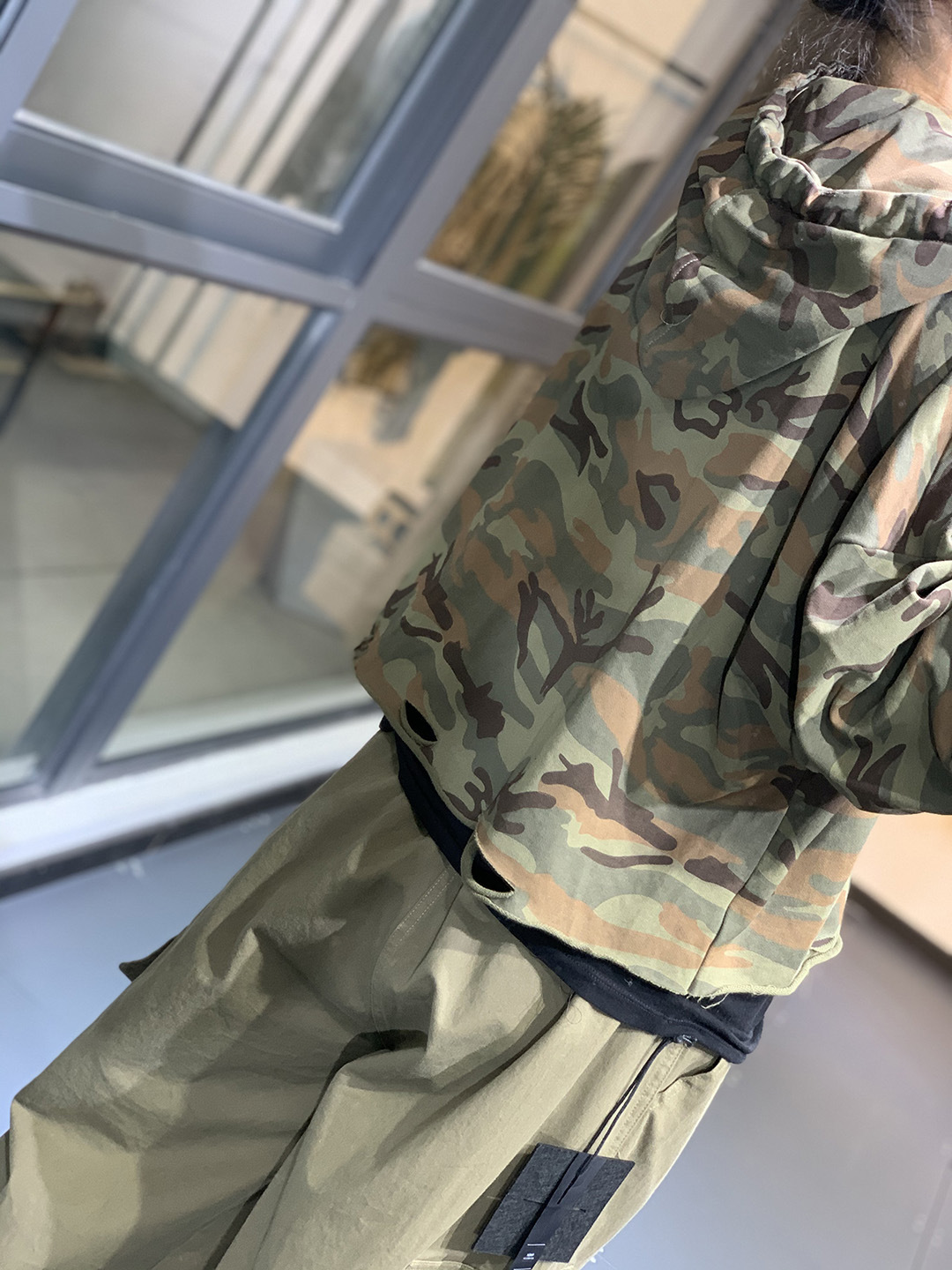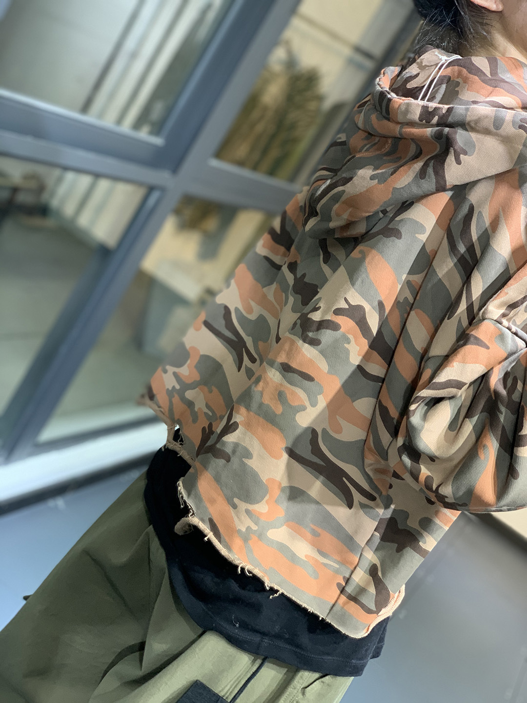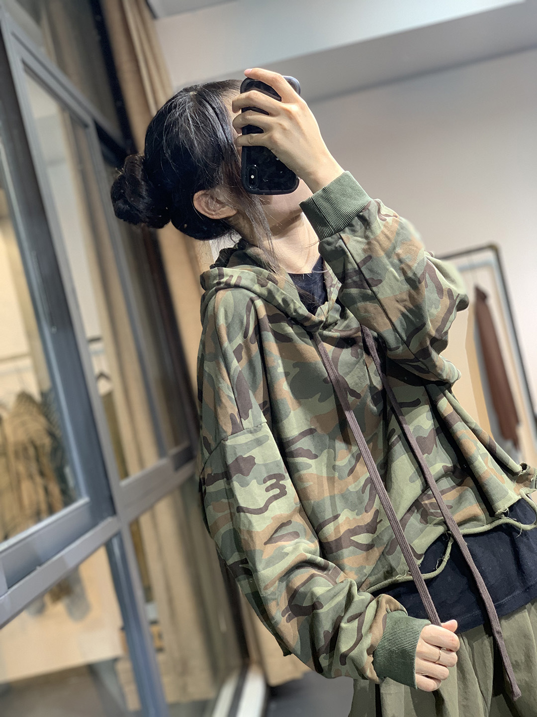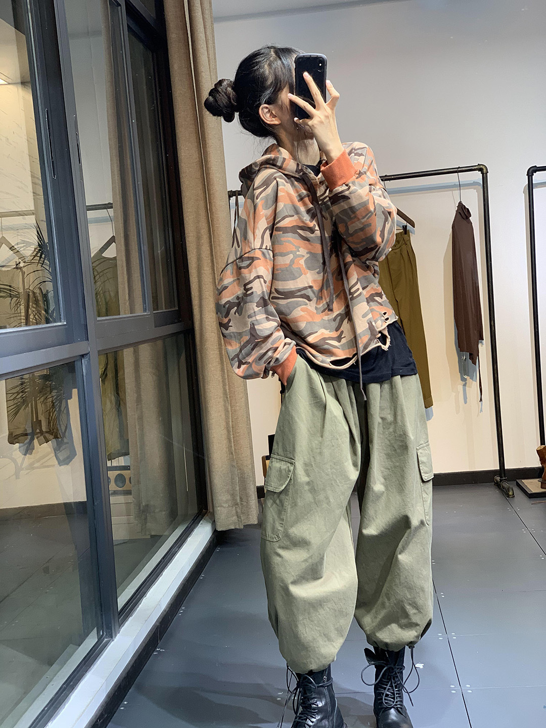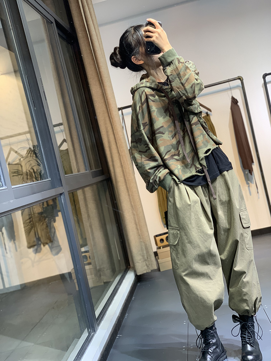 莫裏秋季原創韓版潮流文藝個性破洞寬鬆休閒減齡百搭連帽迷彩衛衣