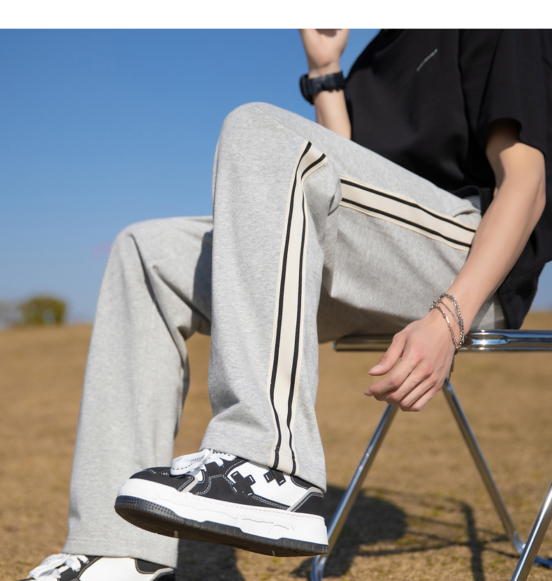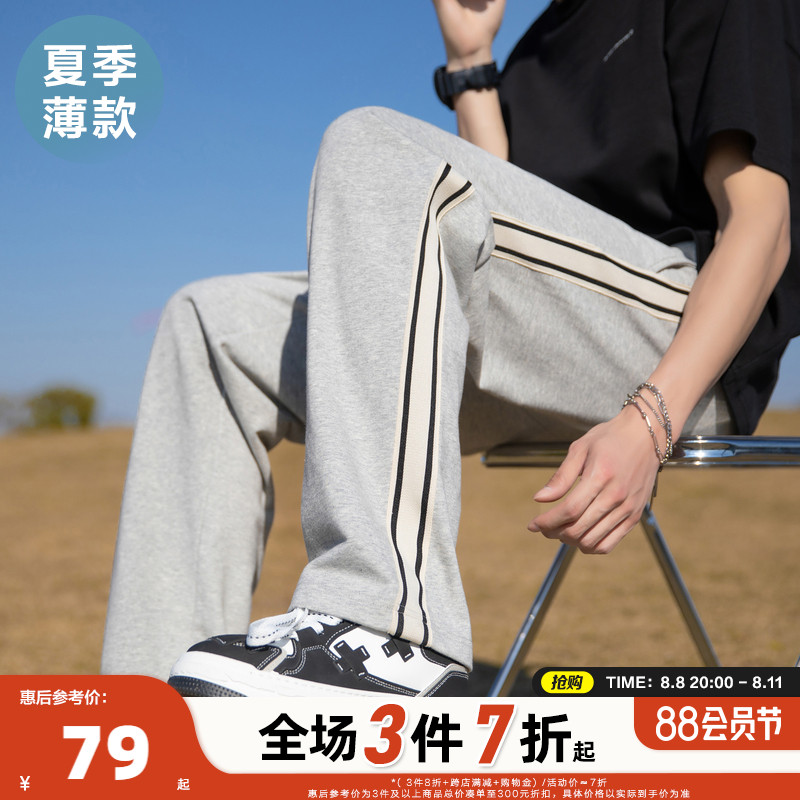 唐獅2023春夏季新款運動褲男士薄款闊腿褲衛褲寬鬆休閒褲子男潮牌