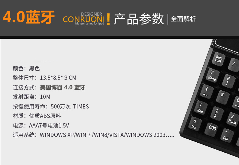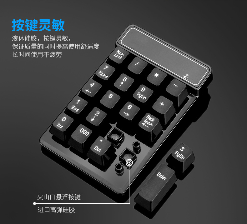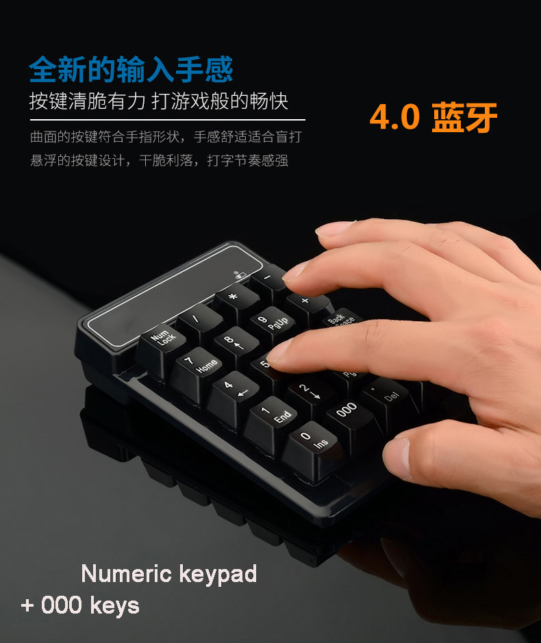 新款无线数字键盘美国博通4.0蓝牙键盘财会银行密码支付悬浮键盘