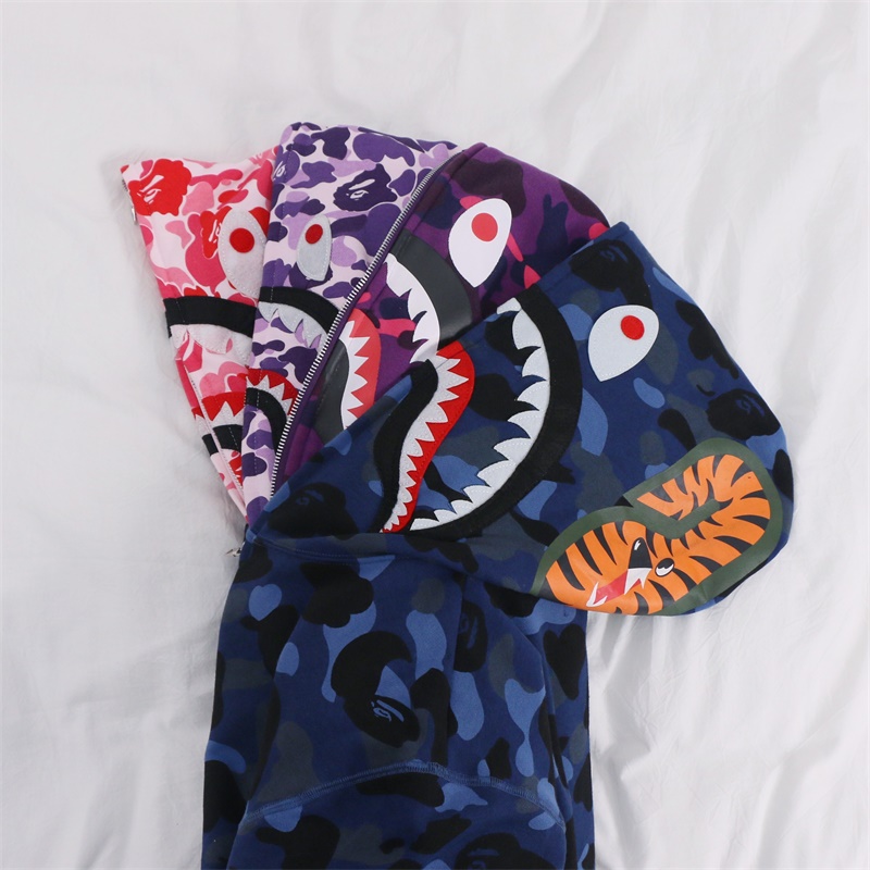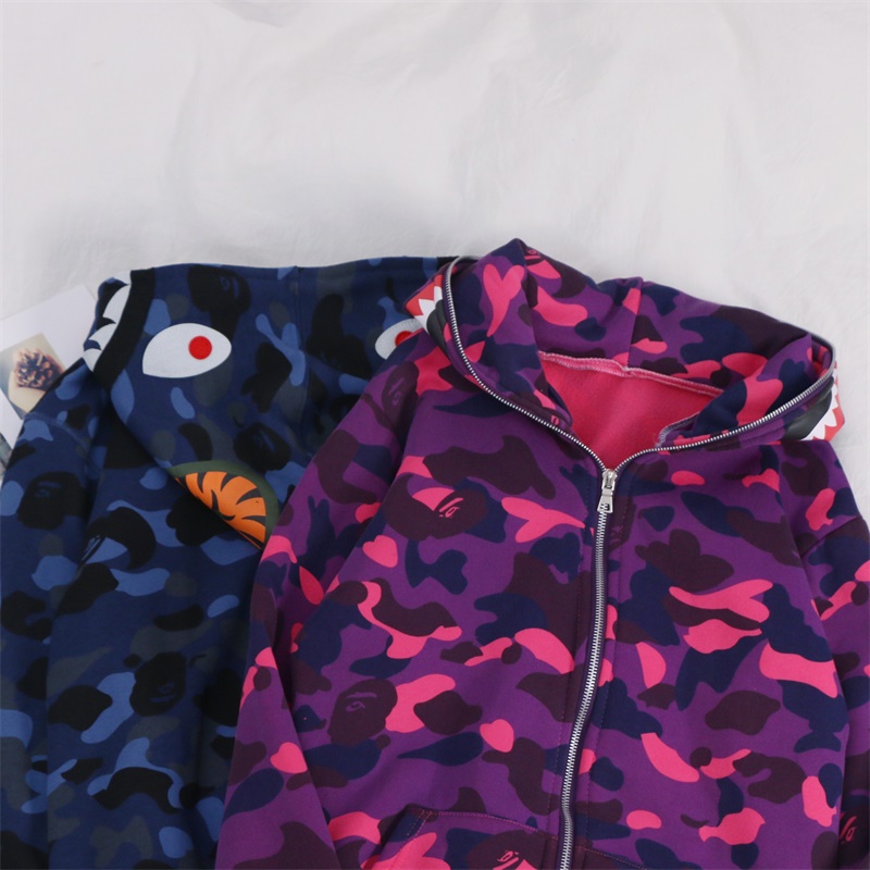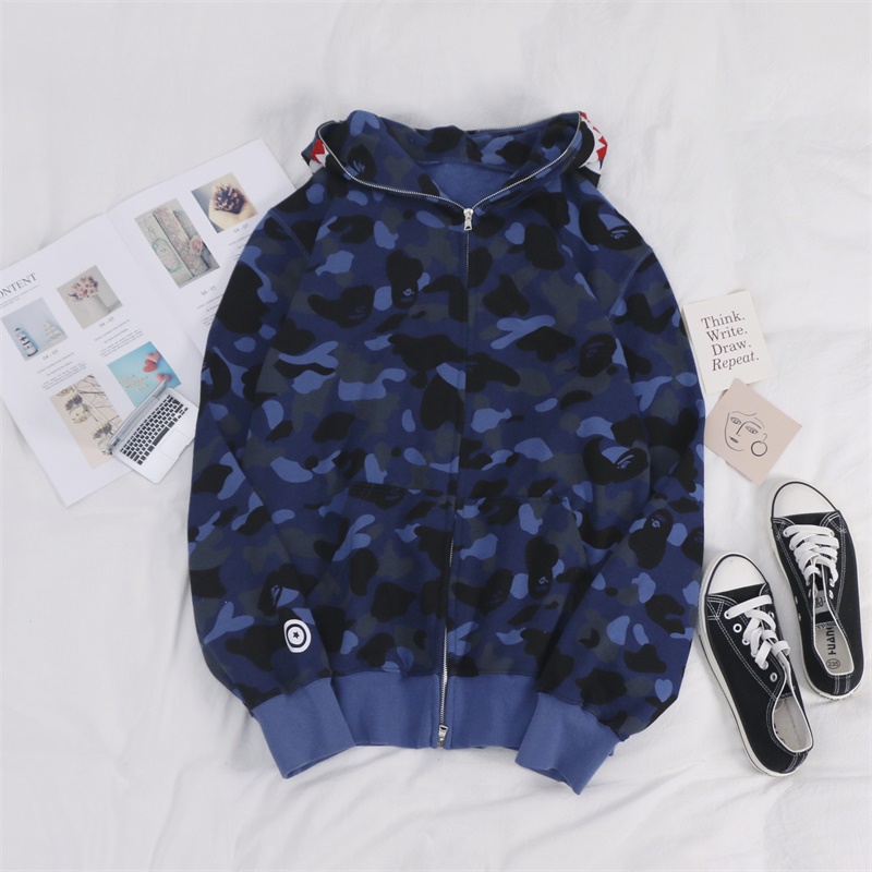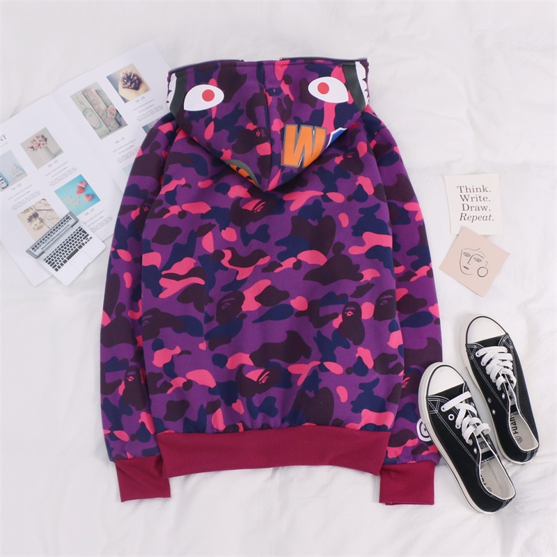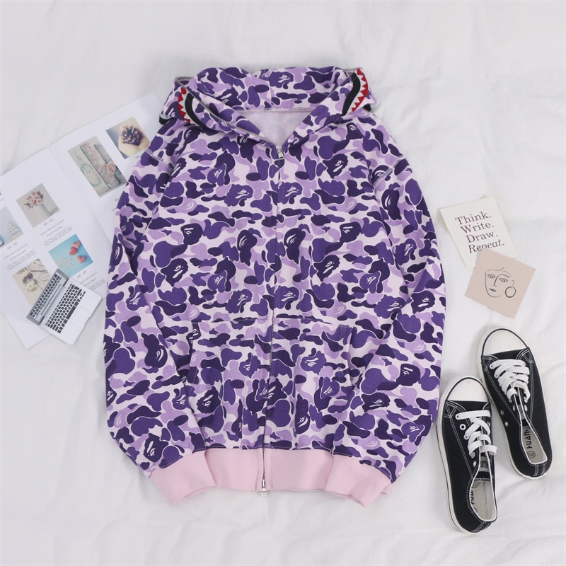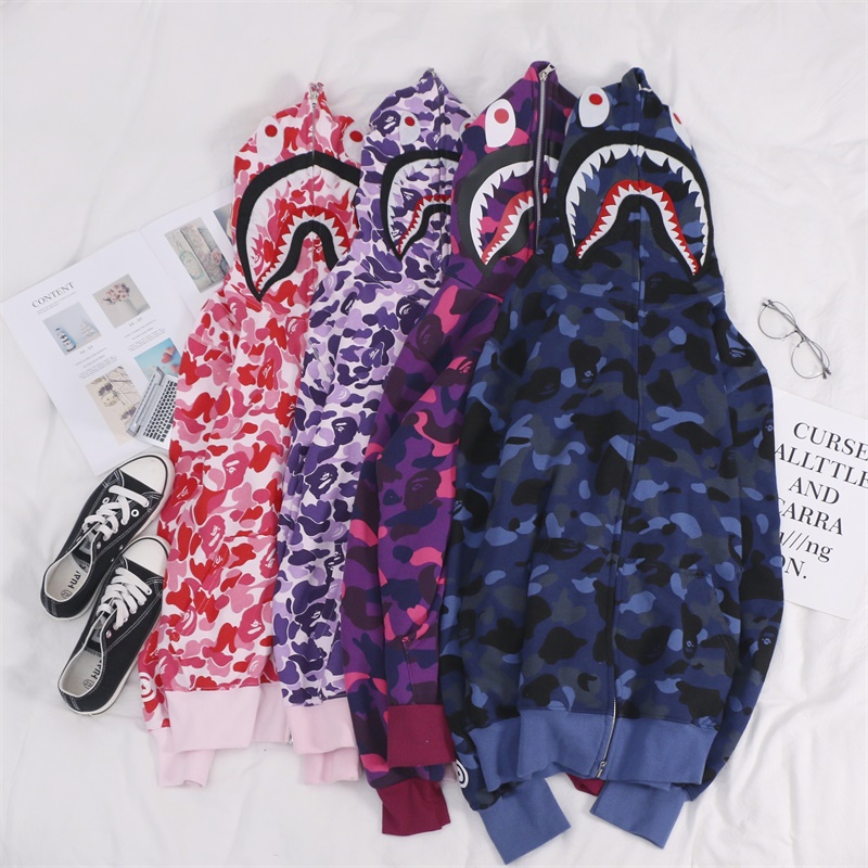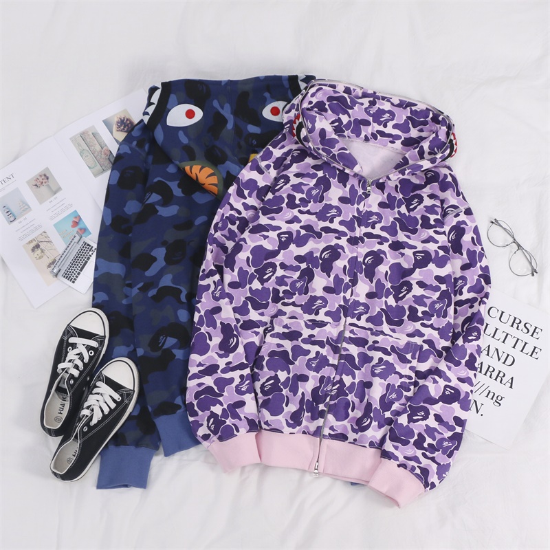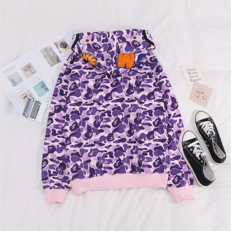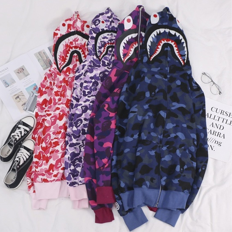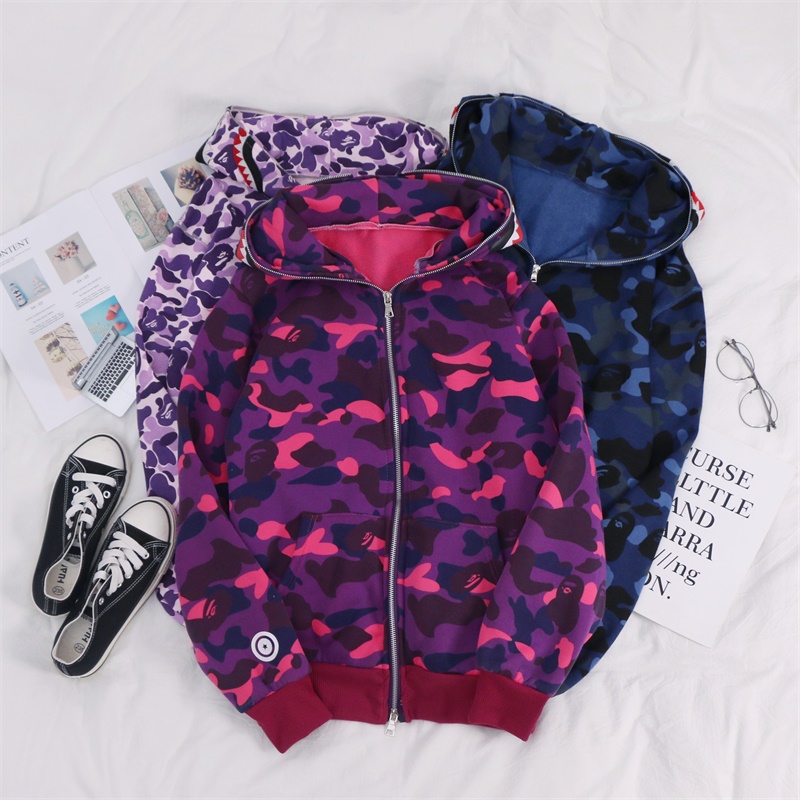 帥氣炸街鯊魚迷彩連帽運動衫女加絨嘻哈寬鬆bf潮酷女孩穿戴開衫外套